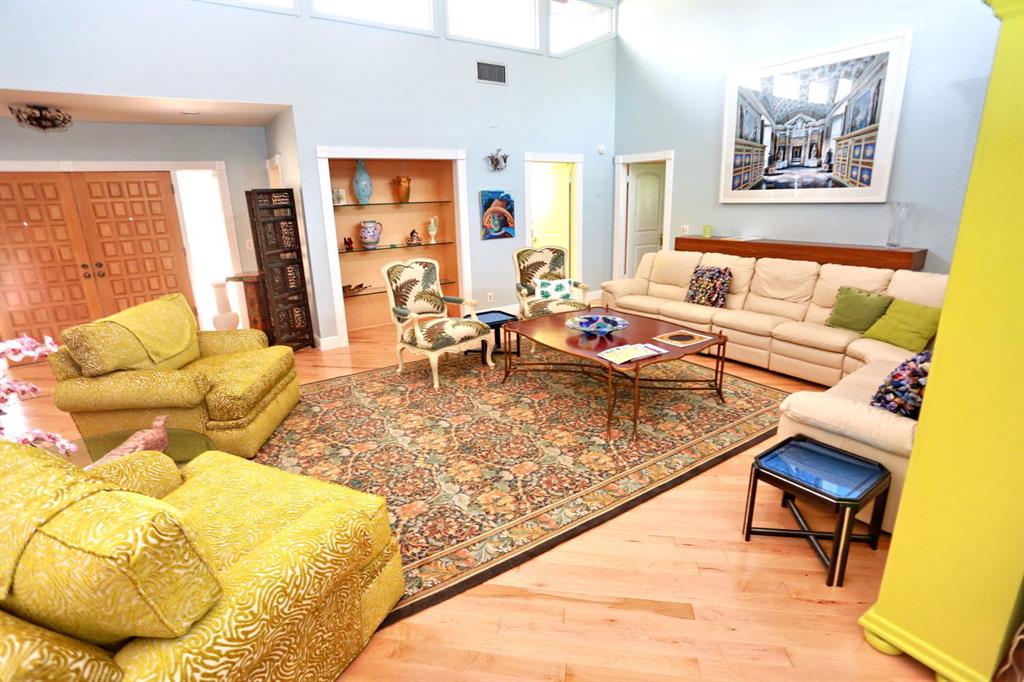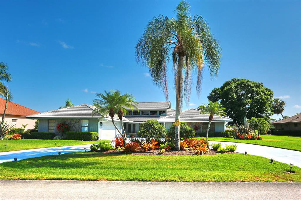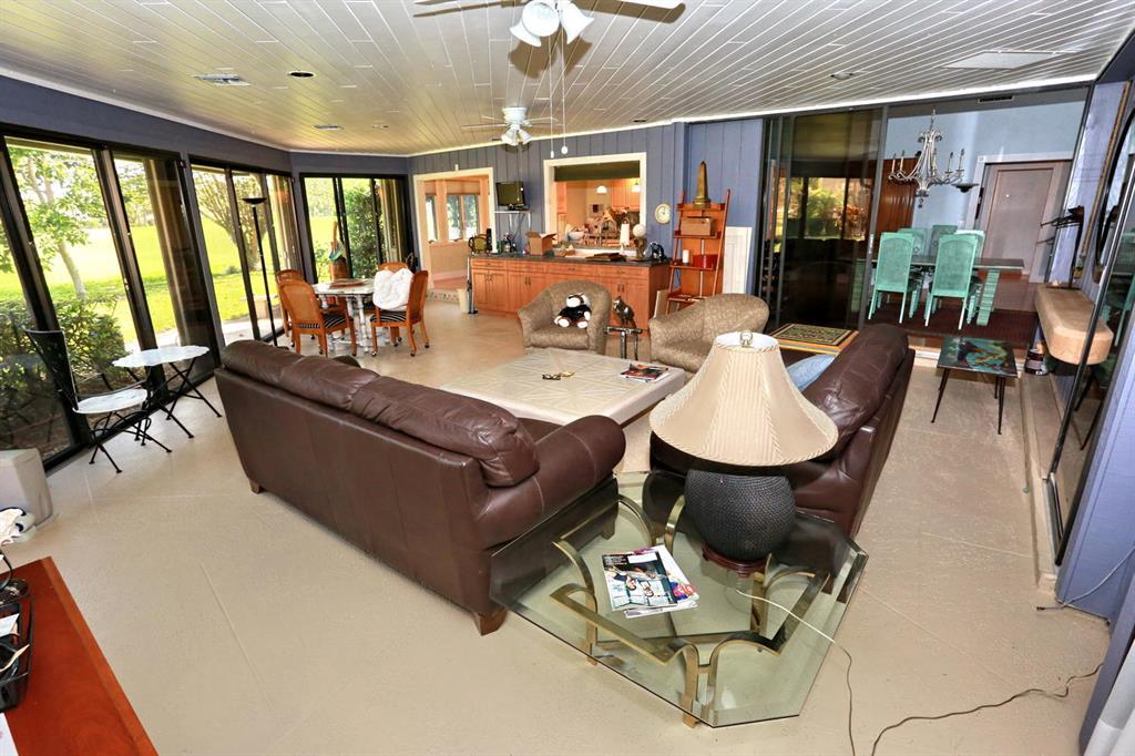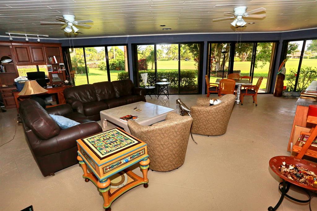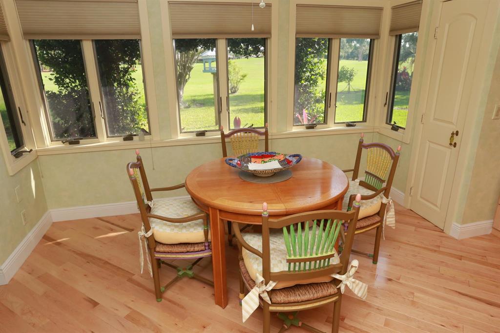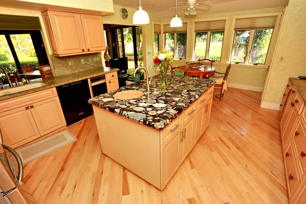 Rarely available single family home, Upgrades galore. Granite counter tops, high end wood flooring. Many accents. 3 bedrooms with den 3 full baths and 1 half bath. Beautiful bar area with mini fridge. 3 car garage. Located on the 10th and 15th fairways for panoramic views. Glass enclosed patio. A/C 2016, plumbing updated and water heater 2014. Roof 2005. Plenty of room for a pool!2 Gorgeous Clubhouses and amenities. Tennis, golf, gym, pro shop, restaurants and lounges, 2 pools.
