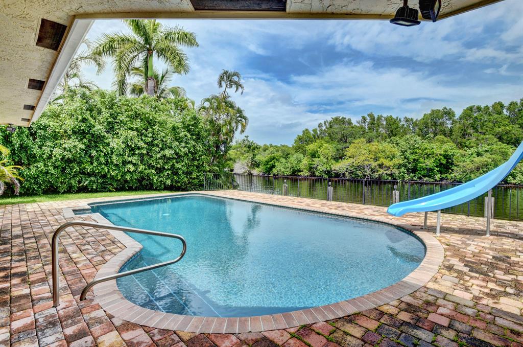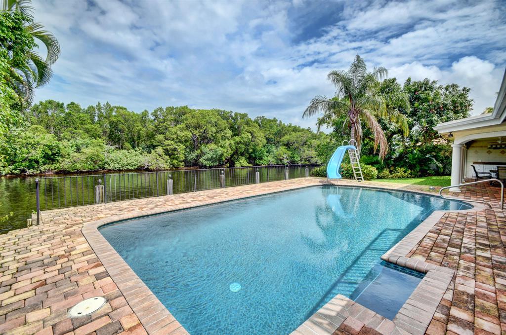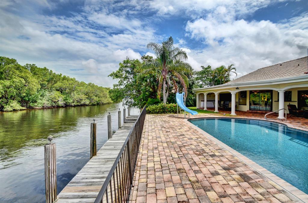 Fantastic 2 story waterfront home in the highly sought after community of Carriage Hill. Come see the amazing expansive views of El Rio Canal and a gorgeous nature preserve right in your back yard. Interior is open and spacious and features a Gourmet kitchen, with Stainless Steel Appliances, High ceilings and Marble flooring. This home features 5 bedrooms and 3 full baths with Master Bedroom on first floor plus an office. Backyard has a large size pool, paved patio area, summer kitchen and a covered area for relaxing and watching the boats go by. Private backyard with 60 Ft of Dock space showcasing your private boat. This home is a must see.