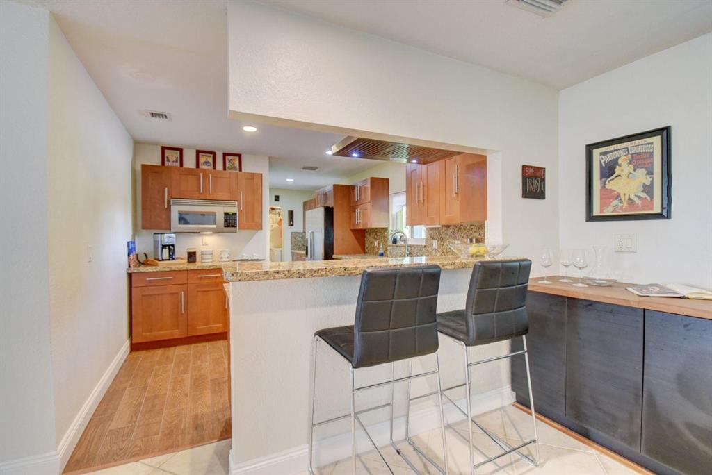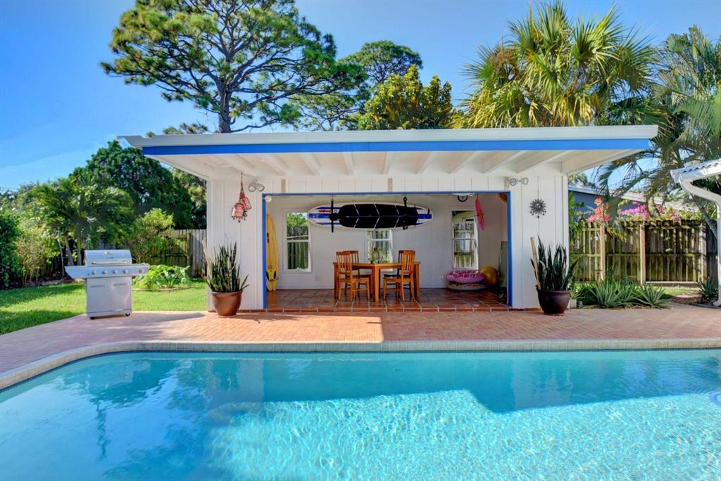 Special offering! The pride of ownership really shows! Updated and upgraded! Wonderfully open floor plan - big covered porch extends your living space outdoors. Gorgeous backyard with wonderful PRIVACY, stunning pool, paver patio, plus bonus detached CABANA perfect for outdoor entertaining. Kitchen with stainless steel appliances and granite counters, inviting breakfast bar. All Impact Windows/Doors - lots of natural light. Easy-care tile floors throughout. Split bedroom floor plan. Secluded and spacious master suite with big walk-in closet, opens to the inviting pool area. Master Bath renovated in contemporary white/gray tones, big shower with subway and glass tile. Private guest wing with two full baths. Outside storage room for bikes plus a large, newer shed that holds a lot! More...