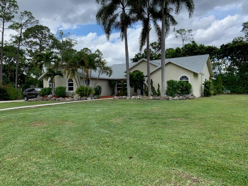 Live the country life in this 3 Bedroom 2 Bath home in the acreage which sits on 1.15 acres of beautifully landscaped property. Exterior features a large circular driveway, two storage sheds, covered screened-in patio including a great backyard space with firepit perfect for entertaining. This move-in ready home with spacious interior is very well maintained and has high vaulted ceilings, updated kitchen with newer Bosch brand high-end appliances, tile flooring throughout living and dining areas, and home security system. Extra large air-conditioned family room was formerly two car garage. NEW ROOF completed Dec 2018, New 16-Seer Trane A/C 2018, New 80 gallon Hot Water Heater, Kinetico water softening system. Plenty of room to park your boat, RV or trailer! No HOA.
