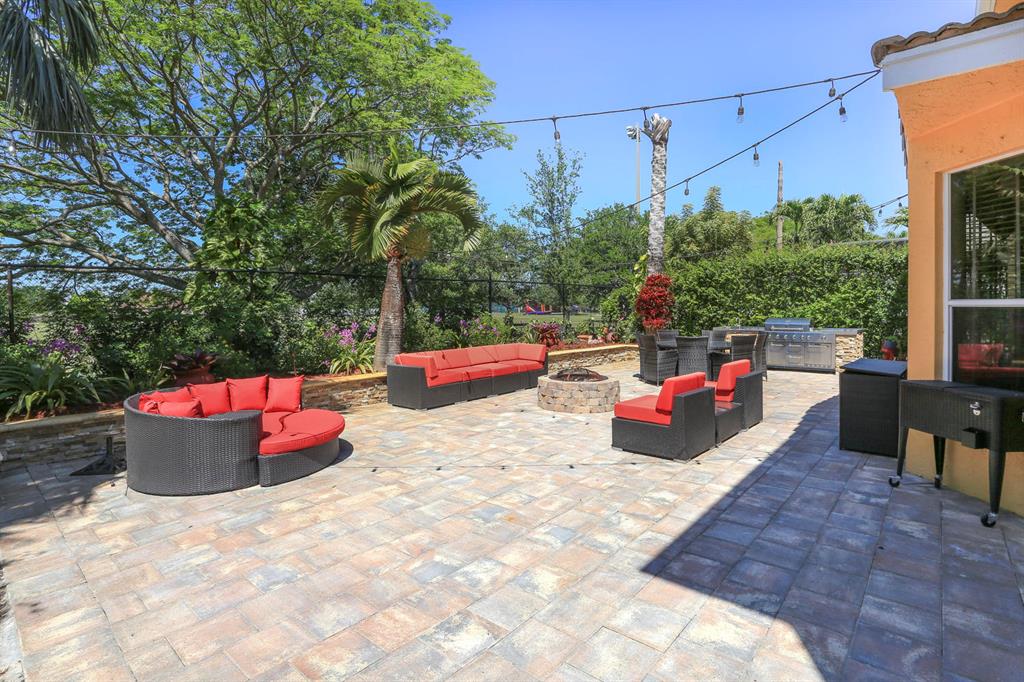 This home is an entertainers delight! Executive home in West Miramar is offering an extended patio with outdoor kitchen and fire pit, impeccable landscaping, fenced yard, updated kitchen, and gorgeous modern bathrooms throughout the home. This large 5 bed/4 bath Silver Shores home boasts a custom wrought iron staircase, wood flooring throughout 2nd floor, 1st floor has ceramic tile with marble inserts, as well as a full marble bathroom on the 1st floor, 4 walk-in closets, dedicated laundry room, and accordion shutters on the 2nd floor. The master bedroom is exceptional with almost 400 sq. feet of living space, 2-walk-in closets, his and her bathroom with spa tub, vanity, and oversized shower, as well as amazing views of Silver Shores Park!
