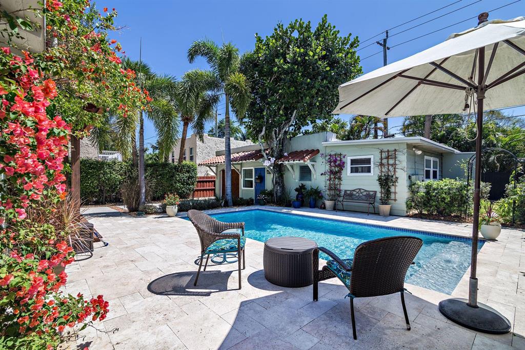 Exquisite simplicity defined in the outstanding renovation of a classic 2 story Mediterranean style home in the heart of El Cid. This 3BR/3.5BTH home features designer interiors, impact windows, gourmet kitchen, large family room, detached guest cottage, garage & new pool. Period details are noticeable from the moment you arrive. A winding walkway leads to the original arched, pecky cypress front door opening to the spacious formal living room with original fireplace. Immediately the abundance of light filled rooms is evident as hardwood oak floors flow throughout. French doors lead to the Florida room with original Cuban tiled floors, archways lead to the formal dining room and the large family room with cypress beamed ceiling. The renovated chef's kitchen with butler pantry connecting to