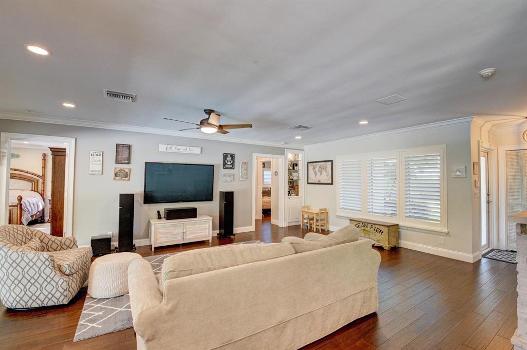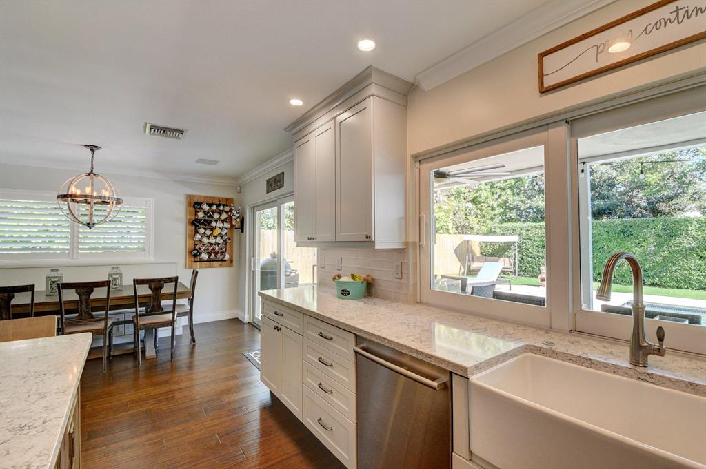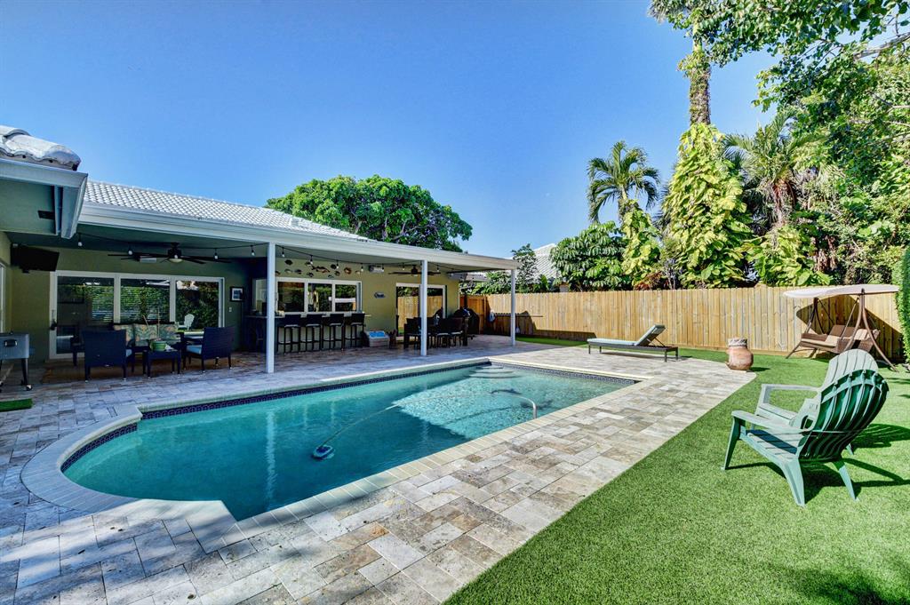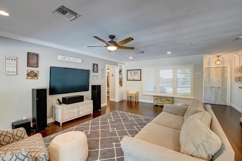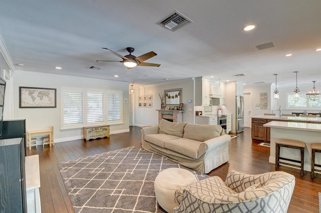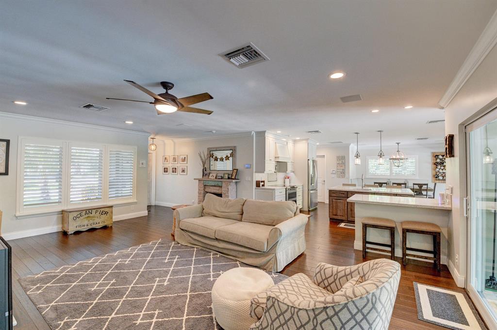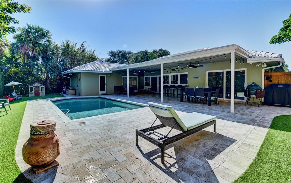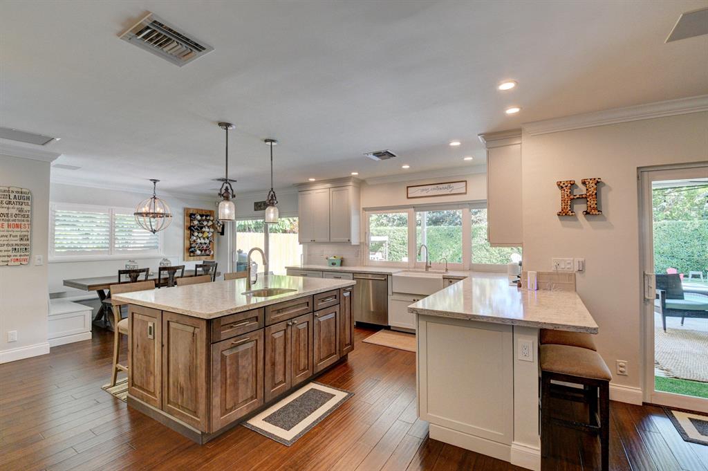 MOVE-IN READY! Gorgeous 3BR/2BA open floor plan pool home completely gutted with all new electrical, plumbing and appliances- remodeled in 2017. Custom kitchen with quartz countertops, dual sinks, wine refrigerator, smart double oven with pot filler, under cabinet lighting, custom built-in dining room, massive island with tons of storage. Sound proof laundry room, 400 SF air-conditioned garage.Upgrades include wood floors, crown molding and baseboards everywhere, Italian marble in bathrooms, large master bath with rain shower. All custom closets. Impact windows and doors. Turf backyard, large covered patio, saltwater pool, travertine pool deck and driveway.A-rated schools, close to shopping, dining and beach.