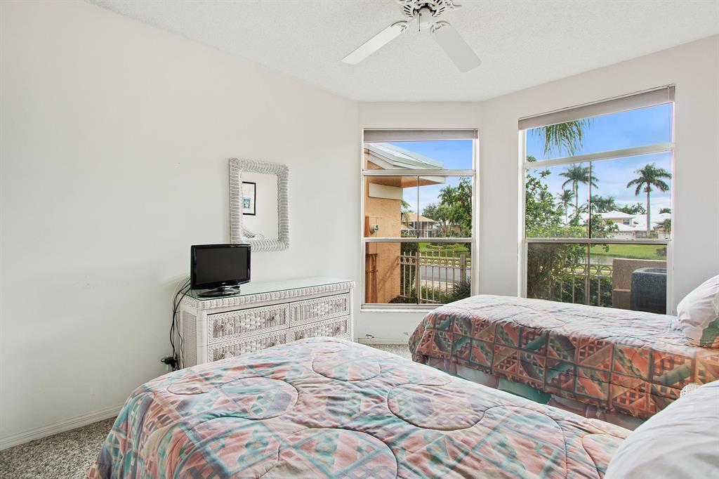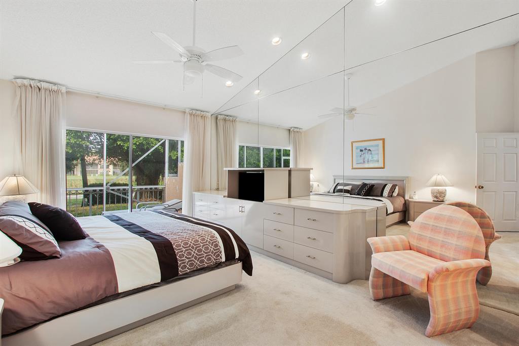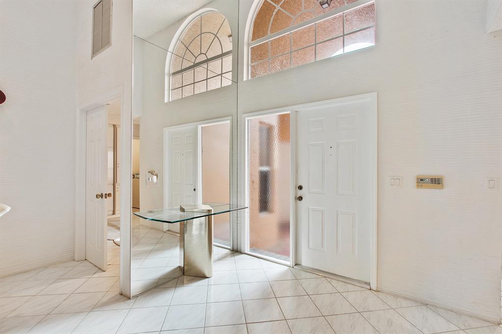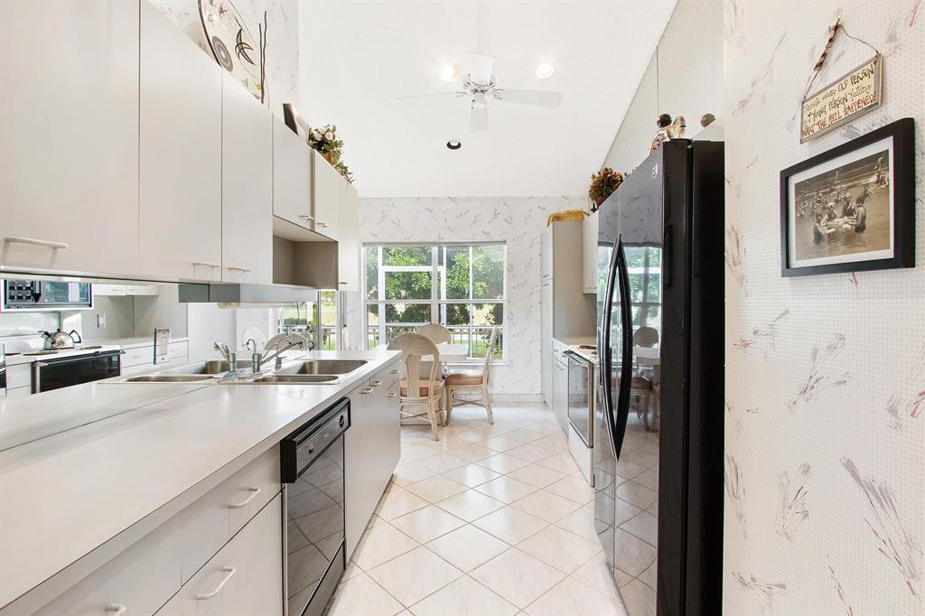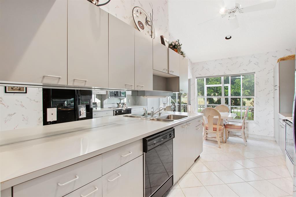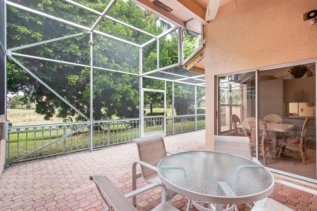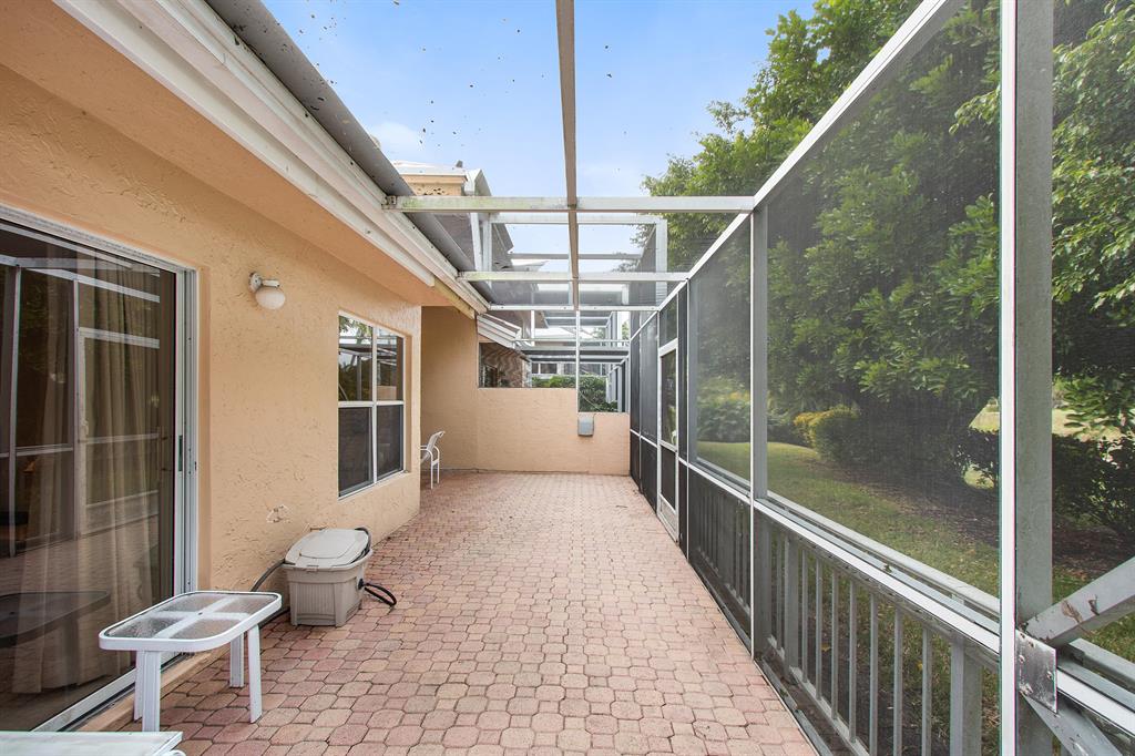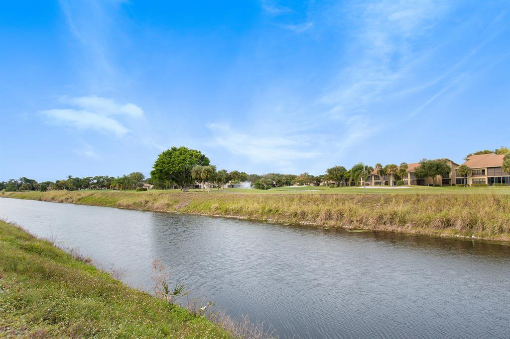 This open and spacious townhome with vaulted ceilings awaits you. Offering true potential and amazing value to live in the award-winning Polo Club Country Club. All on one level with a large master suite and two additional separate bedrooms. The screened private patio overlooks a tranquil setting of lush trees, canal, and a golf course in the distance. The 2 car garage and brand new roof that is being installed is an added bonus.