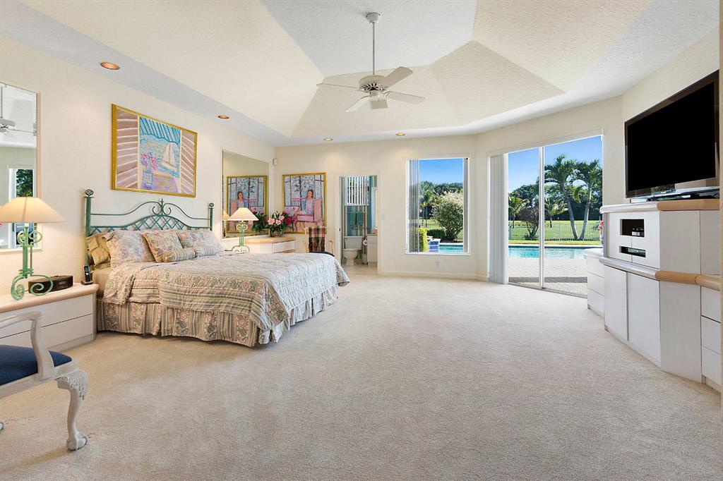 If location is important then southern exposure, wide lake and golf view and cul-de-sac lot makes this the home for you. Inside you will find grand home with high ceilings and wide open floor plan. The kitchen over looks the bright family room and private pool area. The master bedroom is large and offers two large closets and two master bathrooms. The guest suite has an adjoining bathroom and the third bedroom features a built-in desk . This fine home also includes a roof that was installed in 2017, two zone A/C, central vac, heated pool with spa and expanded lot. Broken Sound is the finest resort style communities in South Florida. Ask for a private tour when visiting this wonderful home.