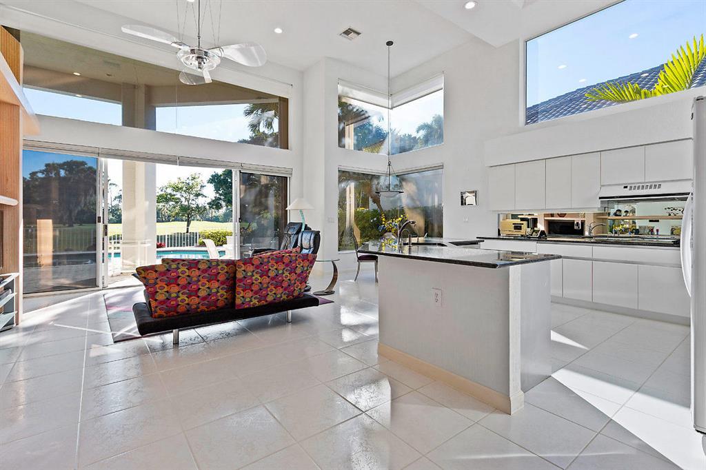Entering you will be greeted with an open an bright home with high ceilings and a forever lake and golf view. It offers 3 bedrooms with the 3rd bedroom having a built in office and Murphy bed. The Kitchen is open to the family room and has beautiful granite counters and white cabinets. The Master bedroom has two bathrooms with one of them doubling as a cabana bathroom. The other has marble floors and frame less shower. There are also two large walk-in closets with custom build-outs. Other features include hurricane shutters,LED lights, two zone A/C, central vac, a roof that was replaced in 2007 and recently painted interior. Broken Sound club is known for it superior amenities, very active tennis program, world class golf and friendly residents. Come live the lifestyle you deserve.