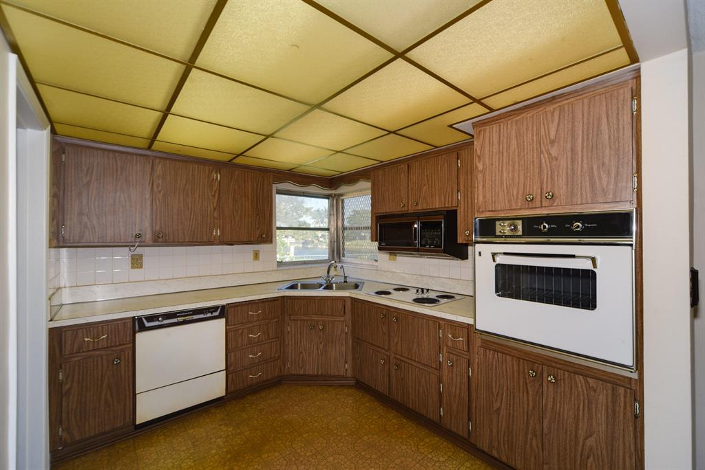 Property is located on a spacious lot with 1 covered carport and plenty of room for additional vehicles. Very large front porch great for relaxing. As you enter this property you see the living and dining room, split floor plan. 3 Bedroom 2 Bath lake front home! Master bedroom has private bathroom and door leading to backyard. Lots of potential in this property. Inside laundry room with door leading to carport. Terrazzo flooring in the entire property. No central AC, two wall AC's. Very large and spacious covered screened in patio overlooking the lake. Very secluded and private backyard in highly desirable area.