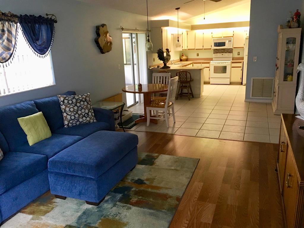 Must see this spacious open floor plan with vaulted ceilings, 2 bedroom/2bath home on the golf course with a 1 car garage and 2 car driveway. The large kitchen has new lighting, and dishwasher with a screened patio overlooking the golf course. New flooring in living area and Master Bedroom has walk-in closet while Guest bedroom has a 10' closet. CYPRESS LAKES is an active 55+ community, low HOA fees and includes: 24hr man gate, Par 3 golf course, club house, community pool, hot tub, sauna, tennis, shuffle board, mini golf, bike and jogging and many other activties for the active person. Pets are welcome.Come see this home before its gone...