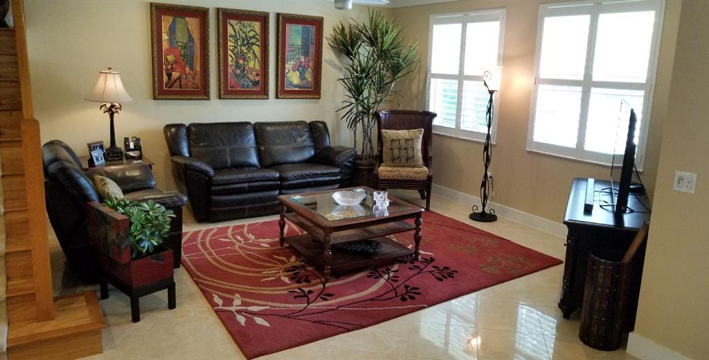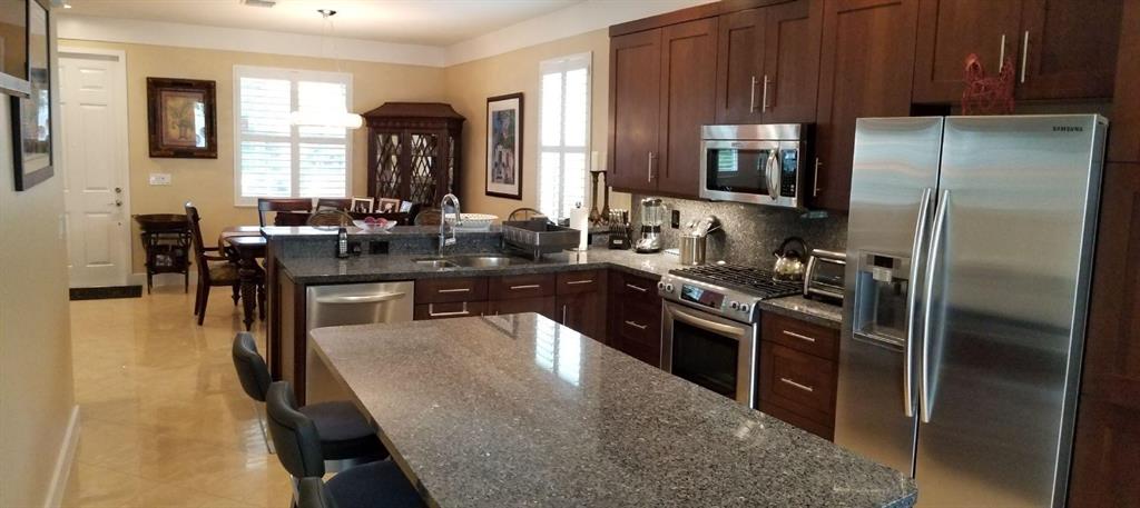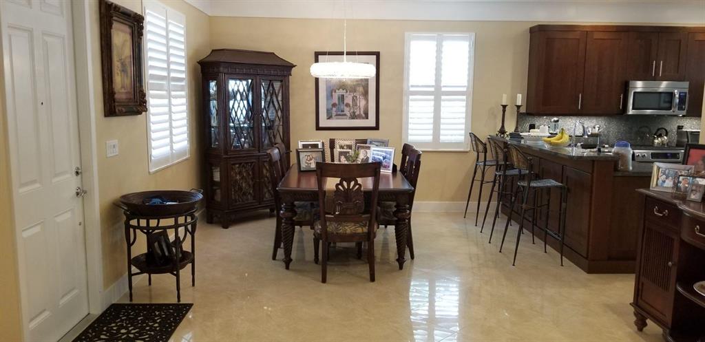 Picture perfect, immaculate, and move in ready w/upgrades galore! Sensational 3/2.5, 1996 sq ft in the Club Villas duplexes w/hurricane impact windows located in the prestigious resort community of Artesia. The inside features open-kitchen concept with Kitchen Aid appliances, upgraded cabinets/drawers with soft close, pullout shelves, granite countertops and backsplash w/under counter LED dimmable lighting. 18'' rectified, diagonal porcelain tile downstairs. Hardwood floors upstairs. Windows have gorgeous plantation shutters. Custom mirrors and glass throughout as well as high-end crown molding and baseboard throughout. 2 wall-mounted TVs stay. Passcode/keyless entry and security system with touchscreen keypad. Laundry room upstairs w/easy shut-off valve. Cabinets/storage in garage.