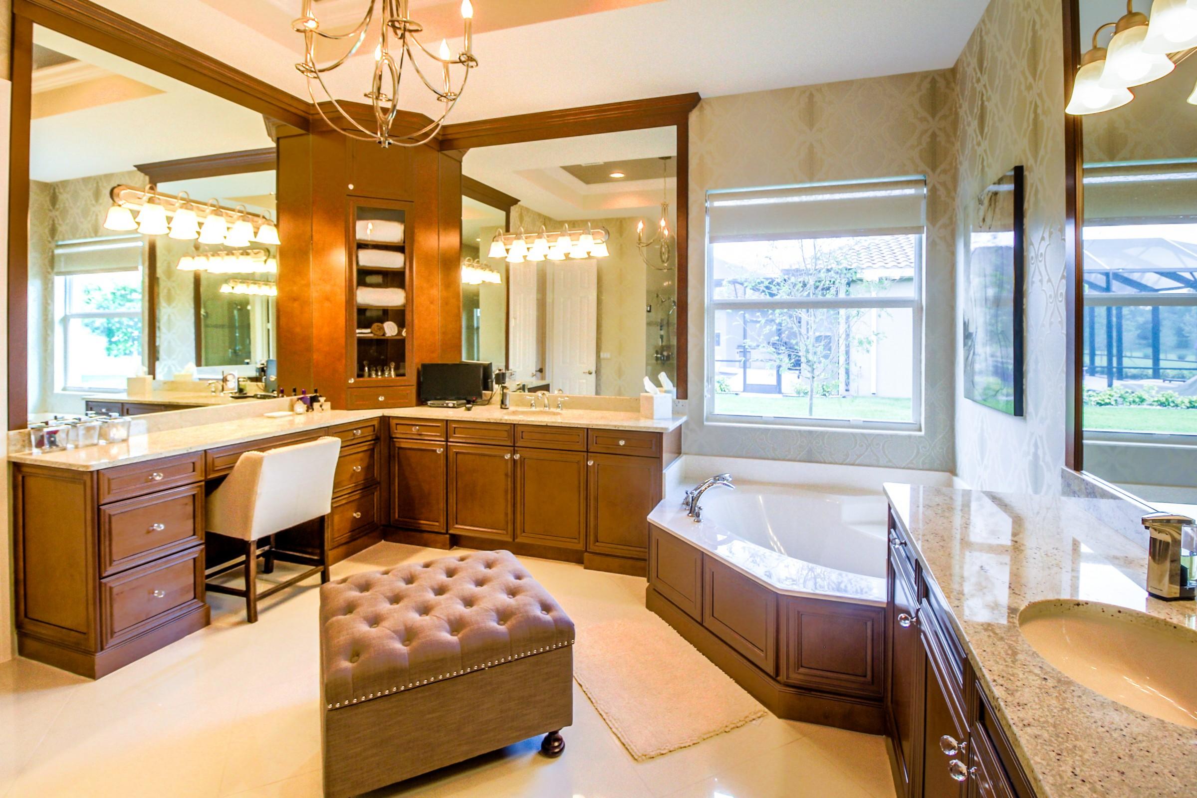 Spectacular 2014 built Magnolia model with 2016 completed addition has three way split plan, 4+ oversized garages, private 3/4 acre lot with lushlandscape and lighting. This is a 3 bed 3 1/2 bath home plus media room and large gym that can be converted to a bed or office. There is a mud room that can also beused as a hobby room or small office. All bedrooms boast walk-in closets and private baths. Very private master suite with his and her closets with built in cabinetry. Master bath has upgraded cabinetry with dual shower heads. Custom draperies and crown moulding throughout. Custom iron door and all impact glass. No design detail was overlooked in this home which is exquisitely decorated.