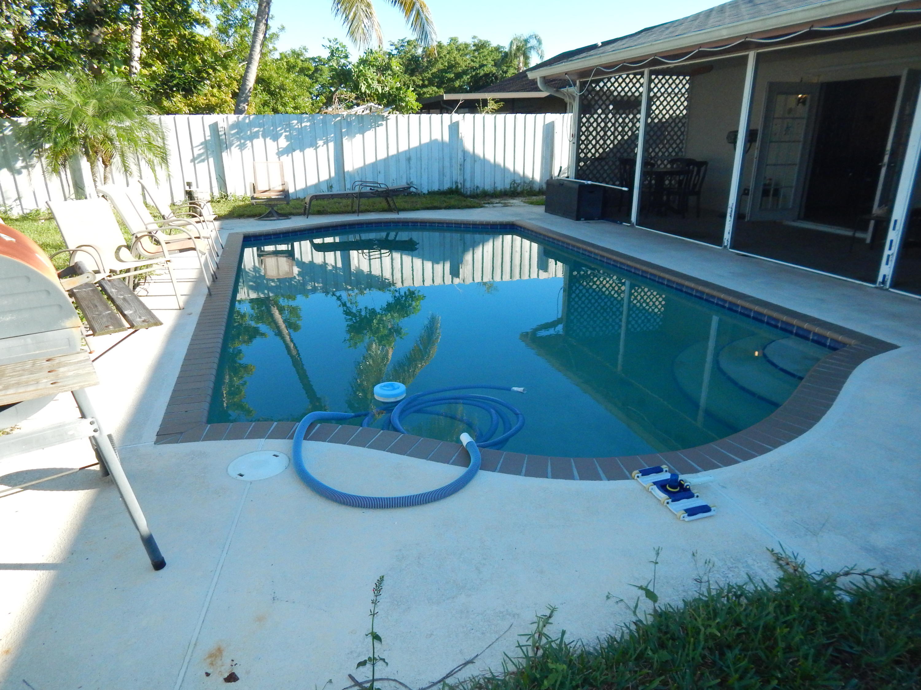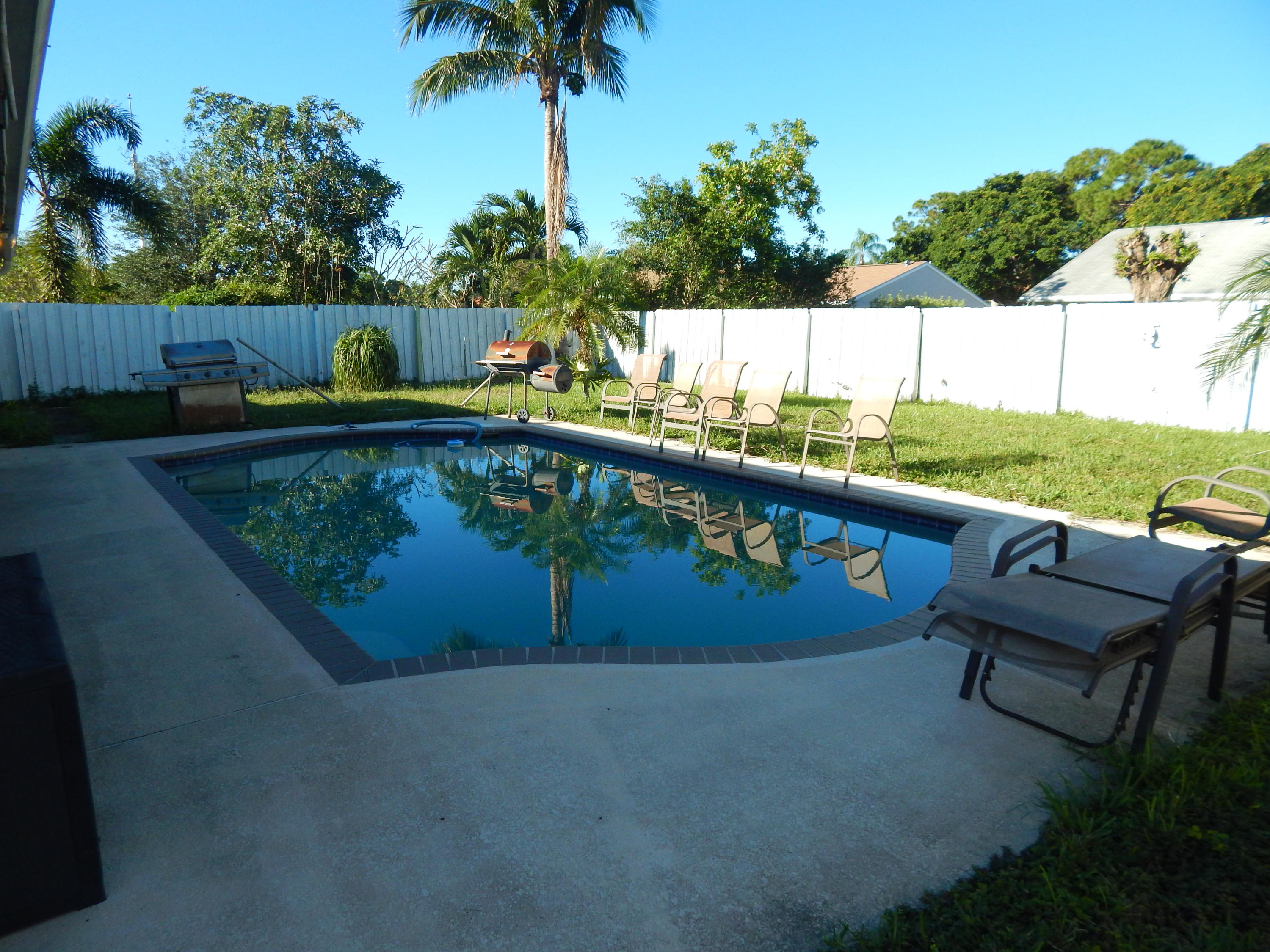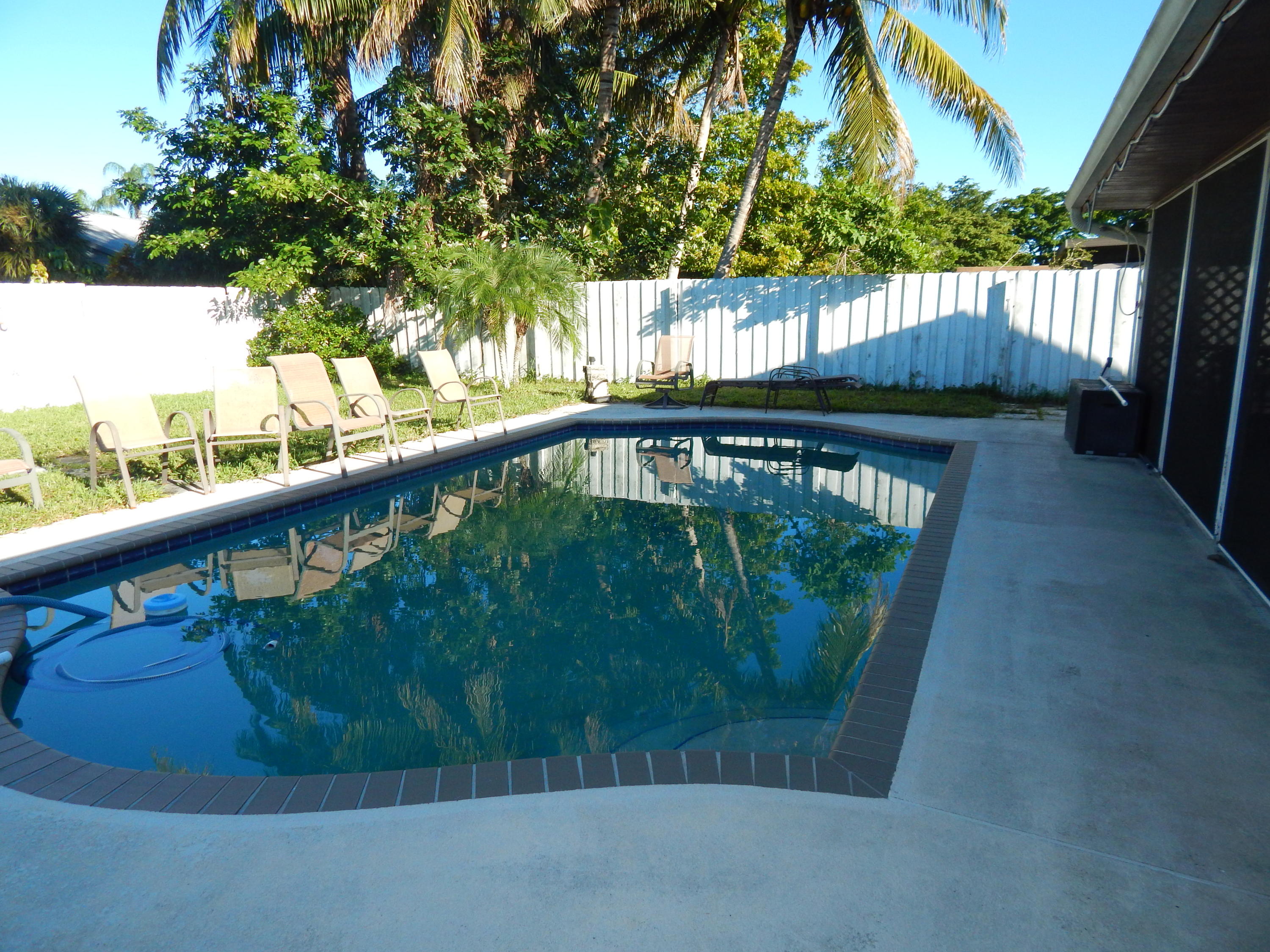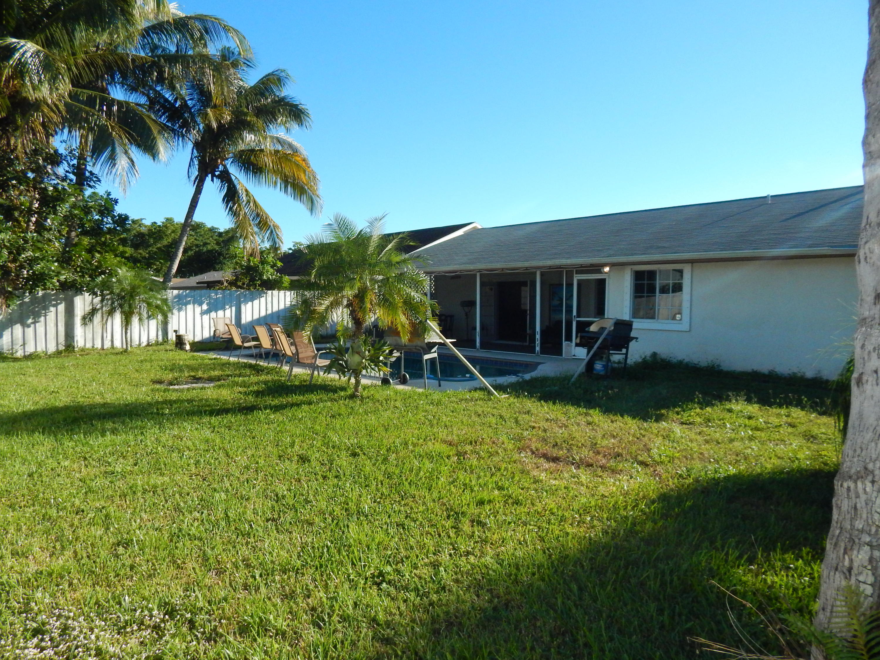 Large fenced in backyard with a pool! Updated kitchen with bar and black appliances. Open great room with volume ceilings. Tile floors in living areas. Large 2 car garage, hurricane protection. Over sized master bedroom with a nice view of the backyard. Screened in patio overlooking the resort style pool. Formal dining room, this home feels much bigger than the square footage. Live minutes from the I-95, shopping restaurants and 15 mins from Downtown West Palm Beach!