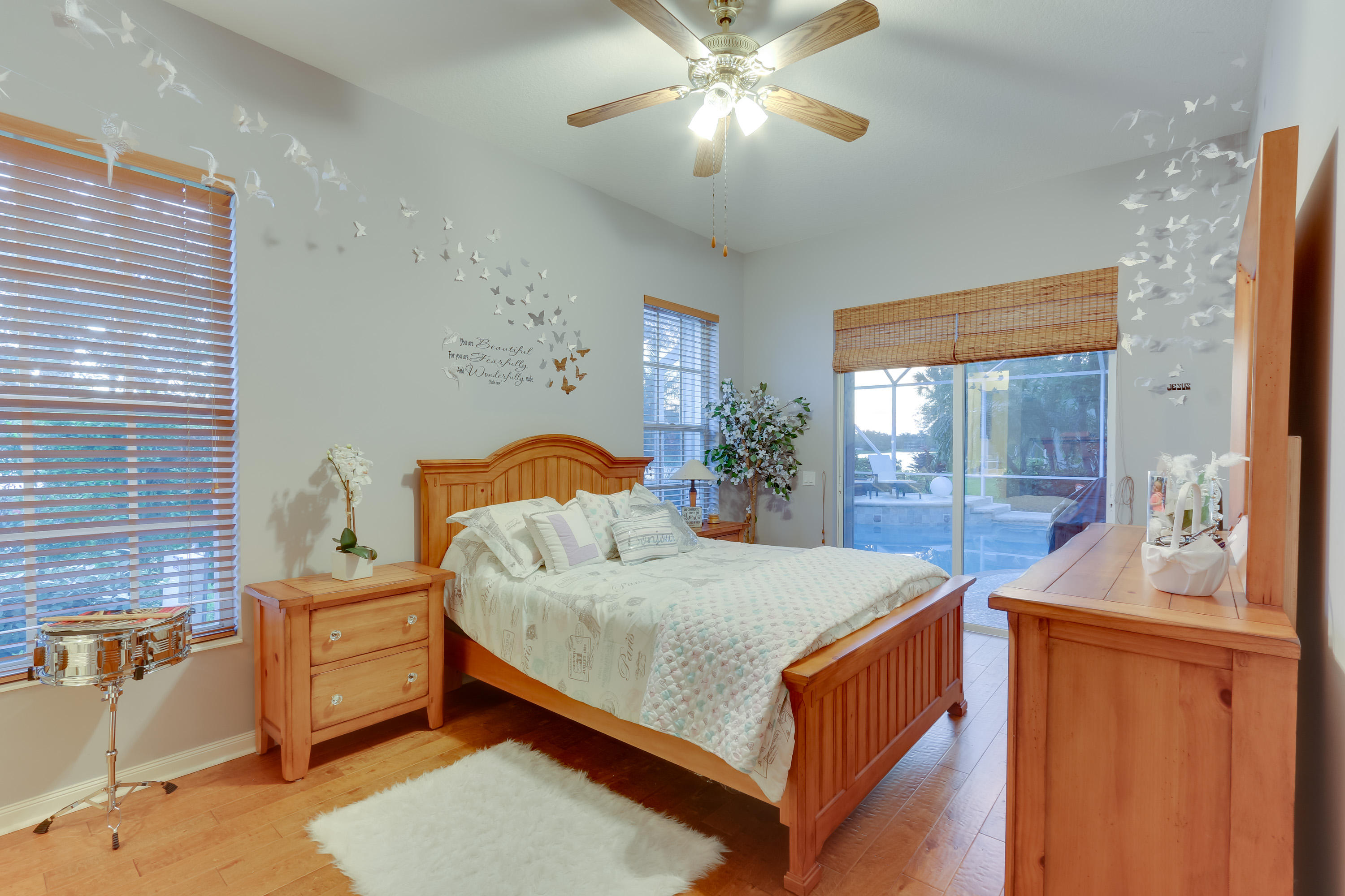 An extraordinary home you don't want to miss. This 3 bedroom 3 full bathroom 2 car garage pool home offers more that you can imagine. When you enter into this home the first thing you will see is the breath taking water views. Light modern tile in main living areas. Granite counter tops, stainless steel appliances and rich chestnut wood cabinets in the kitchen. The owners suite has upgraded dark bamboo flooring, his and hers closets, great views of the lake and pool. Home has great open layout, vaulted ceilings, den, upgraded lighting, beautiful wine room, formal dining, breakfast nook. The screened in resort style salt water pool will truly make you feel like you're living in a resort. This gated community has so much to offer. 8 tennis courts. 2 pools plus a lap pool just off of the gym,