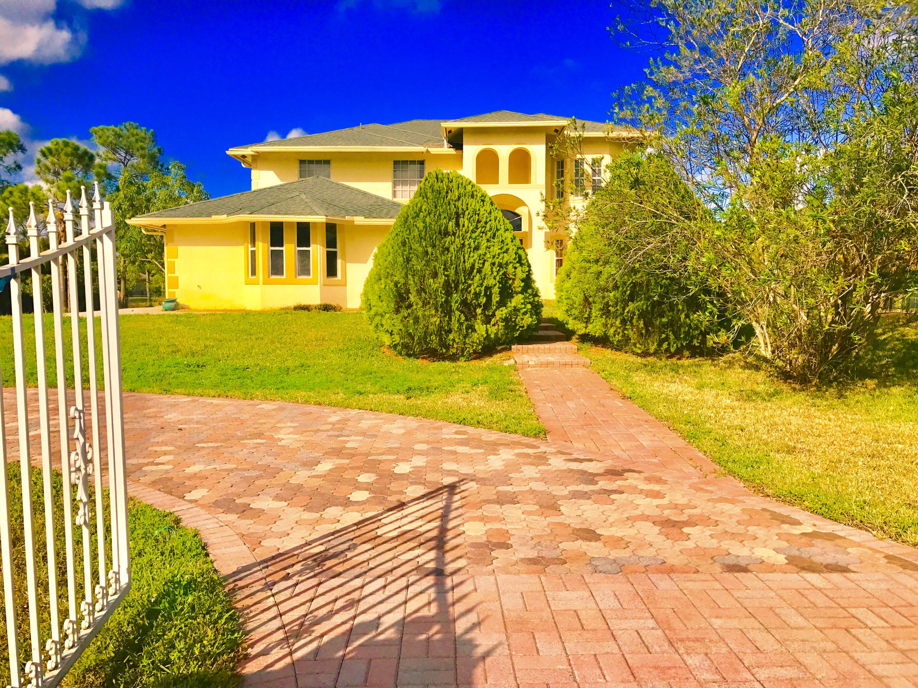 WOW!!! WOW!! 5 BEDROOM 4 BATH 3 CAR GARAGE HOME IN ACREAGE ON 1.29 ACRES. ELEGANT PAVER DRIVEWAY LEADS TO YOUR PARADISE. DESIGNER KITCHEN WITH GRANITE AND NEWER CABINETS, NEW STAINLESS STEEL APPLIANCES, ISLAND. 1ST FLOOR HAS BEDROOM- NO CLOSET WITH FULL BATHROOM FOR MOM OR GUEST- THIS HOME ALSO BOAST HUGE FAMILY ROOM FORMAL LIVING AND FORMAL DINNING. FANCY & ELEGANT STAIRCASE TO 2ND FL. MASTER SUITE HAS 2 FULL BATHROOMS!!! YES 2 FULL BATHROOMS- NEWLY RENOVATED HIS AND HERS FULL BATH. HUGE WALK IN CLOSETS, TRAY CEILINGS AND SITTING AREAS. LARGE PATIO FROM MASTER SUITE FOR ENJOYING THE EVENING SUNSET OR A DRINK. OTHER 3 BEDROOMS ARE ALL OVERSIZED WITH WALK IN CLOSETS.OTHER 2 BATH- NEWLY RENOVATED !! EXOTIC FRUIT TREES- MANGOES, JUNE PLUMS. NO HOA , BRING YOUR RV , BOAT, TRAILER !!!
