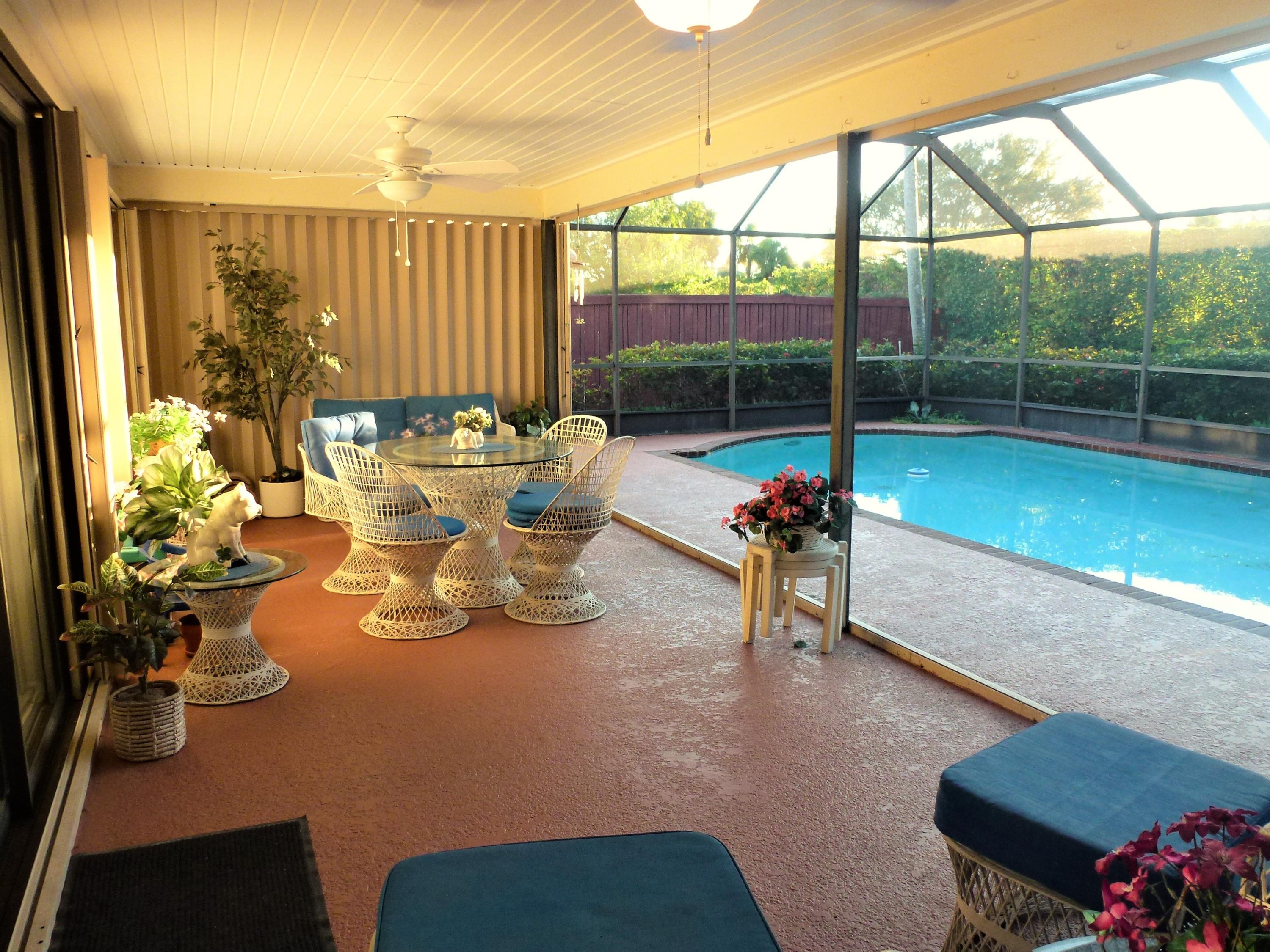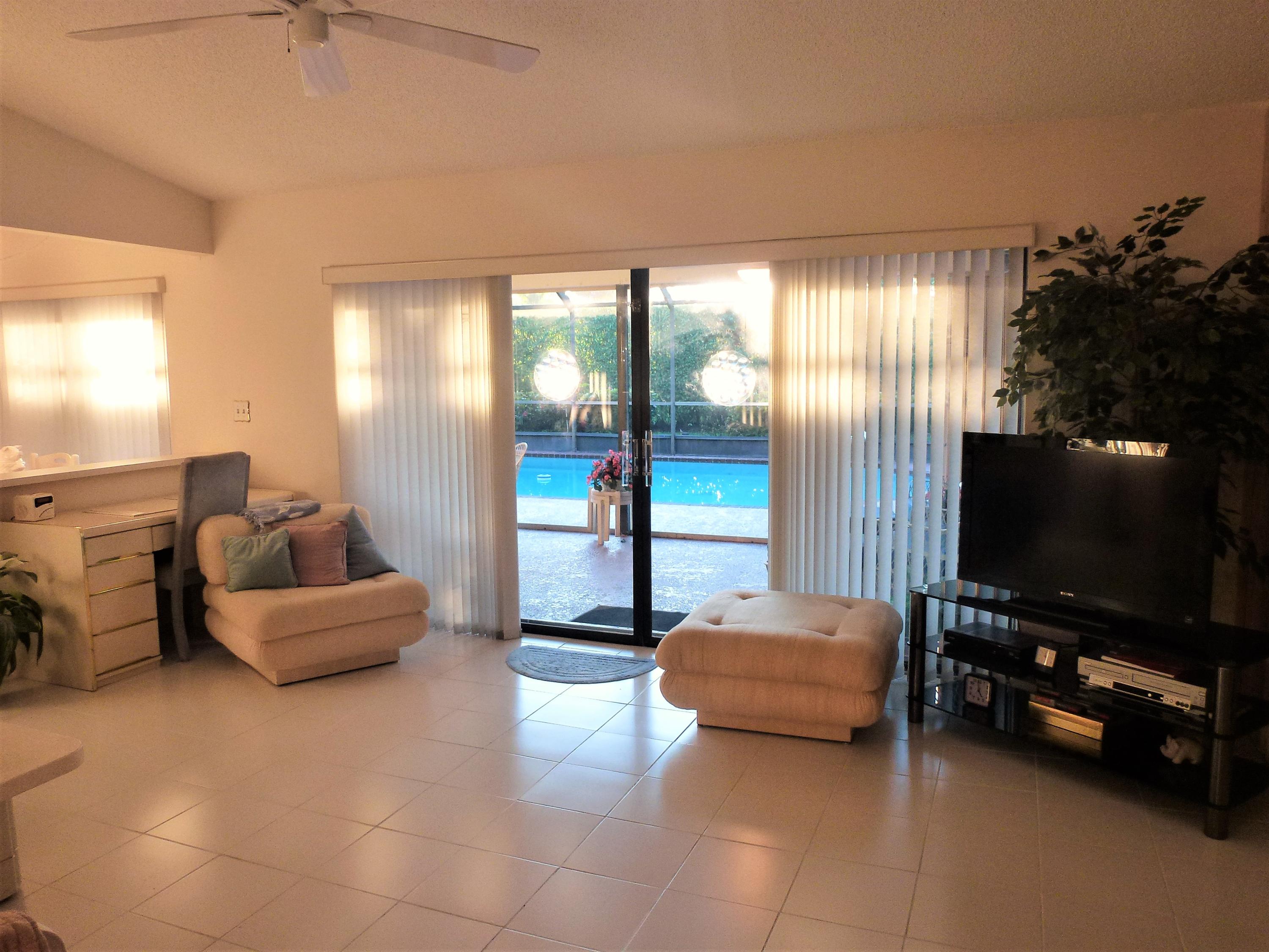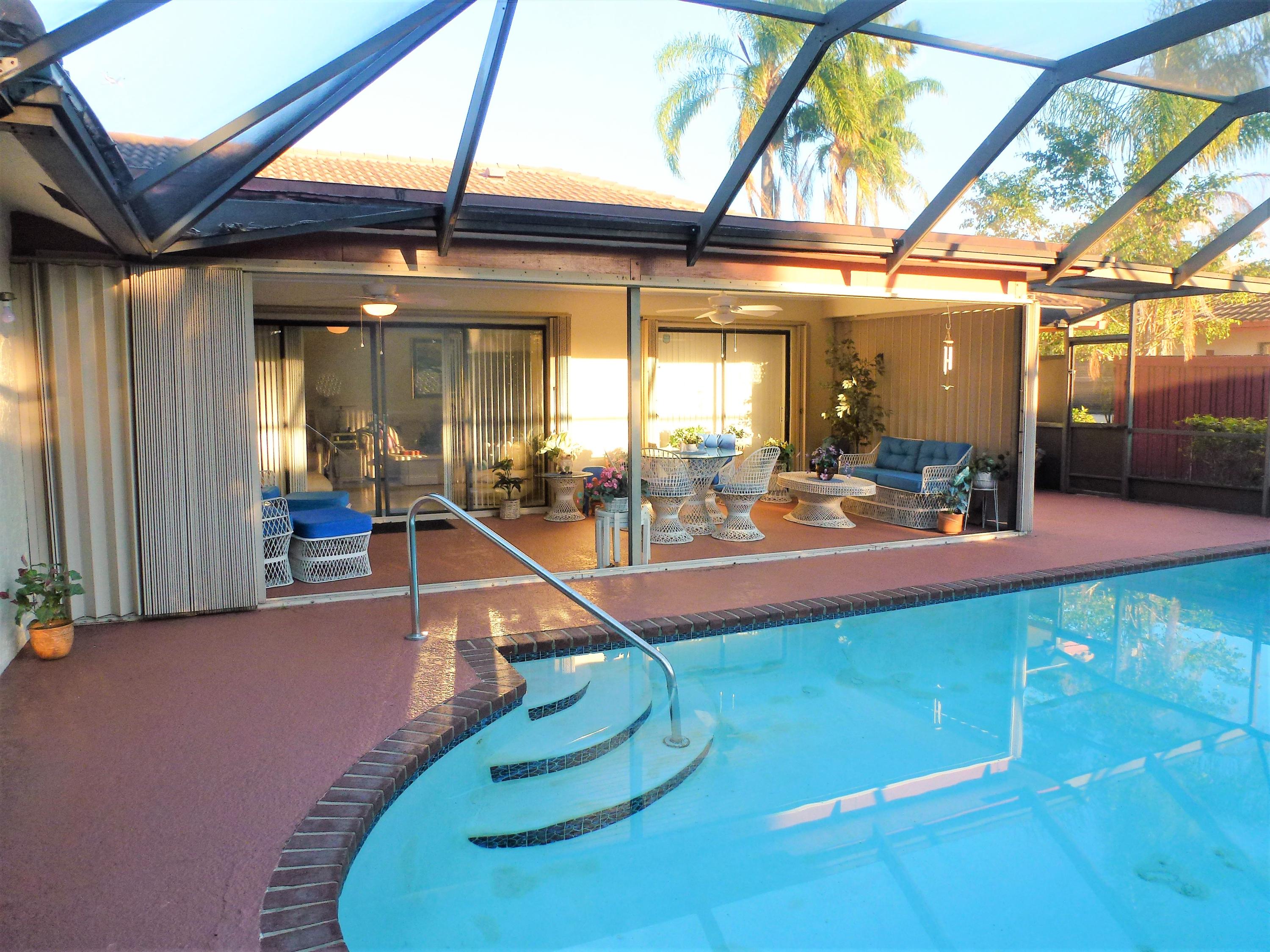 Come fall in love with this rarely available stone front home in the coveted Village Del Mar! This light and bright home offers almost 2,000 square feet of living area with volume ceilings. The oversized kitchen opens up to the Great Room for today's modern lifestyle. Romantic master suite with a custom walk-in-closet and a private cabana bathroom. Fantastic outdoor space with a covered loggia and a screened-in patio and pool - perfect for entertaining! Top location - just steps to shopping, dining, houses of worship and so much more. Also convenient to the Town Center Mall, medical services, beaches, commuter roads and everything Boca has to offer! Boca Raton schools! Hurricane shutters for all windows. Space for a possible fourth bedroom. Dining room light fixture excluded