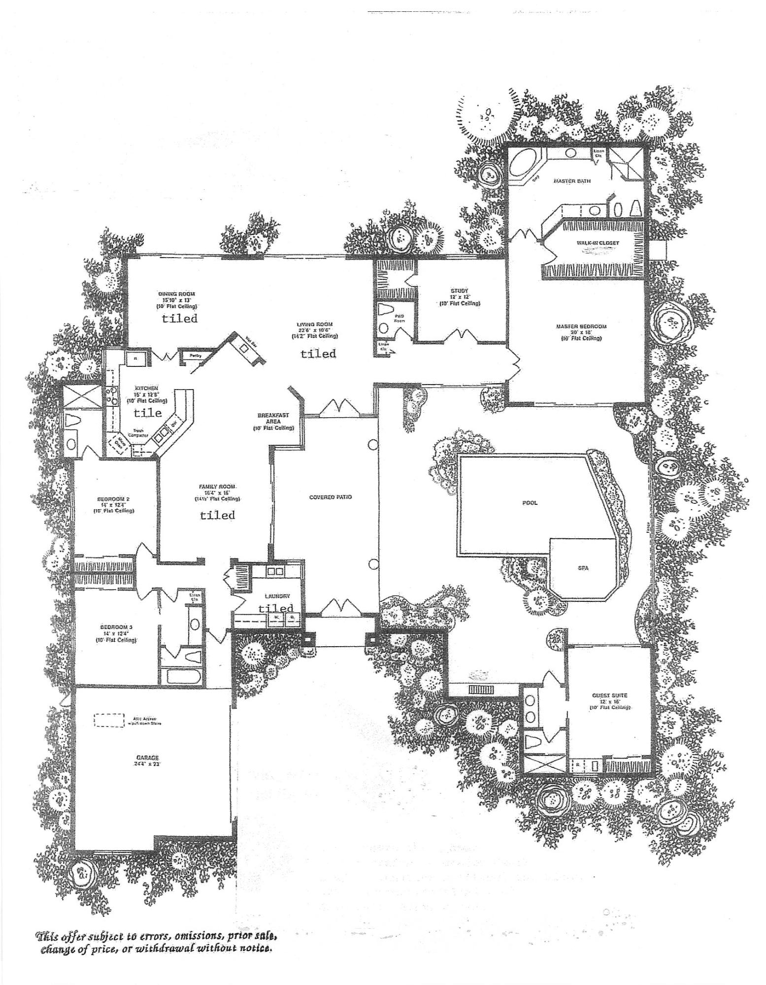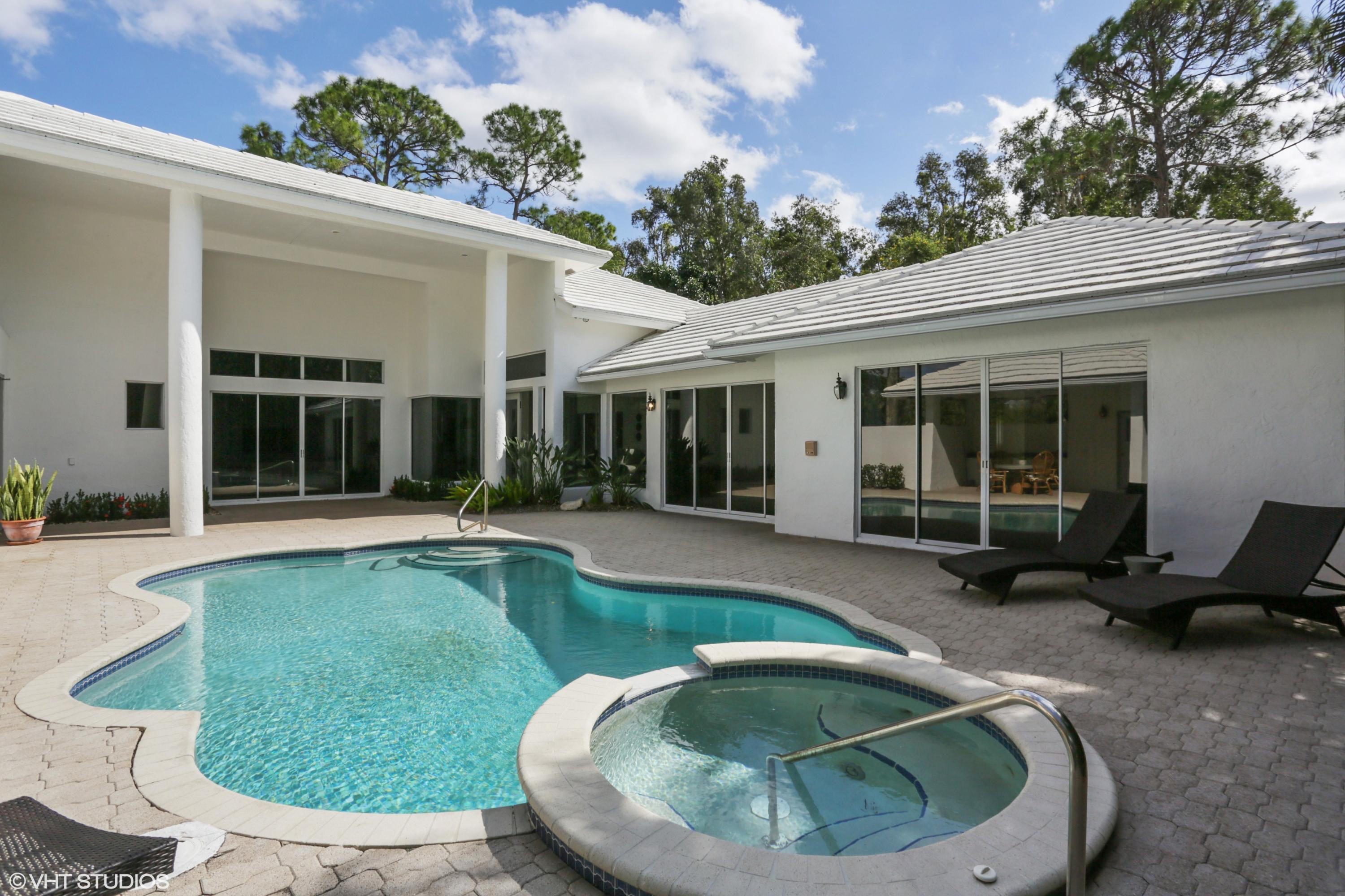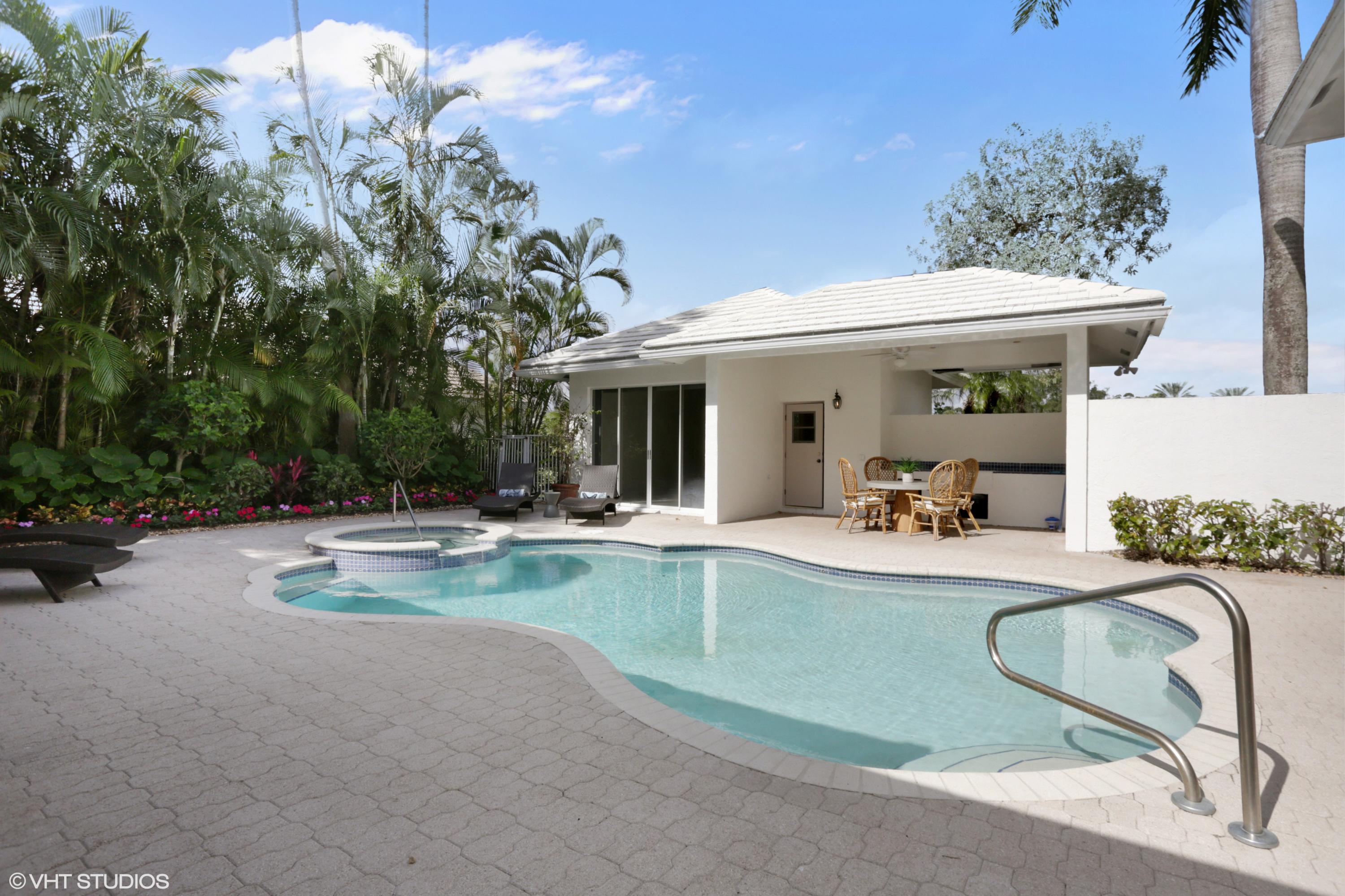 Conveniently located in elegant Breakers West gated community, this estate home welcomes you with a lushly landscaped courtyard entrance with free-form pool and spa. The Main house has 4 BR + 3.5 BA (3,372 SF) plus a Guest House (358 SF) with 1BR, 1BA. All major rooms overlook the courtyard and pool for ultimate privacy. Contemporary and open floor plan features high ceilings and lots of natural light. Spacious Master Suite has 14'x 8' walk-in closet. Guest bedrooms each have private baths. Guest House has endless possibilities as a bedroom, office, gym or game room. Tile roof replaced 2005; 4 AC systems replaced 2017. New carpet in MBR. Breakers West is unique as club memberships are available but are not required. Close to downtown WPB, PBI and Wellington equestrian amenities.