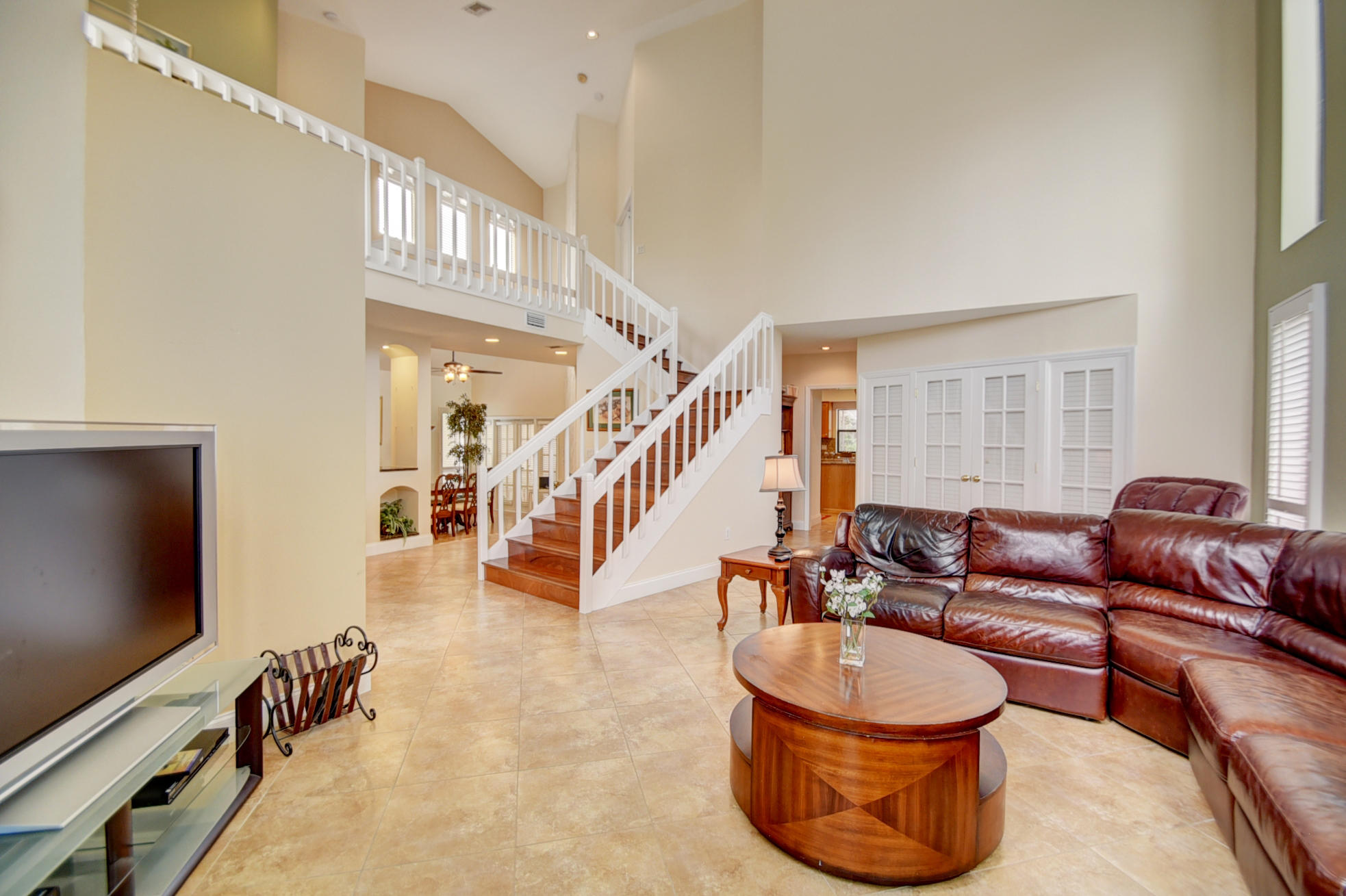 Exquisite & custom 5 bedroom, 4 bath, pool, waterfront, corner home is located in Esplanada, in Boca Pointe! Private paved gated entrance w/waterfall leads to your front door. Dramatic entrance w/soaring ceilings & picturesque windows. Enjoy the sense of openness, volume & space. Foyer has charming mosaic tile in entryway & tile on a diagonal throughout the 1st floor w/wood flooring on the staircase & upstairs (NO Carpet). This custom model is very unique. Four bedrooms upstairs plus a large versatile loft that can be used as an office, play room, library, etc. All 4 upstairs bedrooms have a balcony. One Bedroom downstairs PLUS a den. Updated gourmet kitchen features granite counter tops & back splash, large cook island, new high-end Samsung stainless steel appliances, ''Click More''
