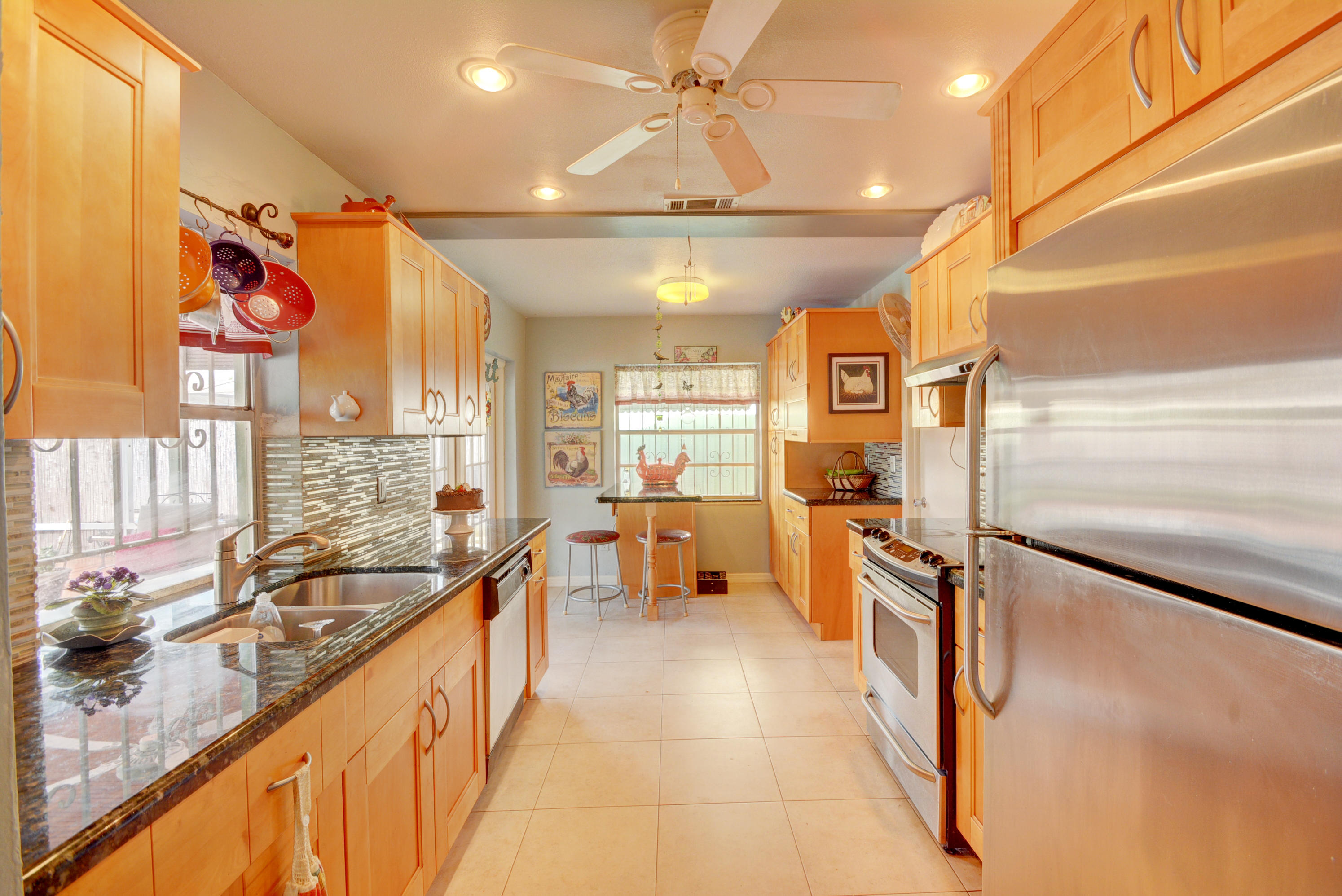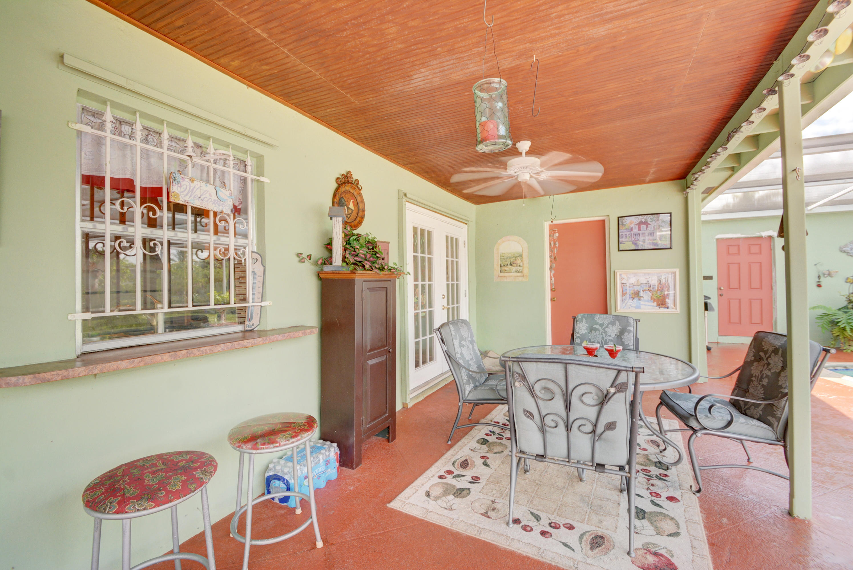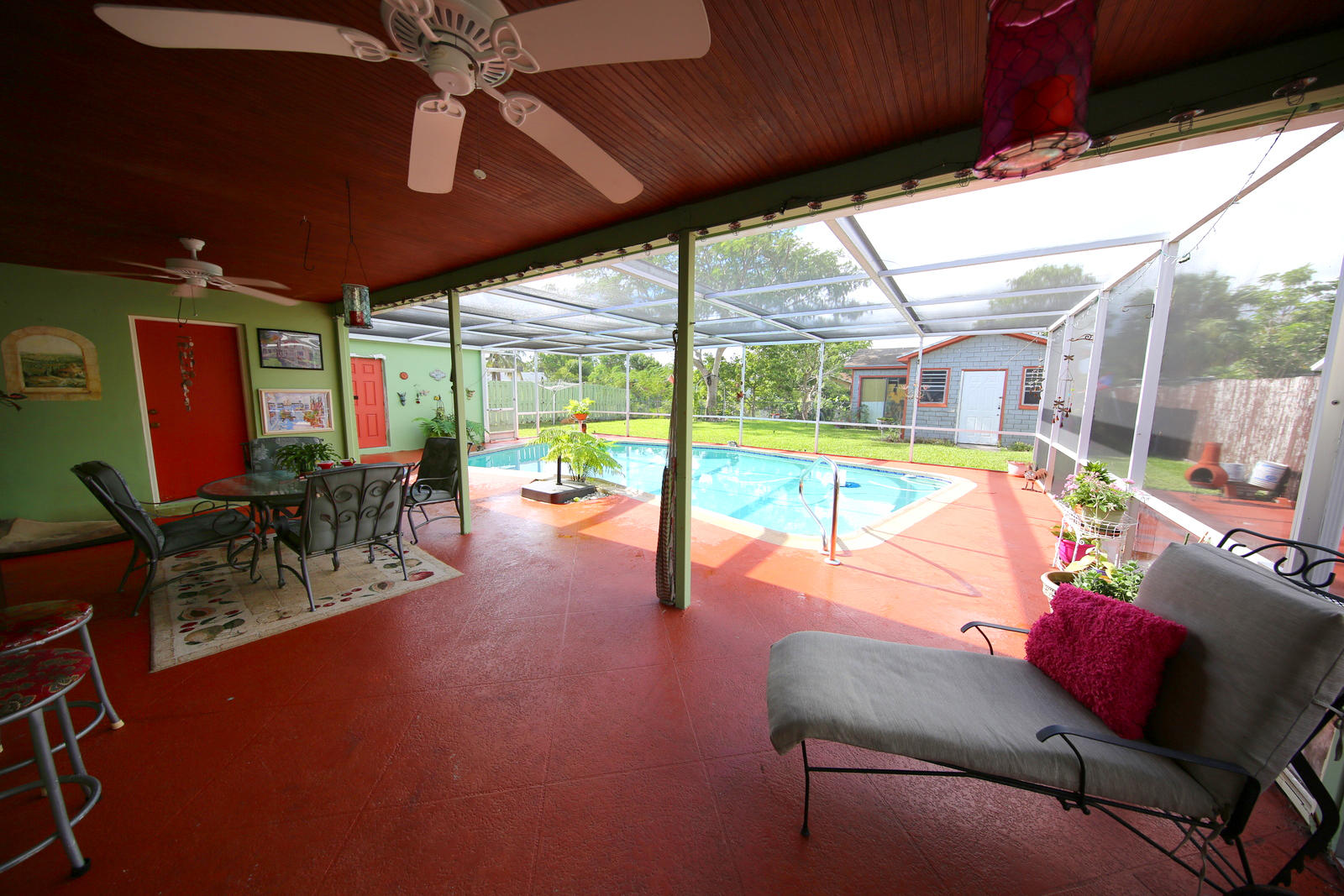 Hidden tropical paradise awakes! Fabulously updated home on the water & offers total privacy w/almost quarter acre of lush landscaping & screened in pool that's fenced in! Remolded kitchen w/granite counter tops/glass tile backsplash/wood cabinets/newer stainless-steel appliances plus granite built in table top eat in kitchen. Two sets of French doors lead from the dining room & kitchen to the screened in pool & lets in tons of sunlight & beautiful views. Two large bedrooms plus 3 full bathrooms that are all updated/1 has large tub w/Jacuzzi jets! Plus 1 car garage with A/C vents & can be converted to 3rd bedroom plus separate utility building/workshop that's around 400 SF/that can be many things/Can be converted to mother in law suite. Also 2nd workshop w/ additional 278 SF.