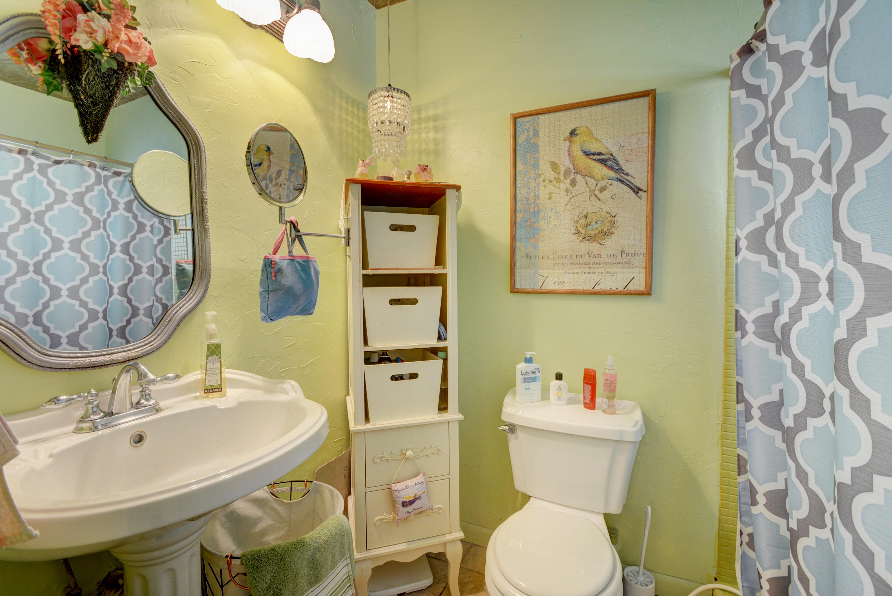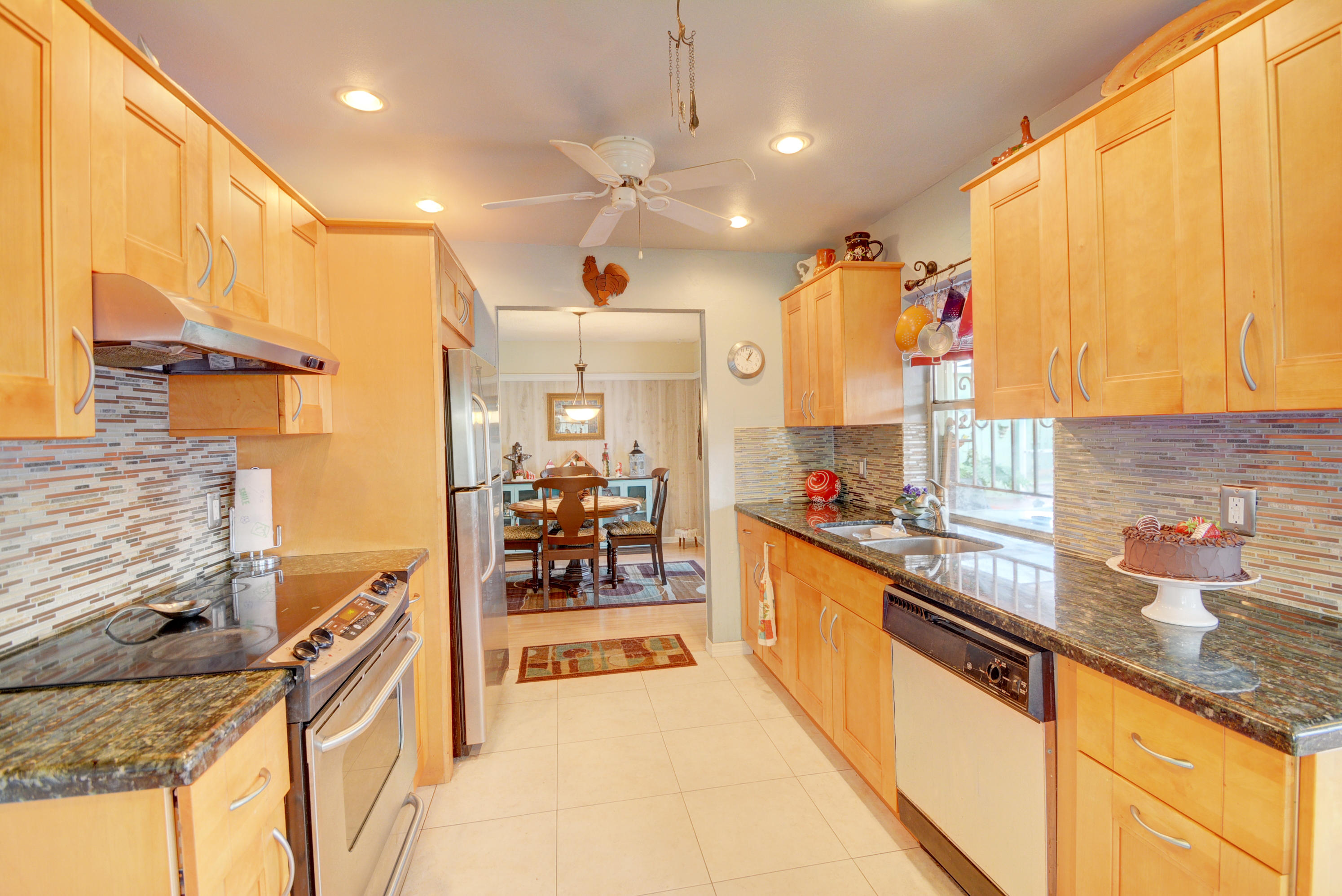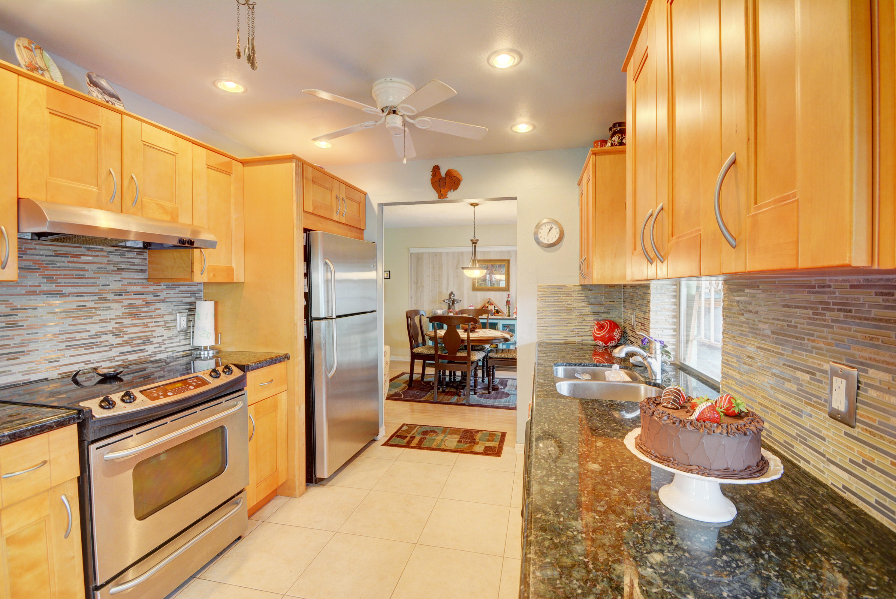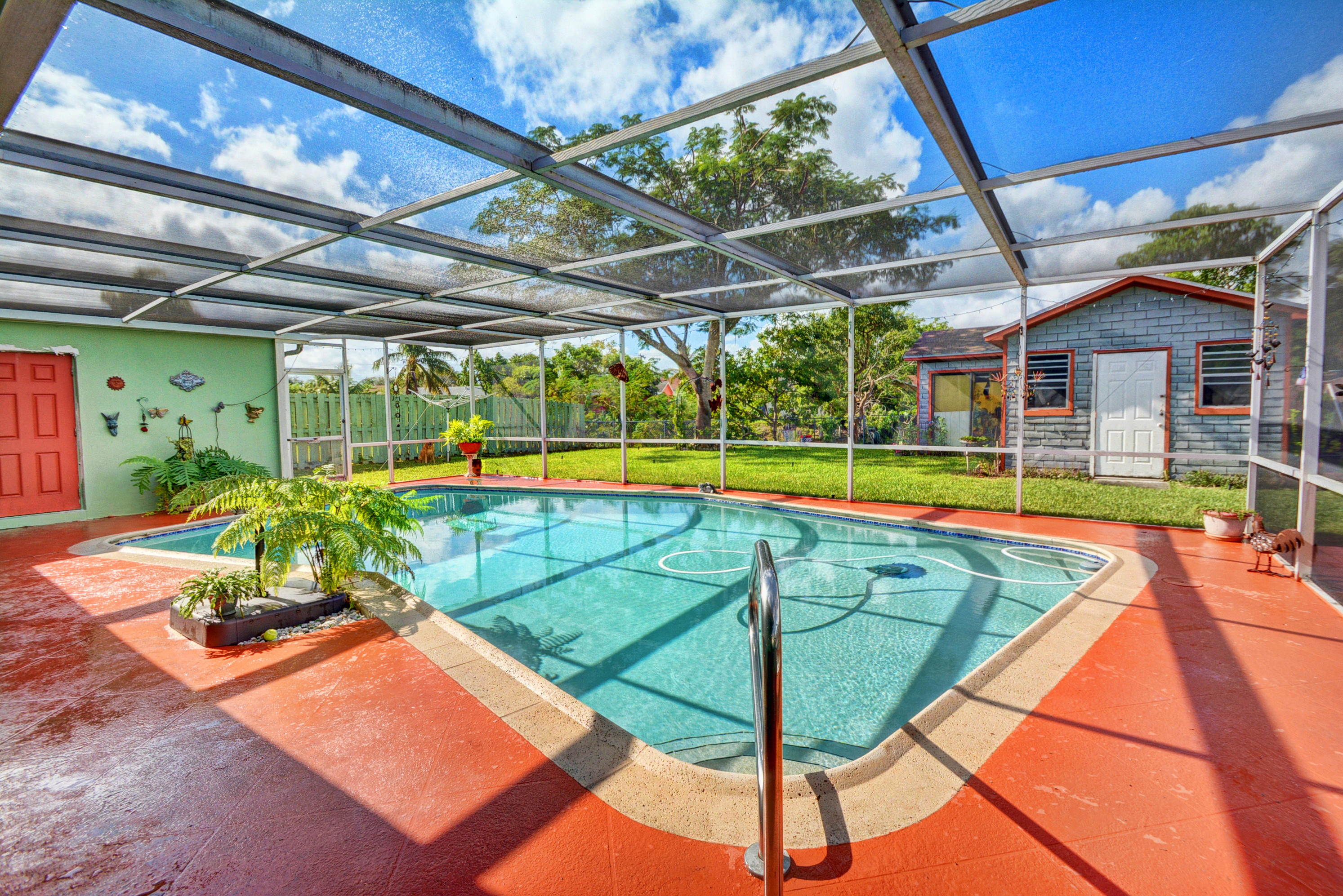 Hidden tropical paradise awakes! Fabulously updated home on the water & offers total privacy w/almost quarter acre of lush landscaping & screened in pool that's fenced in! Remolded kitchen w/granite counter tops/glass tile backsplash/wood cabinets/newer stainless-steel appliances plus granite built in table top eat in kitchen. Two sets of French doors lead from the dining room & kitchen to the screened in pool & lets in tons of sunlight & beautiful views. Two large bedrooms plus 3 full bathrooms that are all updated/1 has large tub w/Jacuzzi jets! Plus 1 car garage with A/C vents & can be converted to 3rd bedroom plus separate utility building/workshop that's around 400 SF/that can be many things/Can be converted to mother in law suite. Also 2nd workshop w/ additional 278 SF.