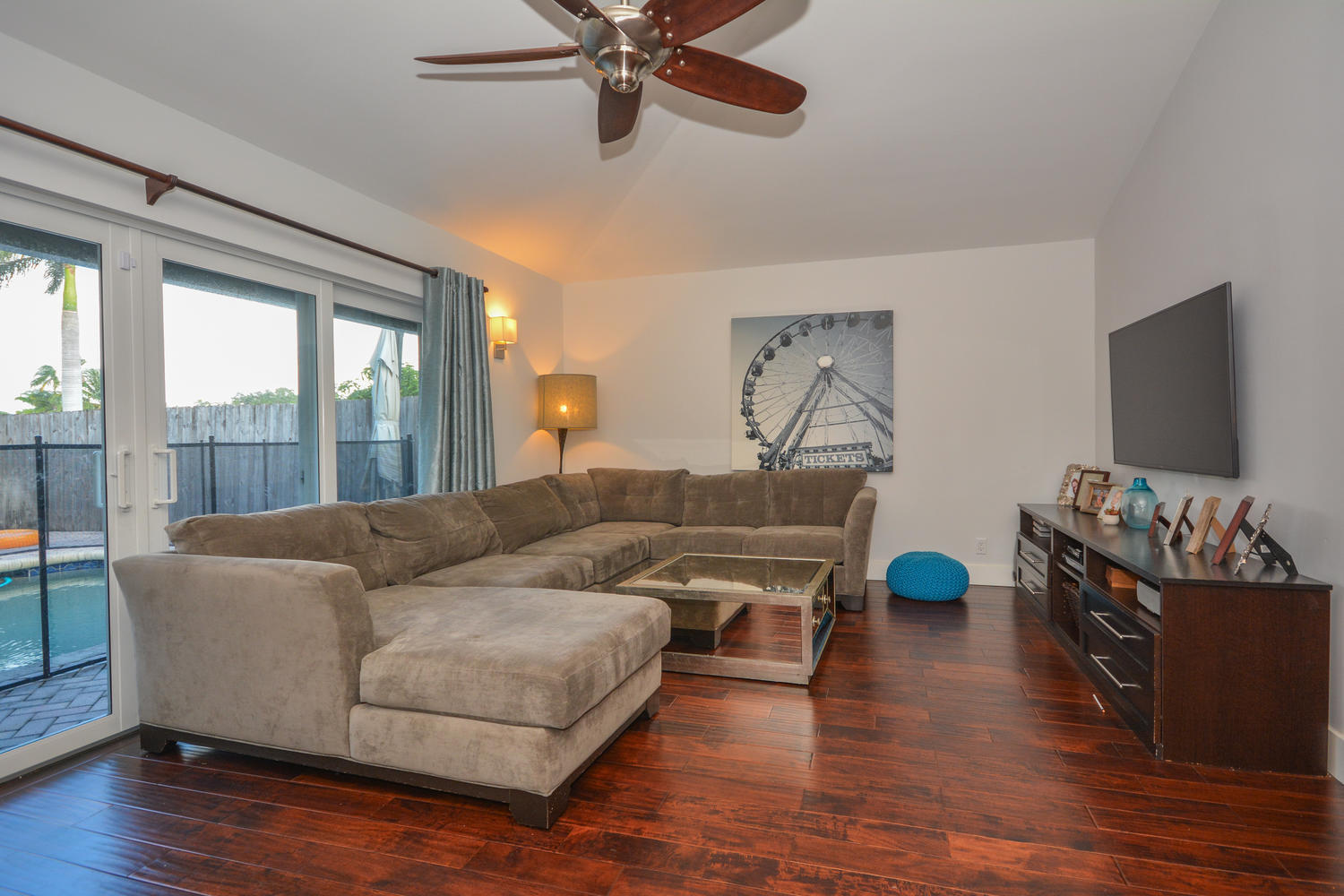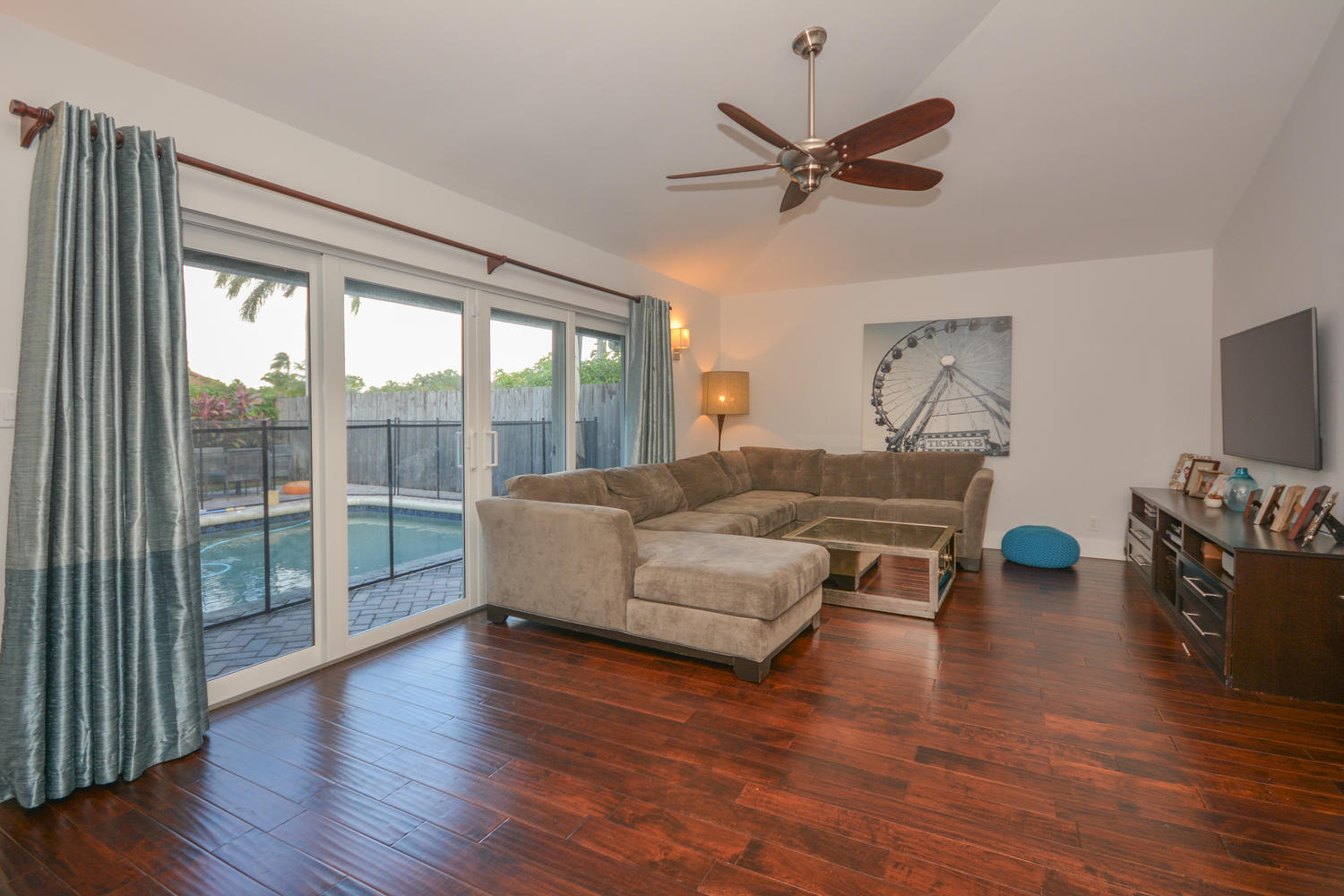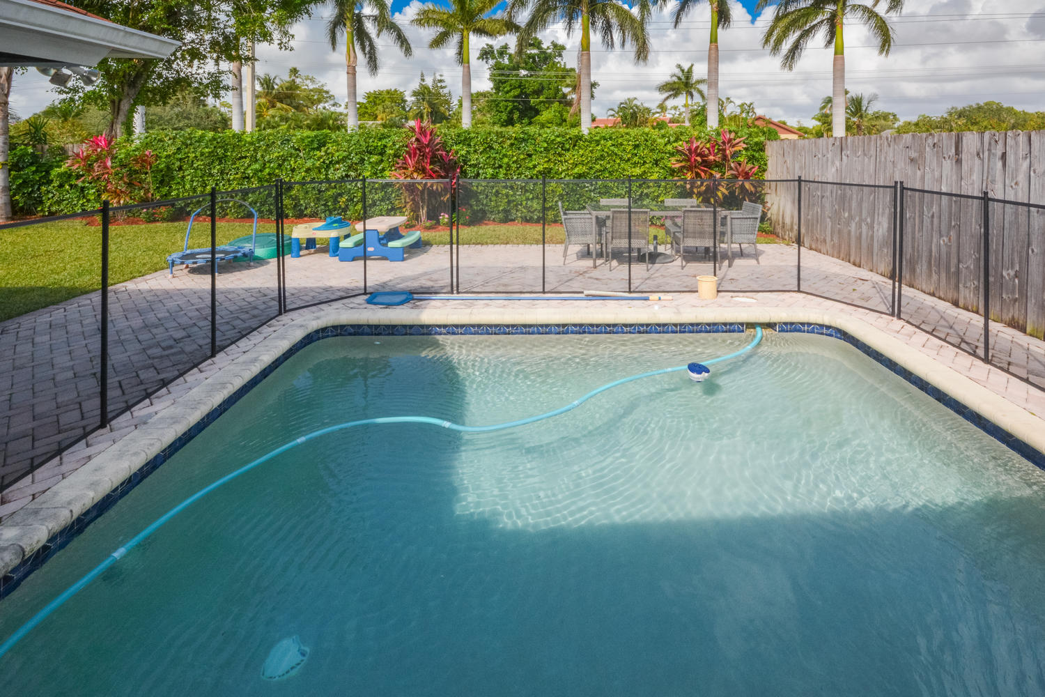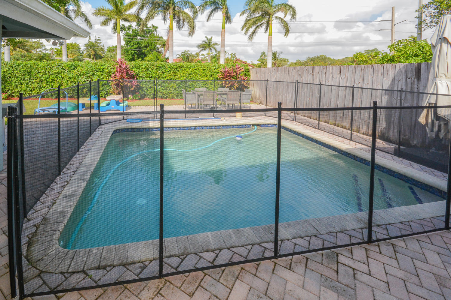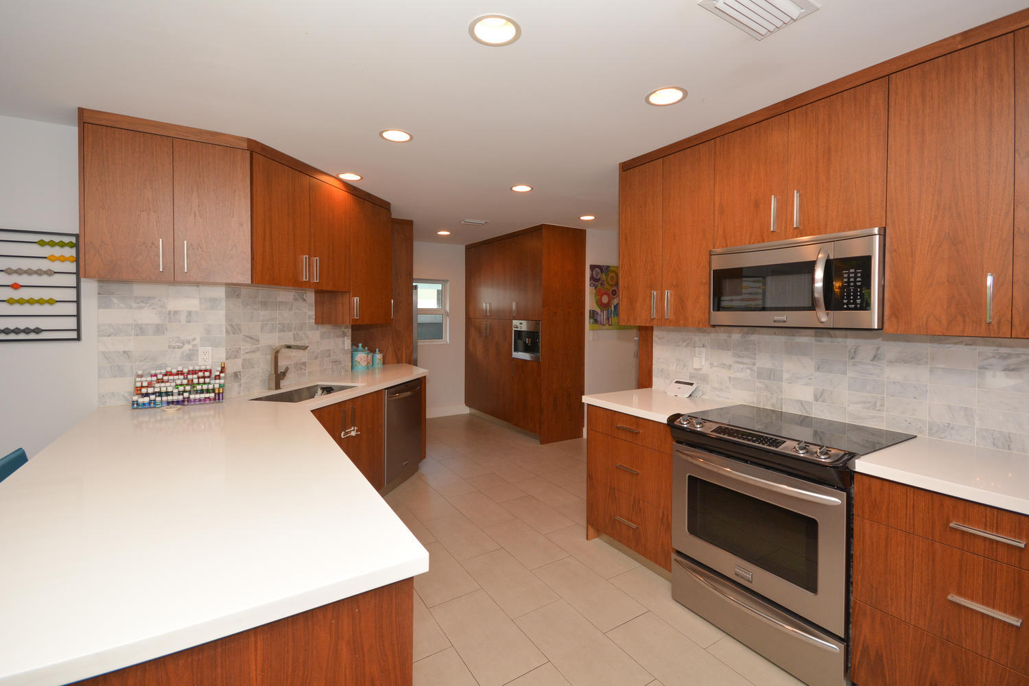 Amazing home completely renovated with high-end finishings. Large open kitchen with Quartz counters, walnut cabinetry, stainless appliances and Miele espresso machine. Beautiful wood floors throughout living areas. Master suite features two closets with built-ins, and unbelievable master bath with quartzite countertops and large open shower. Laundry room off kitchen with newer washer and dryer and walnut cabinets. Hurricane windows and doors throughout home. A/C replaced in 2015. High-end light fixtures staying with the home. Fenced in backyard with pool and lawn perfect for playset. Upgraded landscaping. Great neighborhood with playground right across the street. Don't miss this move-in ready home!