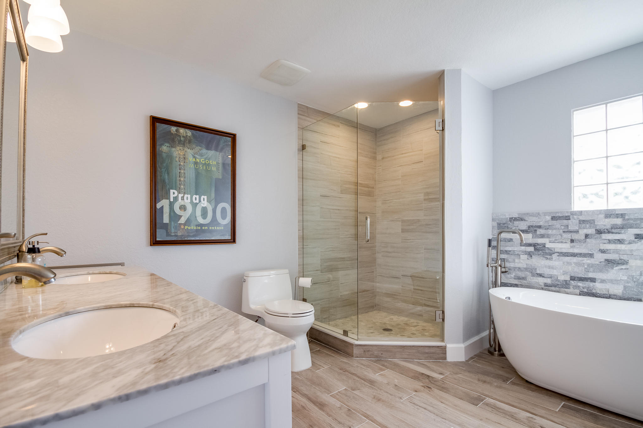 Don't miss out on this stunning 5 bedroom, 4 bathroom + den pool home on a private lot backing up to the Boca Woods golf course! This impressive home features a renovated, bright and open kitchen with stainless steel appliances, granite countertops and additional built in desk and storage. The large second story master bedroom overlooks the private backyard with pool and spa and features a jaw-dropping spa-like master bath complete with huge soaker tub. The entire home features neutral tile or composite wood throughout, central-vaccum, granite stairs, tall ceilings, neutral wall colors, huge windows and recessed lighting which all make this home exceptionally open and bright. Beautiful french doors lead to the first floor office off of the family room and all other bedrooms upstairs.