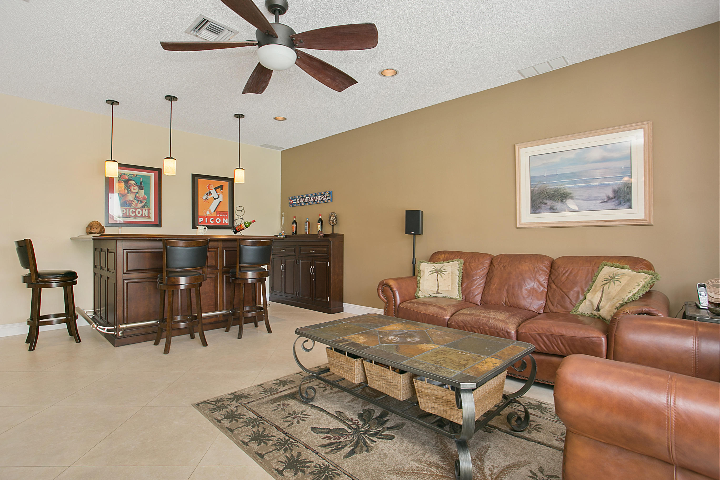 SPECTACULAR MAR A LAGO MODEL WITH BEAUTIFUL UPGRADES. MRS. CLEAN LIVES HERE! OUTSTANDING HOME FOR ENTERTAINING ON THE WATER WITH YOUR SUMMER KITCHEN, POOL AND SPILL-OVER SPA. GOURMET KITCHEN WITH 42'' CABINETS, GRANITE COUNTERTOPS AND BACKSPLASH. UPGRADED STAINLESS STEEL APPLIANCES. BEAUTIFUL 24'' TILE ON THE DIAGONAL THROUGHOUT LIVING AREAS, ENGINEERED HARDWOOD FLOORING IN BEDROOMS. SOARING CEILNGS! SPACIOUS MASTER SUITE HAS A BALCONY OVERLOOKING THE LAKE & POOL. HIS & HERS CLOSETS. UPDATED MASTER BATH WITH GRANITE COUNTERS, DOUBLE VANITY, SEPARATE FRAMELESS SHOWER & ROMAN TUB. LARGE GUEST BEDROOMS! HUGE FAMILY ROOM WITH REMOVABLE BAR OPEN TO EUROTILED PATIO. POOL RESURFACED. ONE BEDROOM AND FULL BATH DOWNSTAIRS. RELAX AND ENJOY A COOL DRINK ON YOUR PATIO WITH COOL BREEZES OF THE LAKE.