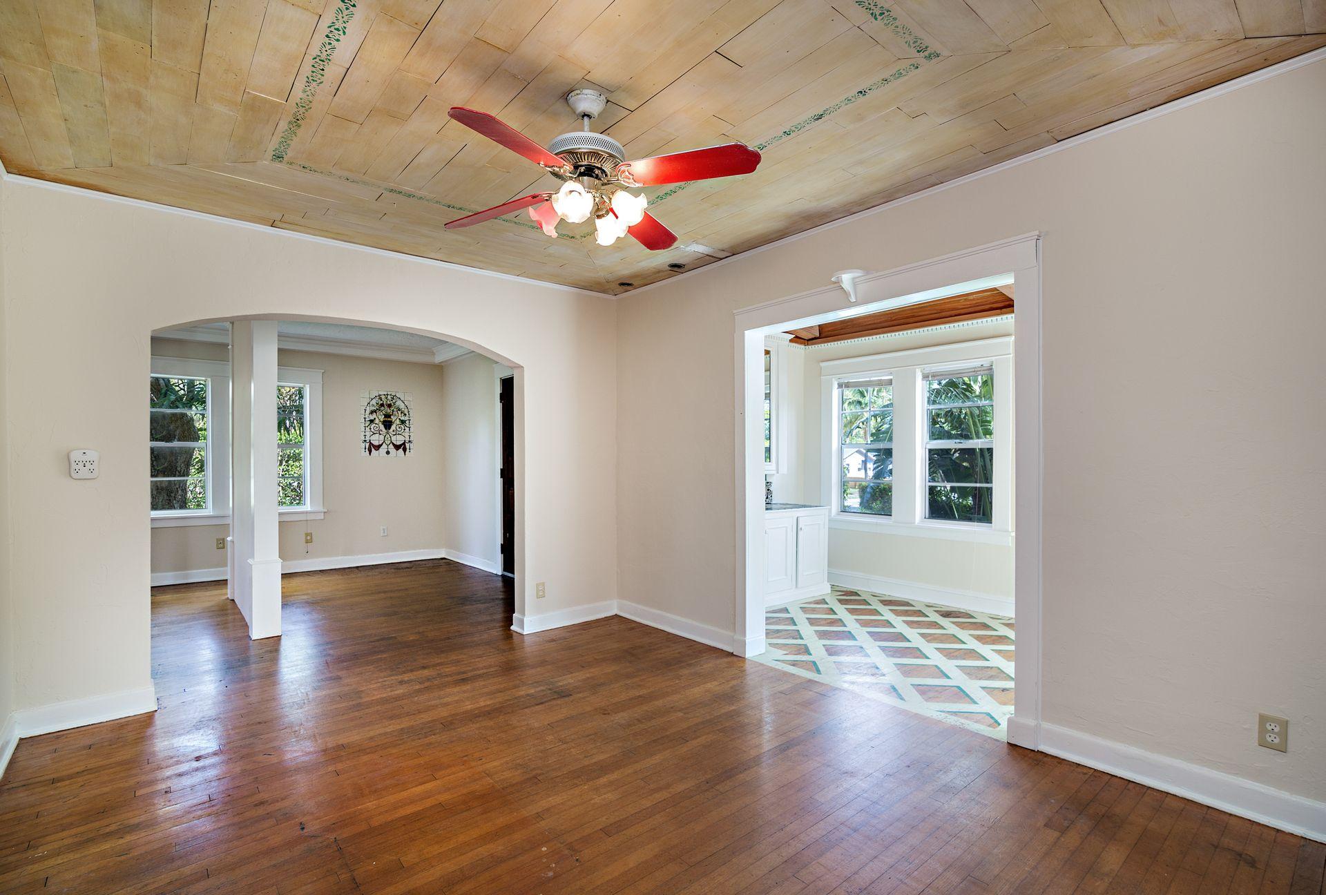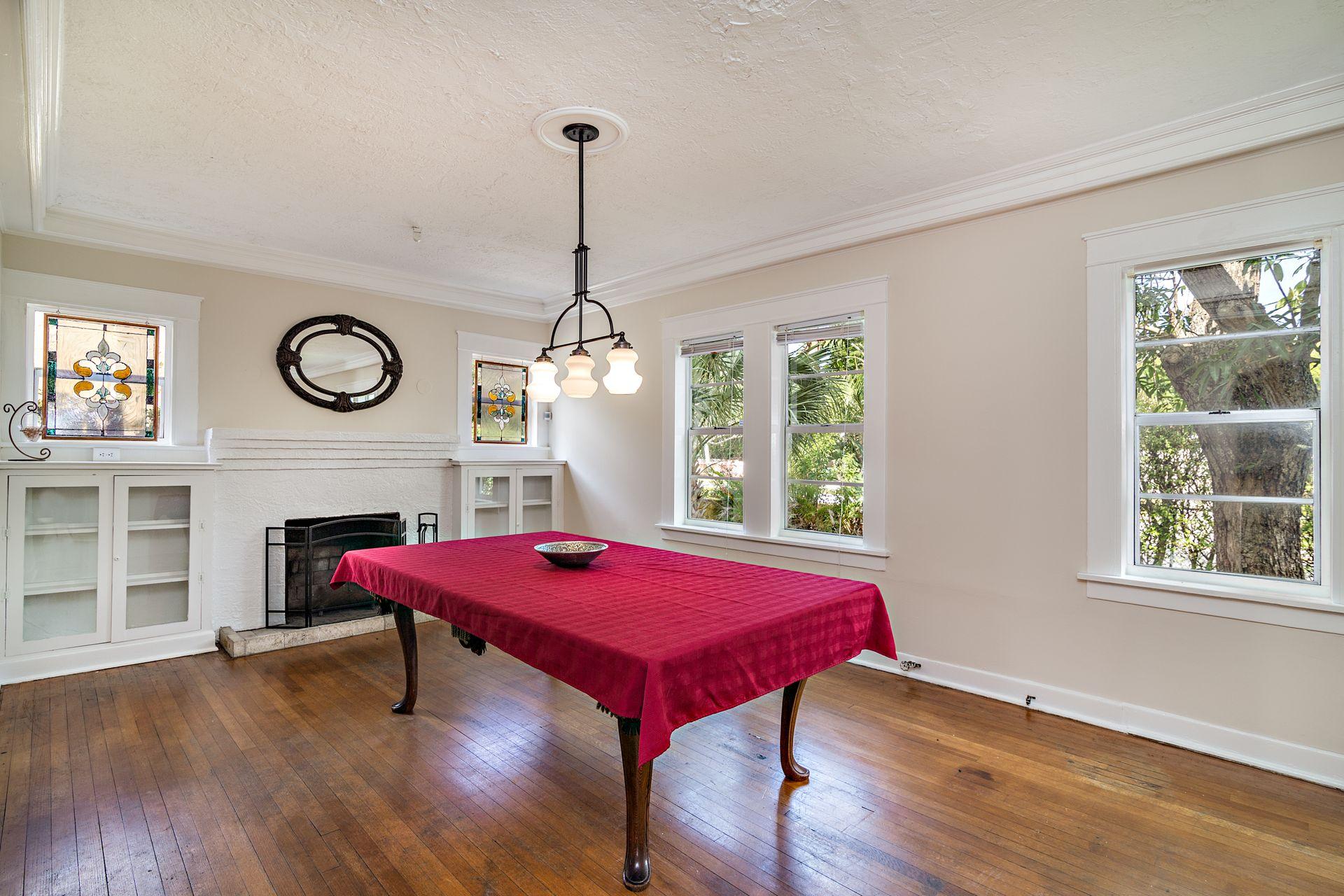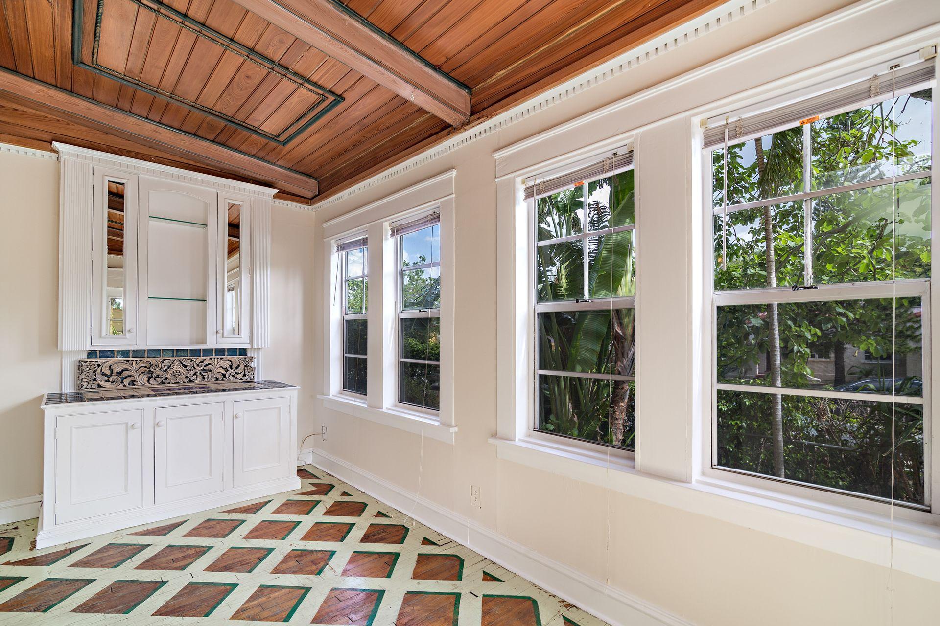 Spacious Flamingo Park Beauty! This outstanding 4 bedroom 3 bath residence is fresh and ready for your enjoyment and your touches. Large room sizes, high ceilings, wonderful floor plan add to the great yard, huge 2 car garage and superior location close to downtown & City Place! Surrounded by tall hedges, palm tress and mature landscaping, this private enclave has a gated entry leading to a covered portico and beautiful front door. The super sized living room has sparkling wood floors, fireplace and leads to the dining room, kitchen & vibrant sun porch. The kitchen has gas range, and ss appliances. Large dining room is enhanced by architecturally beautiful windows. 1 full bath downstairs, while the four bedrooms and two baths are upstairs with lovely landing as well as the laundry room.