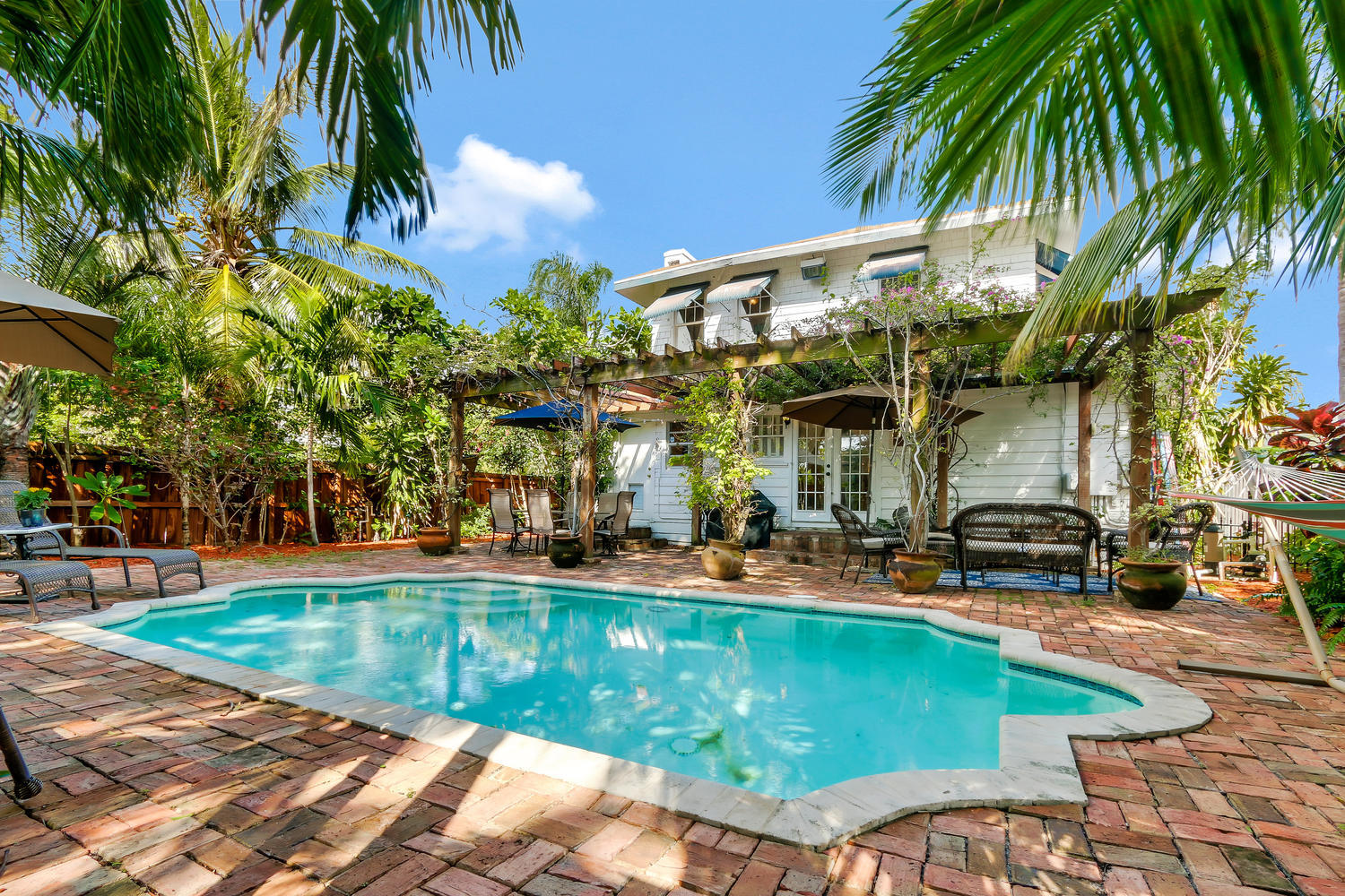 Warm, bright and quintessentially Old Historic Northwood 1928 home is settled on an expansive corner lot with fabulous pool and outdoor entertaining space surrounded by an oversized trellis and private hedging. 3 bedrooms, 2 renovated bathrooms, large Florida room, original hardwood floors and fireplace and stylish kitchen. This 1928 charmer mixed with modern flair shares the property with a 1bed/1bath cottage perfect for a Mother in law or tenant. Stunning views from the French Doors along the living roomand bright natural light all throughout.