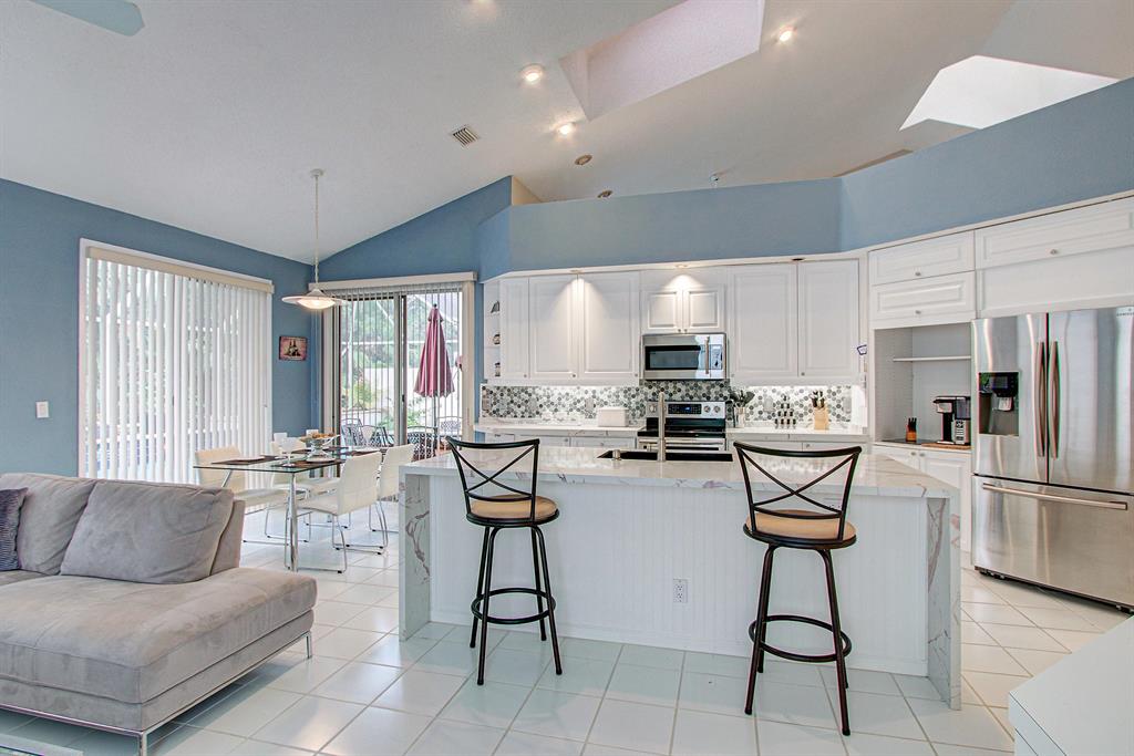 Due to financing issues this lovely and spacious one-story home is back on the market! Entertain in the remodeled Chef's kitchen light and bright with vaulted ceiling and skylights. New top of the line appliances and large marble counter top perfect for food prep or entertaining and open to family room and breakfast nook. Sliding doors lead to a resort style backyard with large pool, Tiki Bar, and covered patio completely private - no rear neighbors. Interior newly painted with newer carpeting in bedrooms. Roof 2008, whole house generator, new A/C, accordion storm shutters. Breakers West is minutes from the turnpike and fabulous shopping and restaurants nearby. Mins to the beach! Non mandatory memberships are available at Breakers West Country Club and Mayacoo Lakes. Mins from PBI.