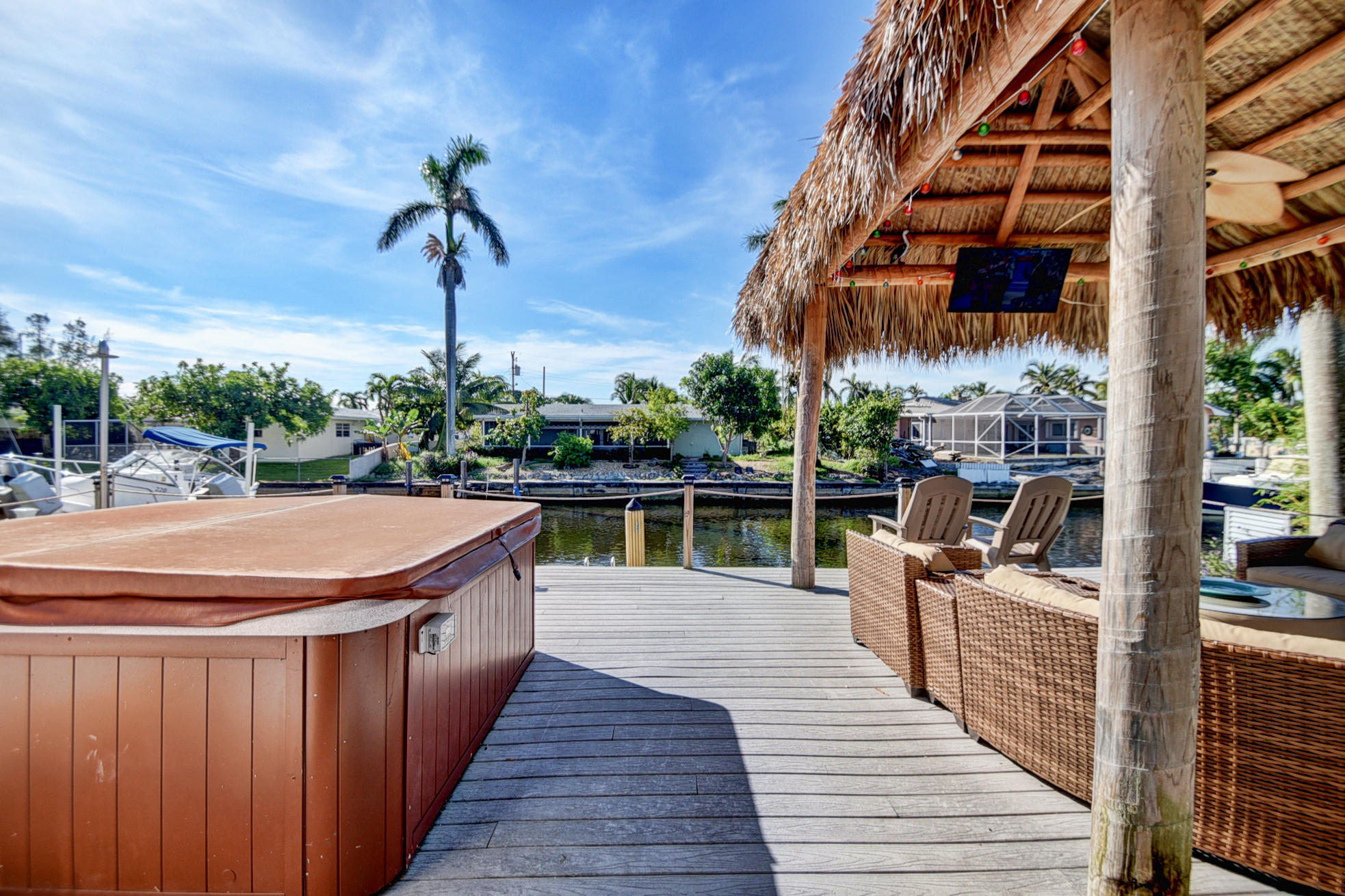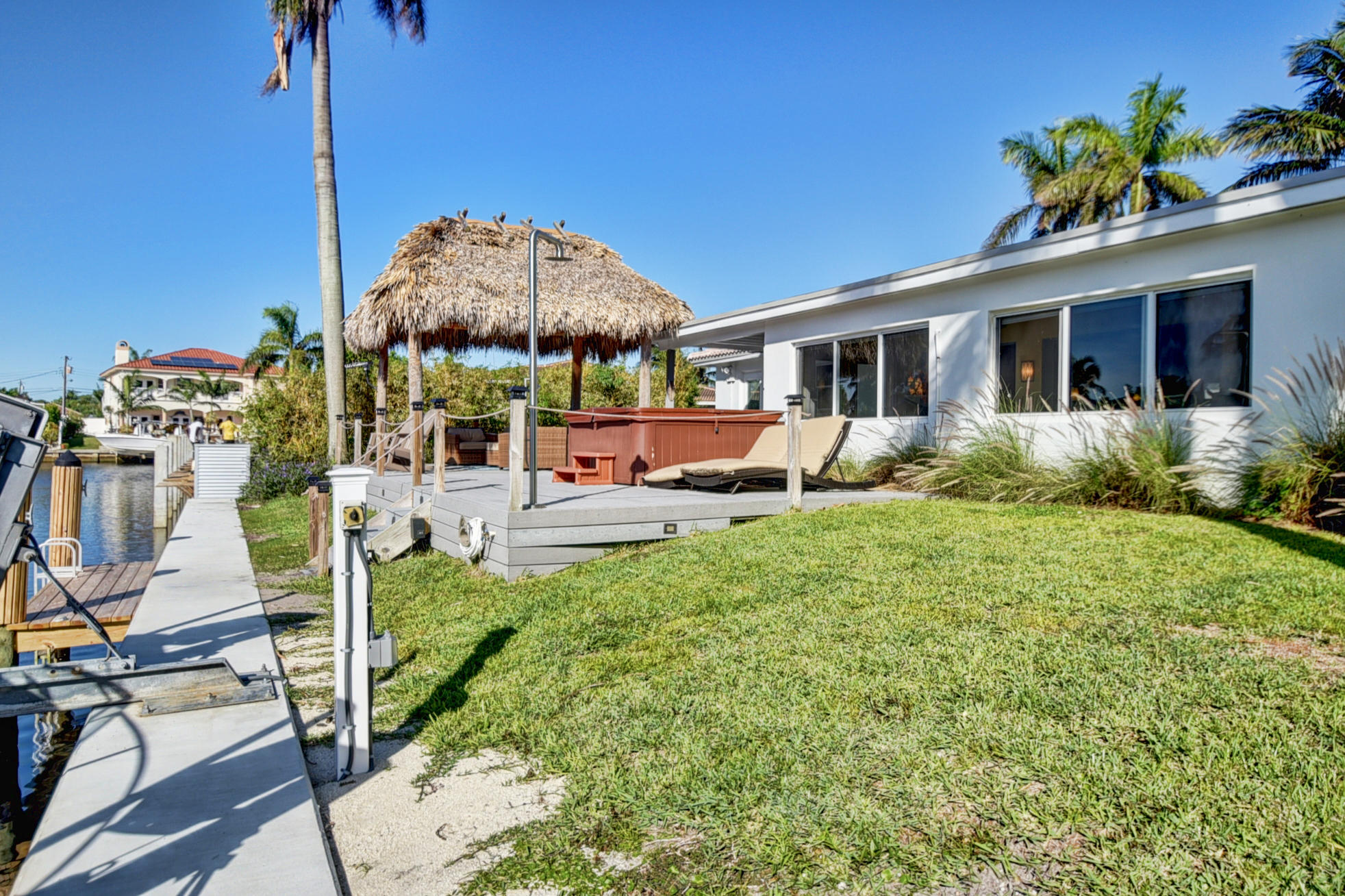 This Beautifully Redone Ocean Access home features a wide open floorplan, great kitchen with cherry cabinets, granite counters and stainless appliances, great baths, tiki hut, hot tub and for the boater..a new batter piled seawall, Boat lift and great access to the inlet.