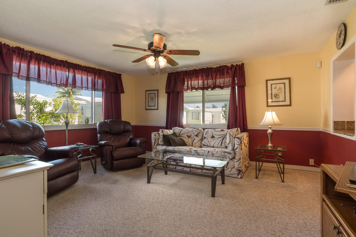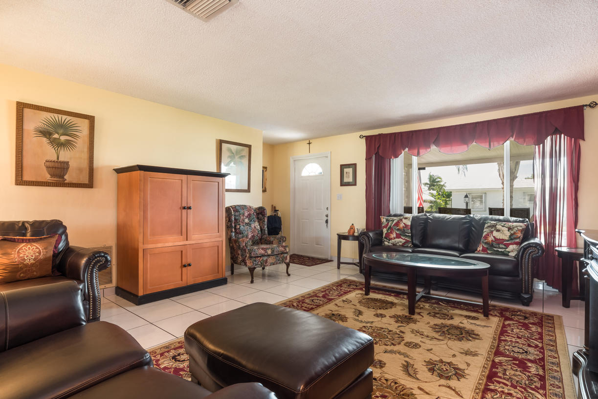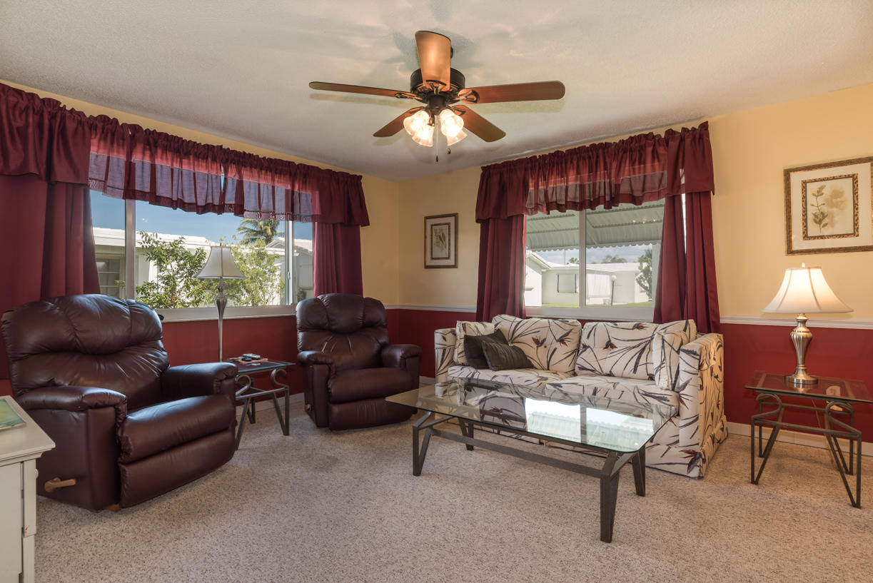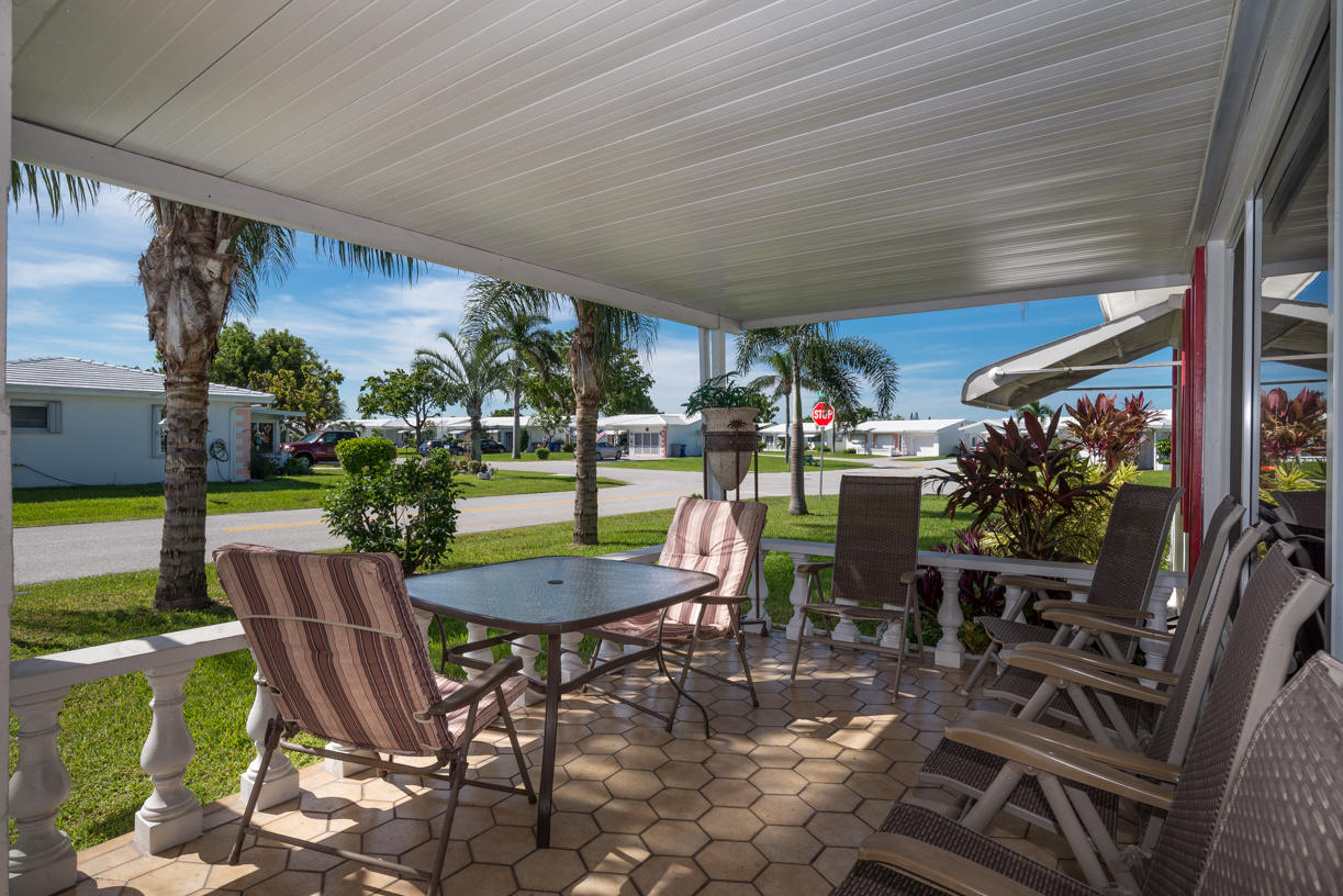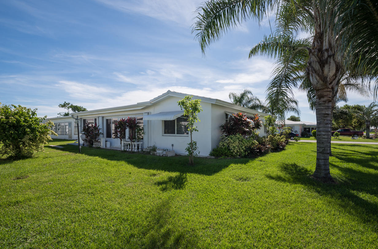 Stunning home in lovely, friendly Leisureville! Free golf for owners on a 9 hole executive golf course. HOA fee includes lawn care, water, sewer, outside house painting, roof cleaning, all community amenities. Includes 2 club houses, 2 heated pools & all activities. Free curtesy bus also runs daily.Very large 3286 sq ft. corner lot has wrap around landscaping. NO LAND LEASE! New roof in 2014. Entertaining Front Porch. Double wide paved driveway. Hurricane rated garage door & opener, Beautiful 24'' Tile Flooring. Pets OK. Since January 2015 the following have been purchased new: air conditioner/air handler, washer/dryer, stove, refrigerator, disposal, water heater and ADT security system, hurricane impact glass windows. Don't miss this great buy! Drapes/curtains not included
