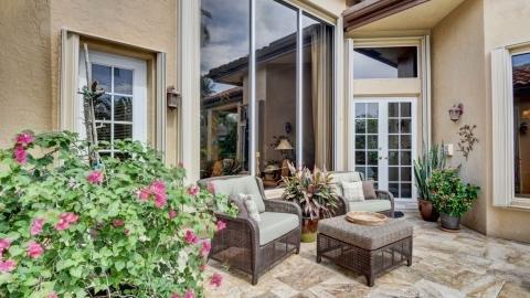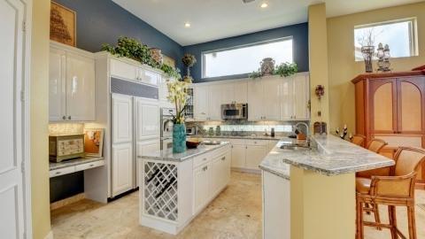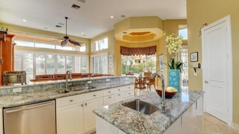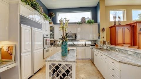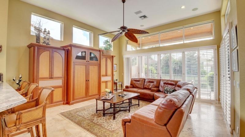 This absolutely fabulous 1 story 4 brms, 4 bth home is located on one of the finest lake lots in Seasons. This open and spacious home is one of a kind/custom built by Audubon Homes. The gourmet chef's white kitchen has a center island and granite counter tops. The dining area and family room are overlooking the lushly landscaped salt water heated pool and spa.Full formal dining room with tray ceilings and Venetian plaster paint. Large master suite with fabulousviews of the pool and lake. Split bedroom plan; 2 bedrooms on one side of the house has own A/C thermostat & WIFI. Pocket door closes these rooms off if needed. Accordion shutters throughout. Newer roof. Newer hot water heater, summer kitchen with granite counter tops and marble pavers. Newer central vac, newer washer/dryer.