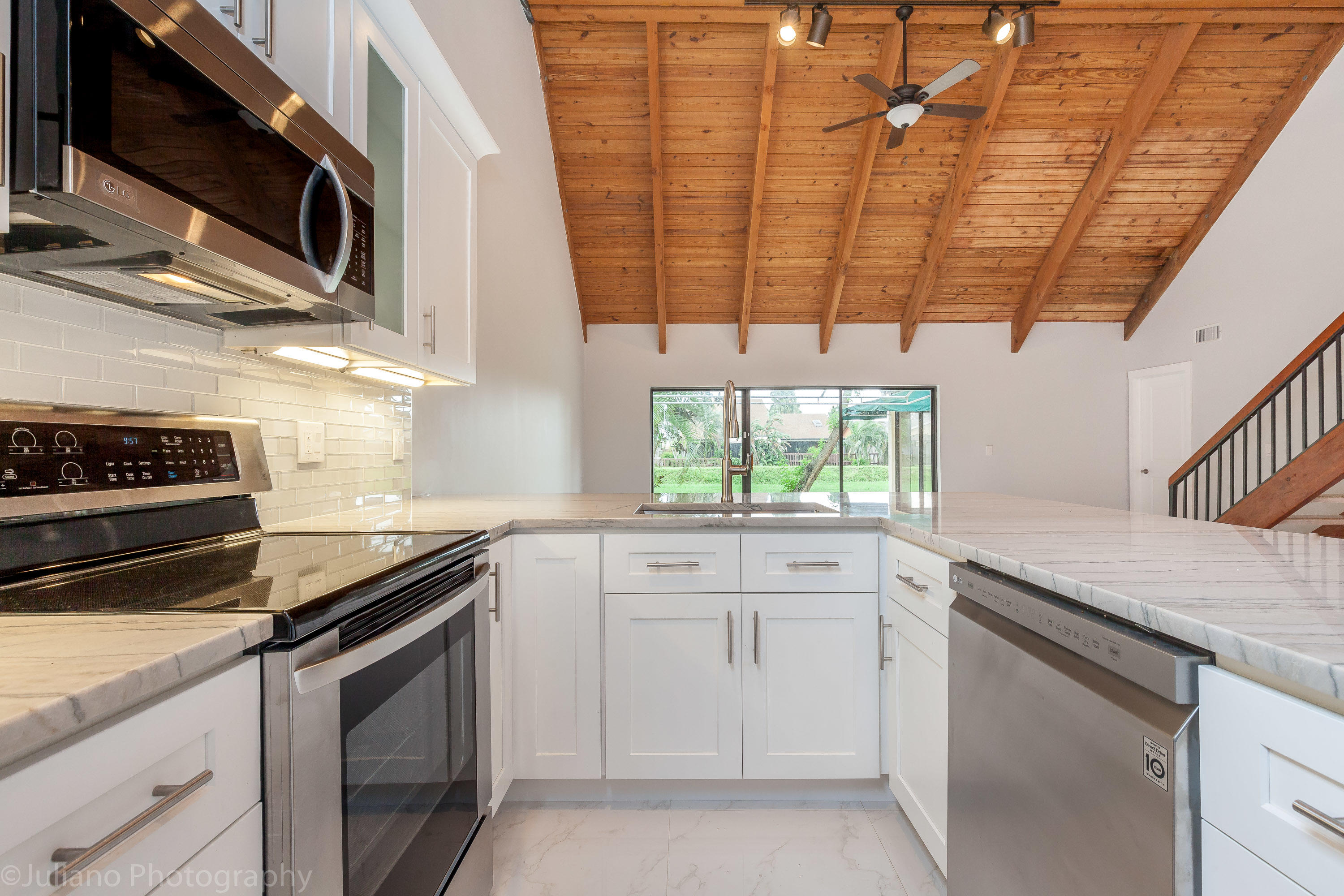 Total 2017 restoration in the cozy community of L'Ambiance. Sleek, modern, clean design. Vaulted ceiling, down tile floor, birch plank floors stairs. Kitchen has gorgeous quartzite, new SS applicances, soft-close drawers and solid wood cabinets. New Air and water heater. Roof replacement 2006 and additional update in 2017. Spacious master bedroom with doors open to the canal. Large walk-in closet and garage with storage above. Master bath has new walk in frameless shower liighting and separate bath .2nd bath has brand new vanity, tile, and combo/shower bath. Washer and dryer included! Brand new water heater and Rheem airconditioner. Pool, tennis courts. Barrel tile roof. Best schools in Boca. Town Center, shopping, Mizner Park, downtown Boca and Owner/realtor. Call/text Listing Agent