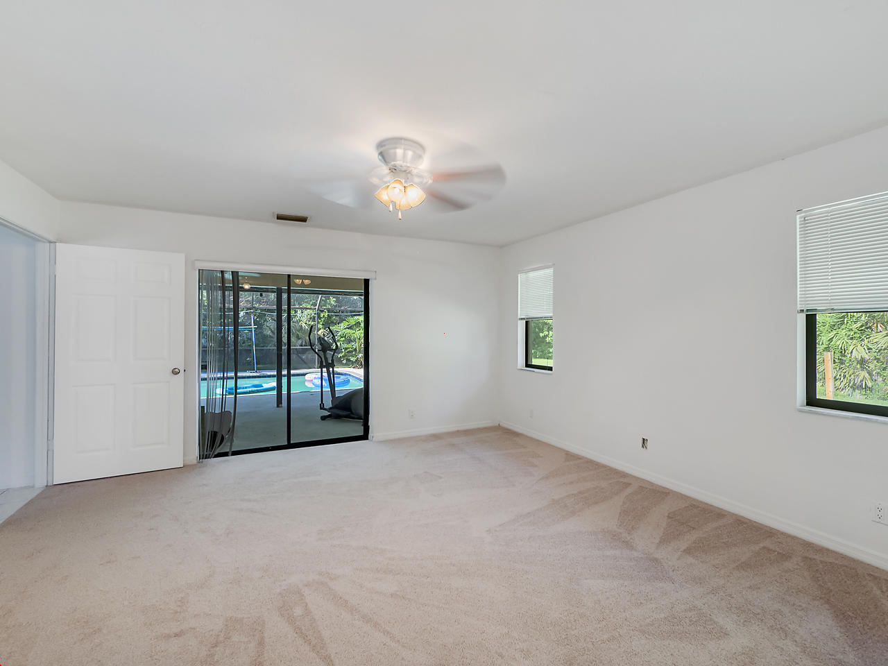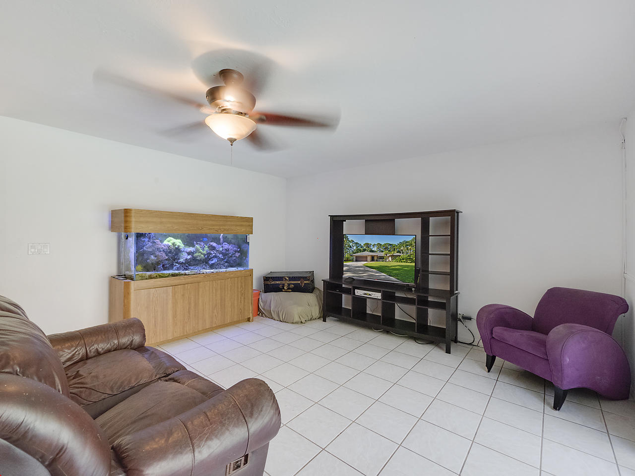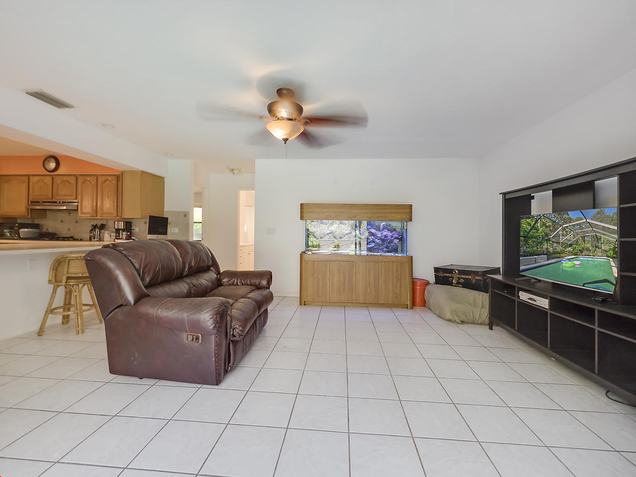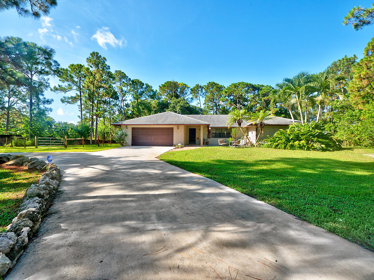 3 bedroom/ 2 bath home with 2 car garage in the Acreage! Large kitchen and living/dining room with faux fireplace. Freshly painted interior, 2017 carpets, 2017 gas dryer, 2017 water efficient toilet in the master bedroom, 2017 drain field and septic plumbing, and a separate well for the sprinkler system, roof 7 years old! Sliding glass doors throughout the home open to a large screened in back patio complete with a bar and pool with solar heating panels. This home sits on 1.15 acres and is fenced! Hurricane canvas. Stable and tack room with a new metal roof on property!