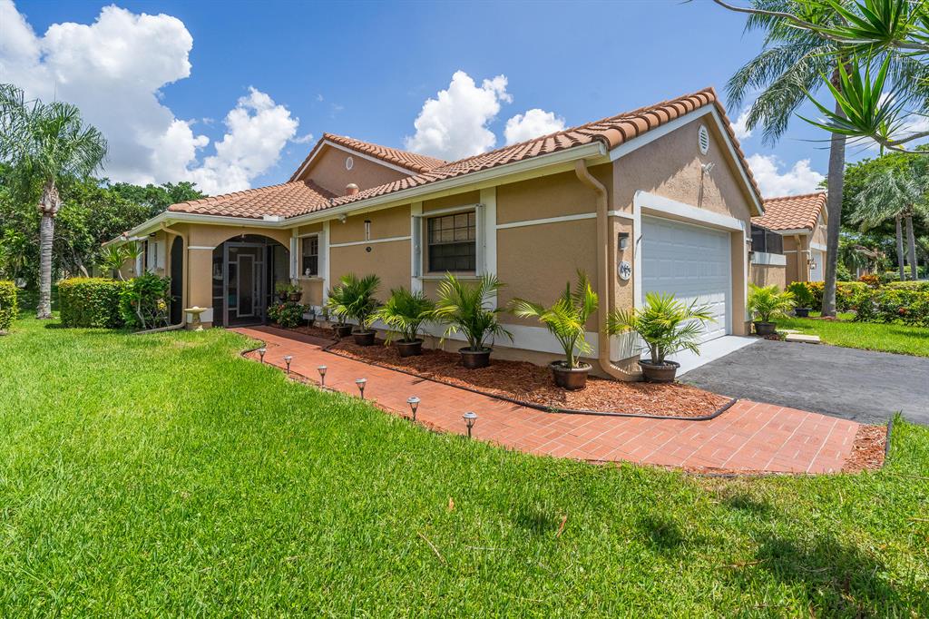 This spacious 2/2 villa corner villa is ready to be your next home. It features an updated kitchen with granite countertops , large master bedroom. Custom cabinets and vanities with lighting in master bathroom. Finished patio, newer garage door, hot water tank and air conditioner Adjacent to the second bedroom you will find a screened enclosed courtyard and improvements . No worries, Complete hurricane protection and so much more! Ladypalm features an active clubhouse, pool tennis,BBQ and spa. Pets are welcome. Make Ladypalm your new home!!!