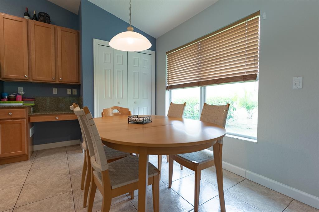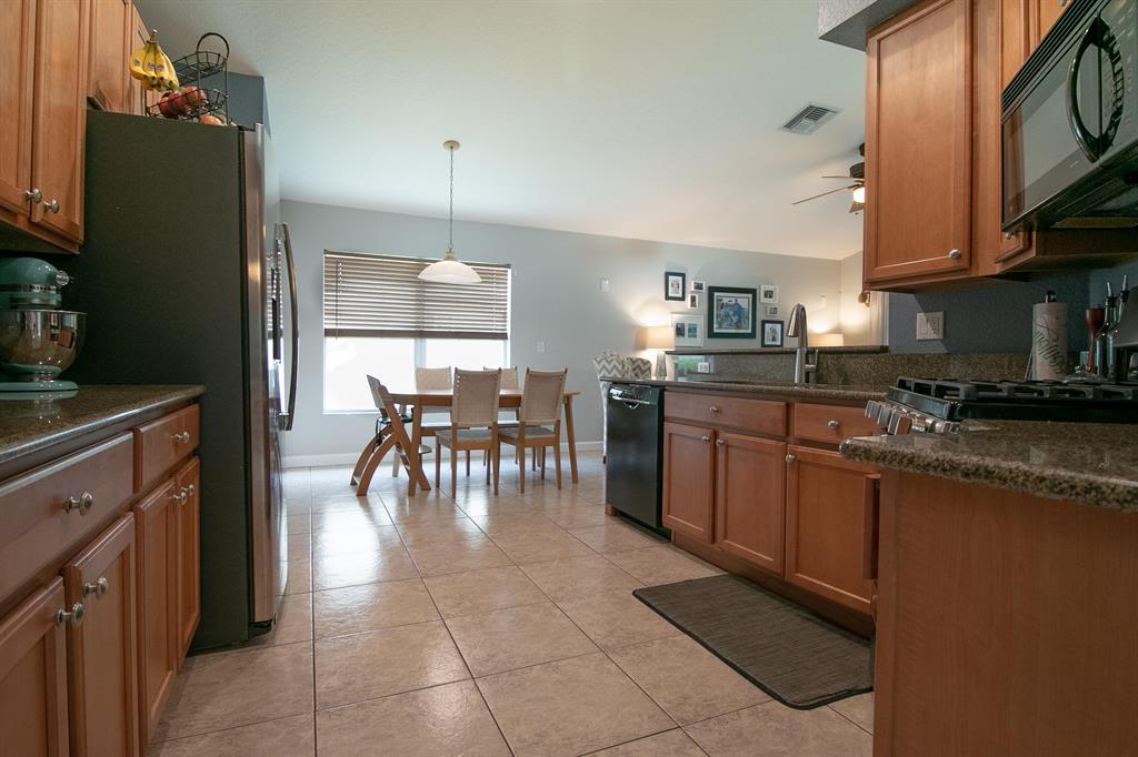 Bright and open floorplan. 3 bedrooms, 2 bath, 2 car garage. Spacious kitchen with granite counters, new gas range, refrigerator. Breakfast nook as well as formal dining area. Formal living room and family room. Gas powered dryer. Screened patio overlooks private backyard that backs to a nature preserve. Complete hurricane shutters. Commercial grade carpeting in bedrooms. Wall to wall carpet tiles in 2 of the bedrooms can be removed, washed and even bleached!