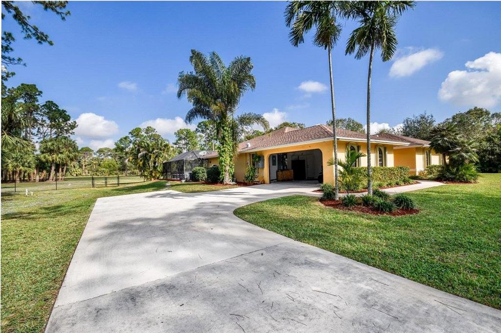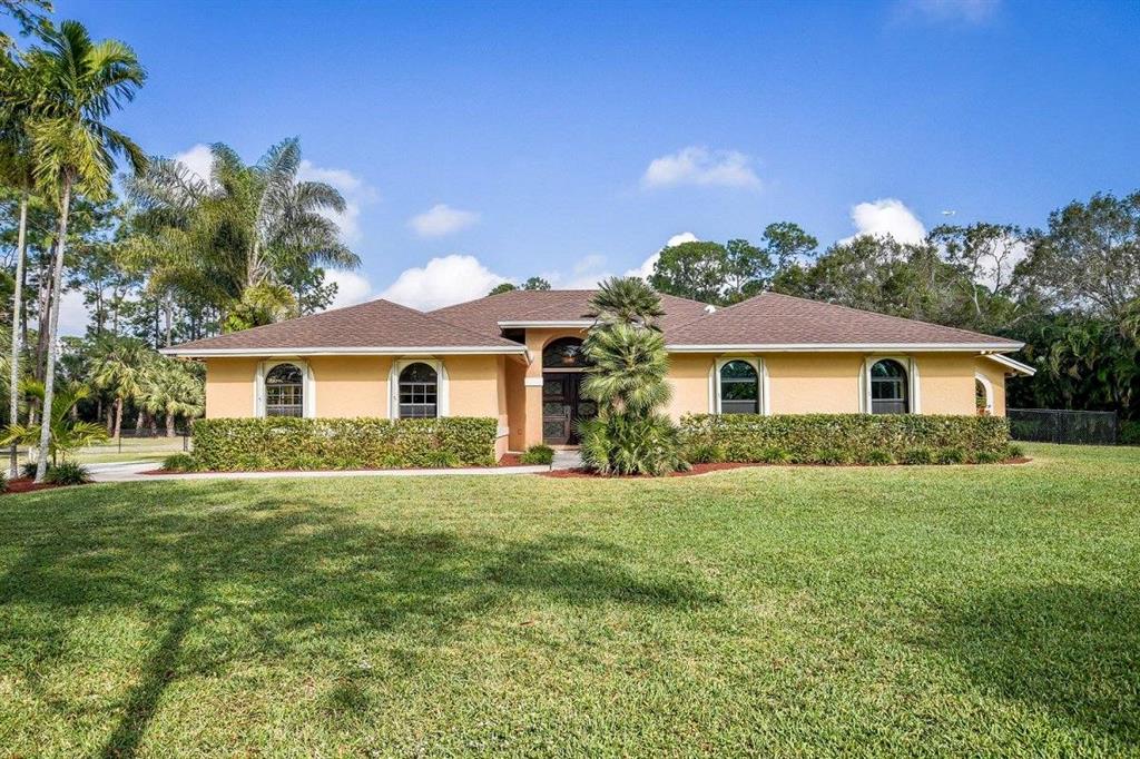 n Palm Beach Farms, this stunning estate home is on 3+ dry acres and close to everything. Easy access to Turnpike, I-95 and PBI airport, and only 9 miles from CityPlace. On a corner lot ideal for equestrian and/or agricultural use. Mediterranean architecture with high ceilings throughout. With 4 bedrooms 2 of which are Master Suites plus a den/office & 3 full baths. The gorgeous kitchen with wood cabinets, granite counters, stainless steel appliances and plenty of storage space. Completely fenced and gated with room for equestrian facilities with 2 entrances.