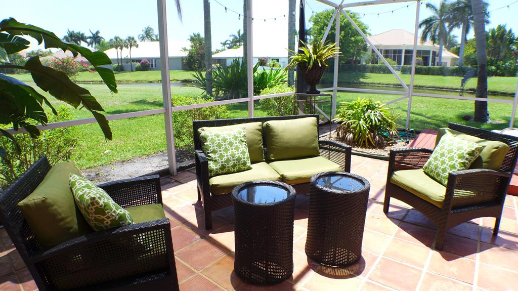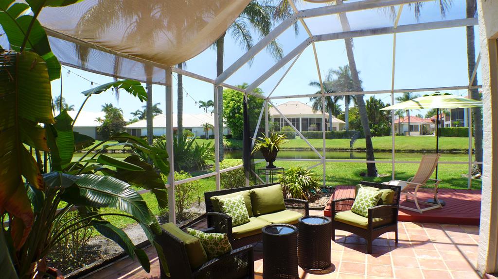 Lovely 3 Bedroom waterfront home, stunning kitchen with center island, granite counters and and designer cabinets. Roof has been replaced. Bathrooms with granite counters. Huge master bedroom and gigantic master close. Exquisite rounded walls, beautiful patio over lake. Third Bed/Den. Manned security gated, 8 har-tru tennis courts, resort styled pool, indoor basket & racquet ball courts, state-of-the-art fitness center with sauna, dance studio, yoga classes and ping pong. Playground and full club house for entertaining or just playing bridge. No hurricane shutters, windows original. NO Equity/NO Dues. HOA fee includes LAWN SERVICE front & back, INTERNET & CABLE w HBO, paint, mulch. All A-Rated Schools. Welcome to paradise! NO Hurricane protection on windows or doors.