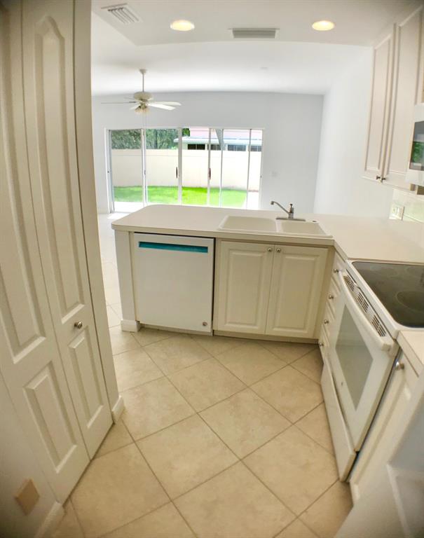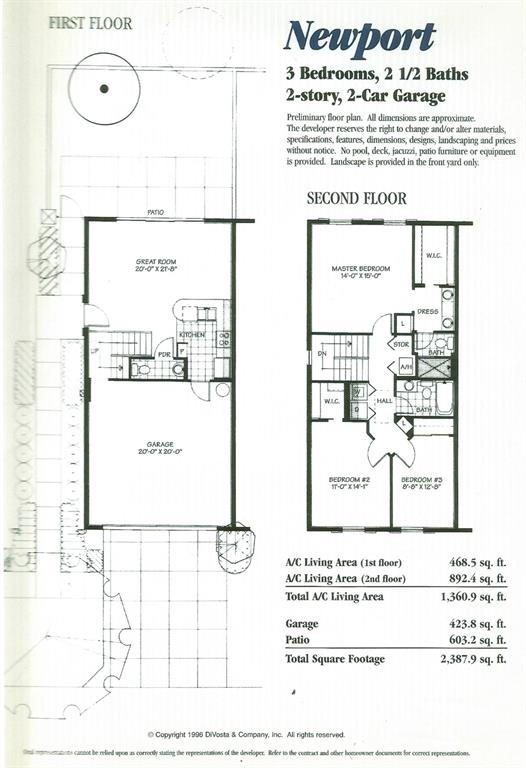 Spacious courtyard style townhouse ''Newport'' model is in great condition and ready for immediate occupancy!Freshly painted driveway, garage, ground floor and second floor, including ceilings and trim. Brand new Refrigerator, dishwasher, dryer and disposal. Newer washing machine, stove and microwave.Ceramic tile throughout ground floor. Second floor has new wood flooring, including the stairwell.Large glass sliding doors overlook patio with brand new sod, brick pavers and privacy wall in back yard. Brand new light fixture near front door.Opportunity to live in this 5 star style resort with 24 hour manned gate, over 600 acres of lakes, walkways, bridges and parks which lead to The Town Center. Amenities include a cafe, serving breakfast, lunch and dinner, 3 heated swimming pool