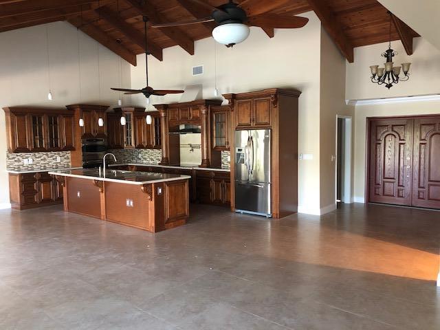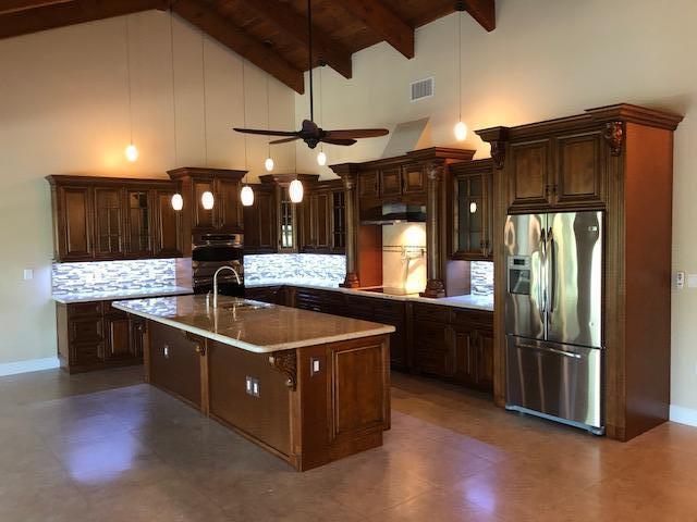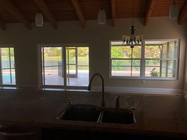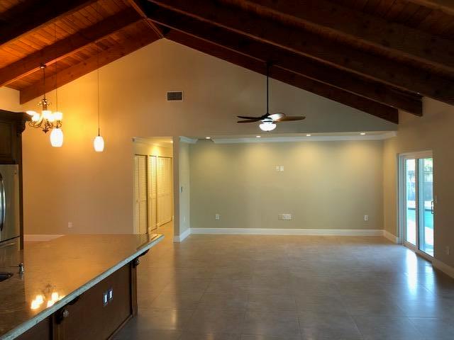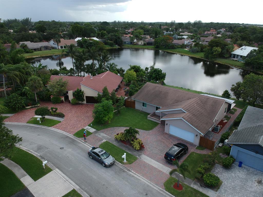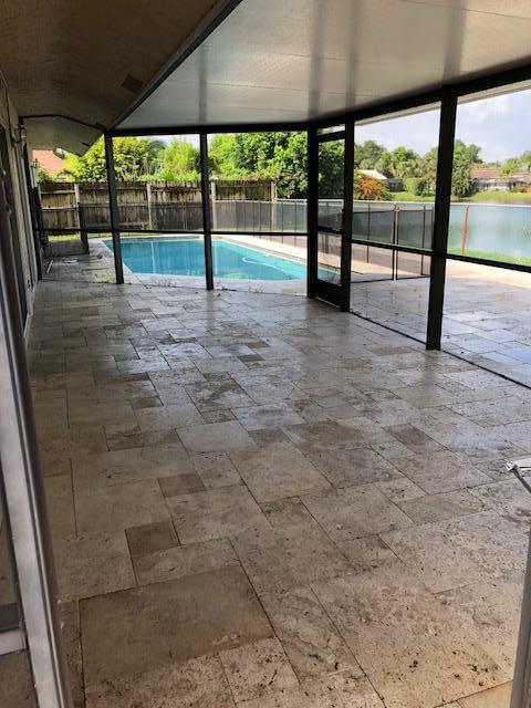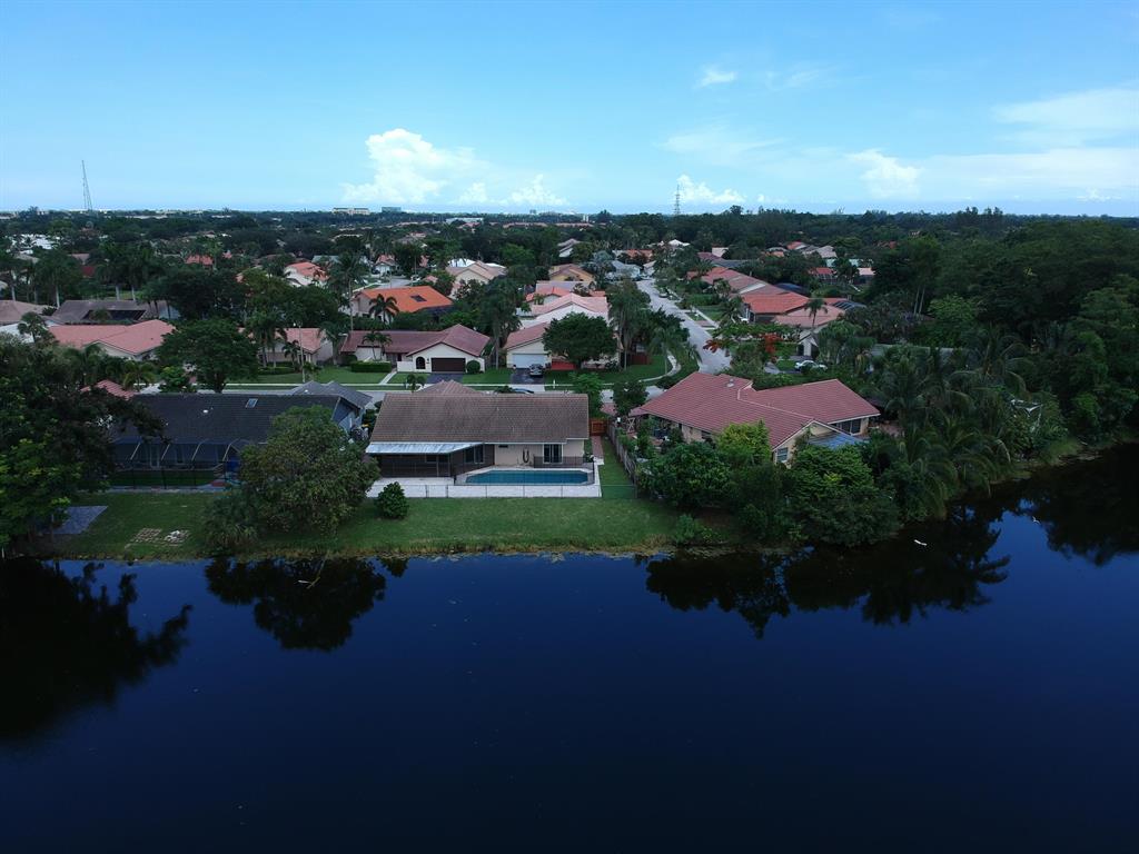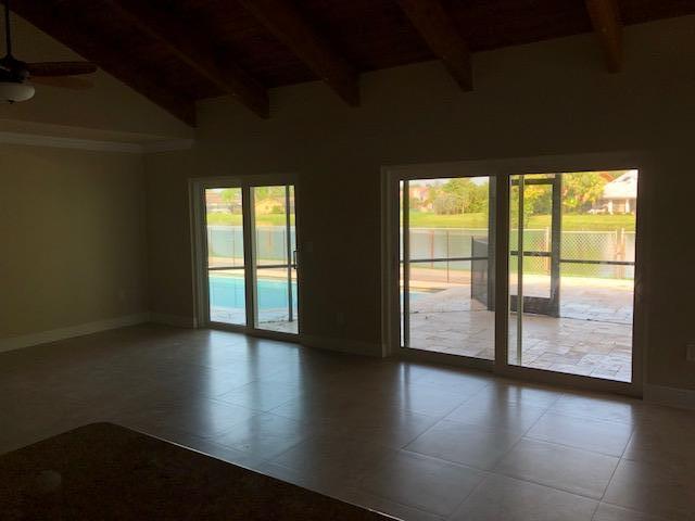 Open floor plan, beautifully fully remodeled, in a quiet, family-friendly community with a guard gate entrance, this property is on a large lake front lot with relaxing and fetching view. As you enter the home, the soaring cathedral ceilings with exposed beams and long lake views are breathtaking. The current owners invested more than $200,000 in remodeling to make this property their home. All doors and windows are Hurricane rated impact resistant openings allowing for maximum insurance discounts. The roof was replaced seven years ago and upgraded for current hurricane codes, including a secondary water barrier (SWB) for additional insurance discounts. Porcelain tiles are installed for flooring throughout the house except master bedroom (wood flooring) and bathrooms (marble floori