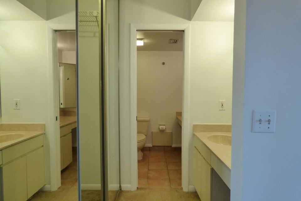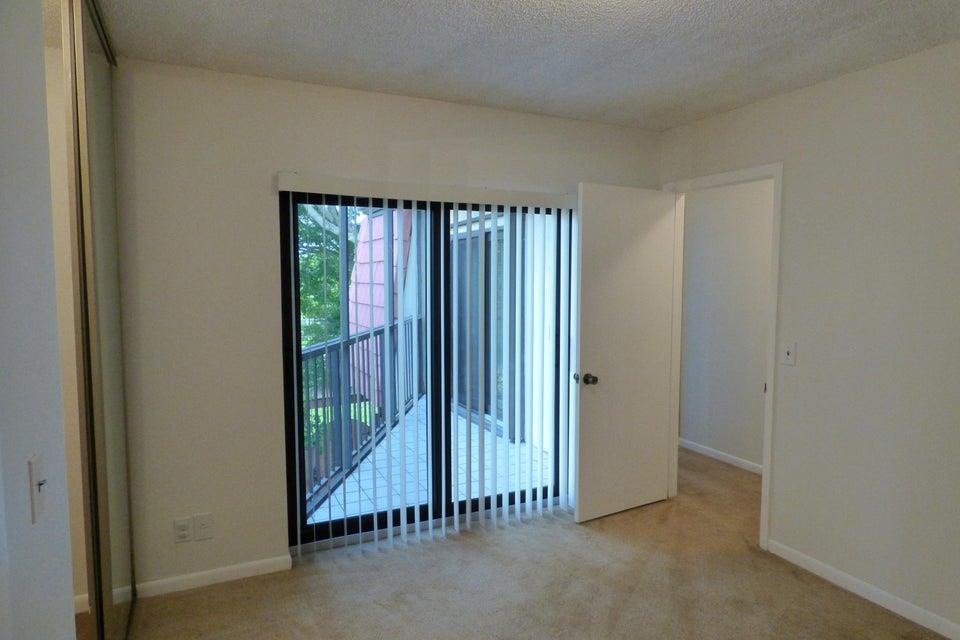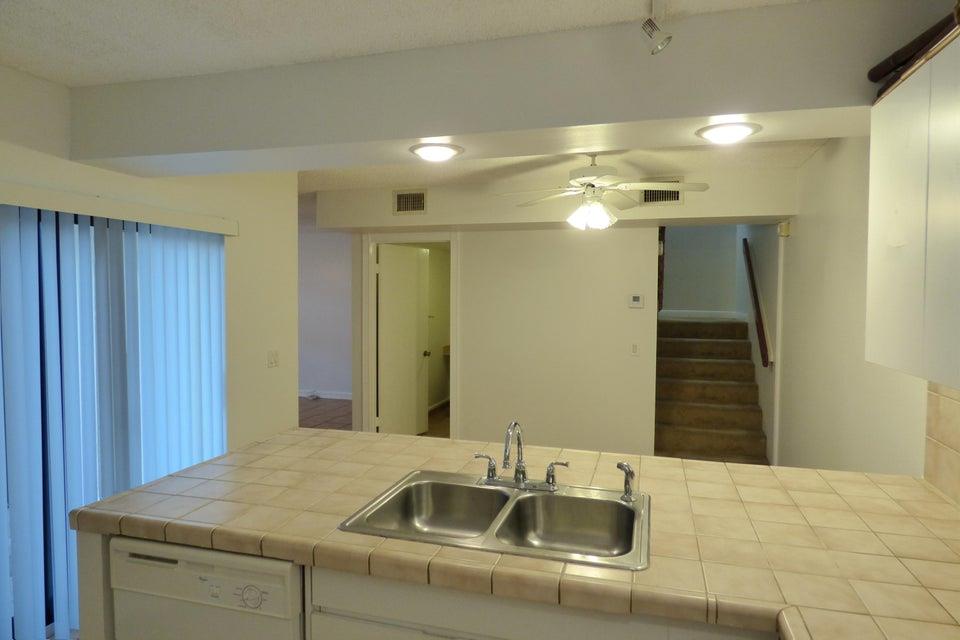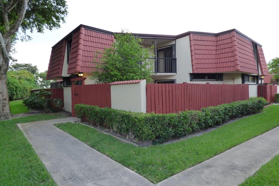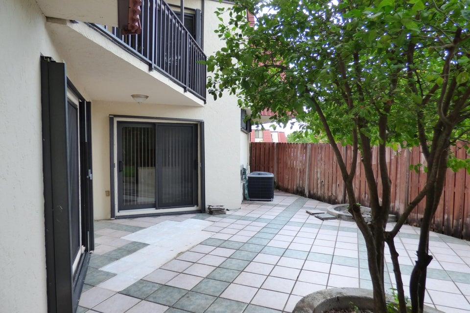 One of the most private units in Somerset, away from the street and parking, facing green space and lush landscaping. Two upstairs bedrooms each with its own bath and balcony! New A/C in 2017. Full size Washer-Dryer. All tile downstairs and newer carpet from stairs up. Hi-Impact doors and windows make this a safe place to call home. Secure courtyard to keep your toys and Grill. Basic Cable and insurance on the building included in HOA. Nice Community Pool. Information and dimensions deemed accurate but not guaranteed.