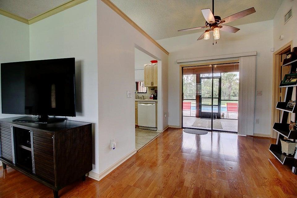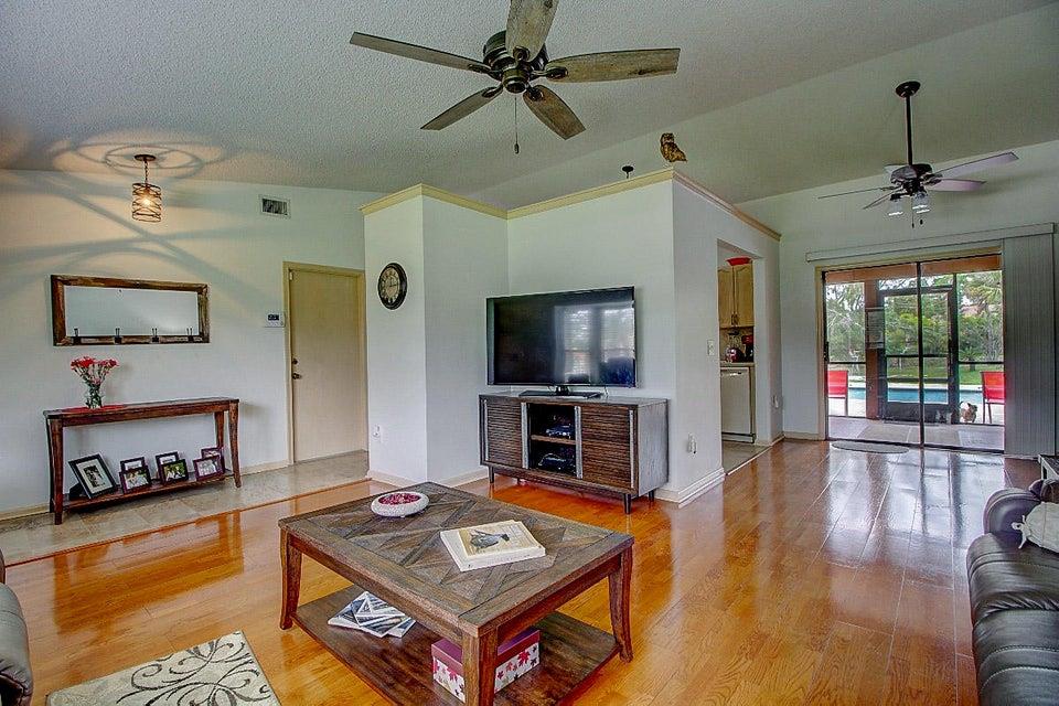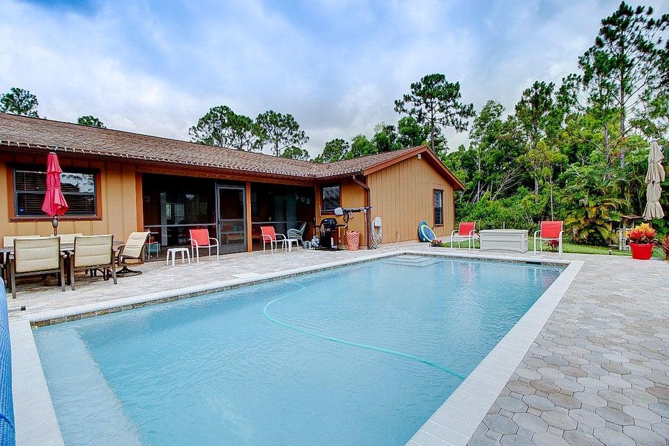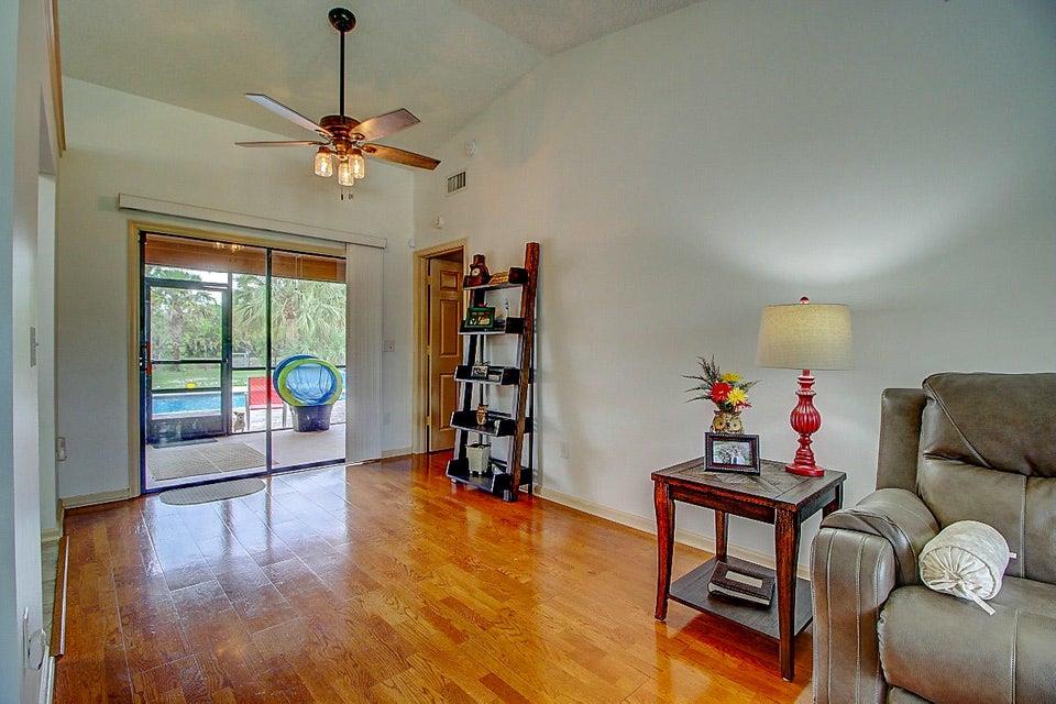 IMMACULATE 3 BEDROOM, 2 BATH, OVERSIZED 2 CG, POOL HOME ONE LOT OFF THE PAVEMENT. THIS HOME BOASTS-CORIAN COUNTERTOPS, TILE BACKSPLASH IN KITCHEN, OAK WOOD FLOORS, NEW FANS & LIGHT FIXTURES, VAULTED CEILINGS, OFFICE/SITTING AREA OFF MASTER BEDROOM. THE SALT WATER CHLORINATED POOL IS BRAND NEW WITH BRICK PAVER DECK EXTENDING AROUND THE SIDE OF THE HOUSE. POOL INCLUDES CHILD SAFETY FENCE, COVER & CREEPY CRAWLER AUTO CLEANING SYSTEM. ADDITIONAL FEATURES-ALARM, FULLY FENCED LOT, 6 ZONE SPRINKLER SYSTEM THAT FEEDS OFF THE POND, HURRICANE SHUTTERS, 3 SHEDS, SCREENED FRONT & BACK POCHES. SALE INCLUDES TRANSFERABLE HOME WARRANTY. DON'T MISS THIS BEAUTY!