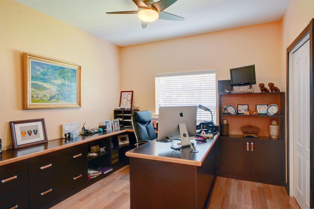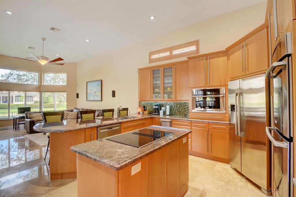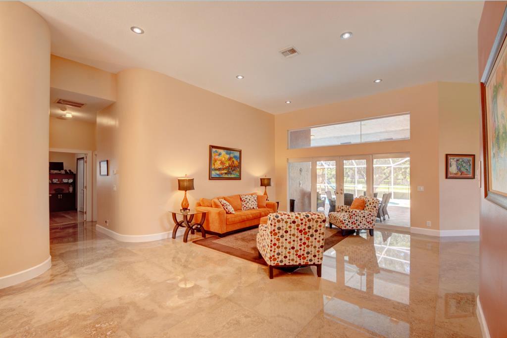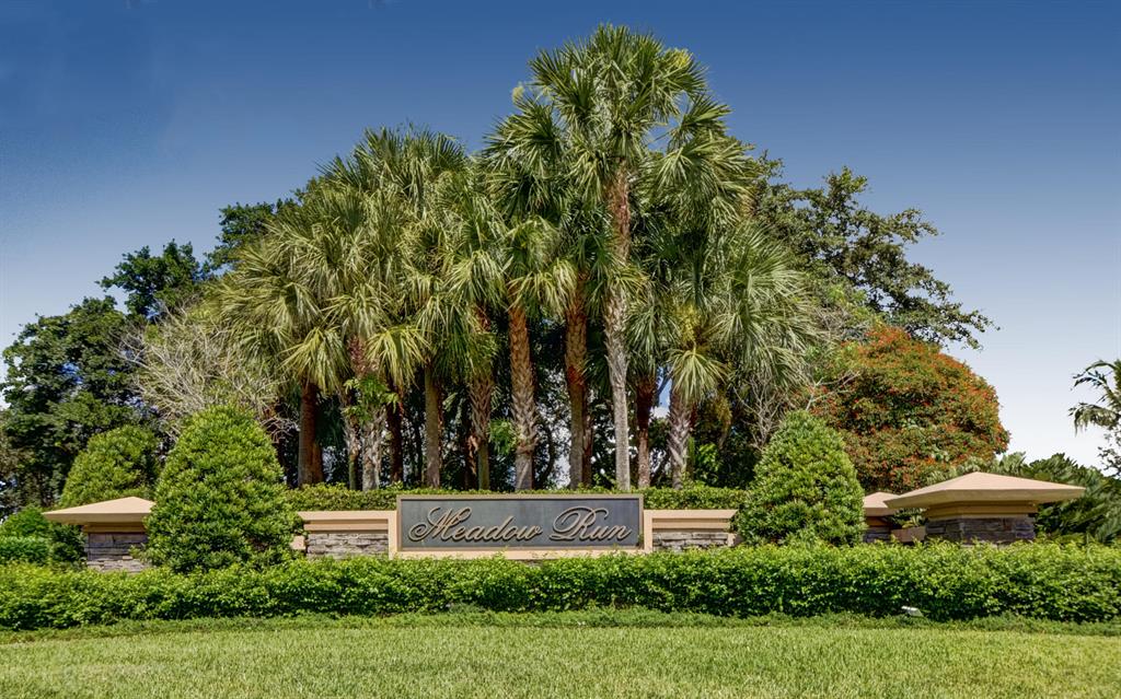 Beautiful, updated, MINT-condition home with long lake views in the gated community of Meadow Run. Single-story 5 bed/4.5 bath split floor plan. Fully renovated in 2010 to include COMPLETE HURRICANE IMPACT GLASS WINDOWS AND DOORS, 36'' Italian Marble floors in main living area and real wood floors in the master and office. Open kitchen with high end custom 48'' cabinets, granite countertops, stainless Electrolux and Bosch appliances and a double oven! All bathrooms have granite countertops and updated vanities. Office has a custom designed workspace and built in shelves in closet. Outside space includes saltwater, heated + screened pool, cabana bath and fenced yard. Completely ready to move in! COME SEE THIS IMMACULATE HOME! Community has playground + tennis courts.
