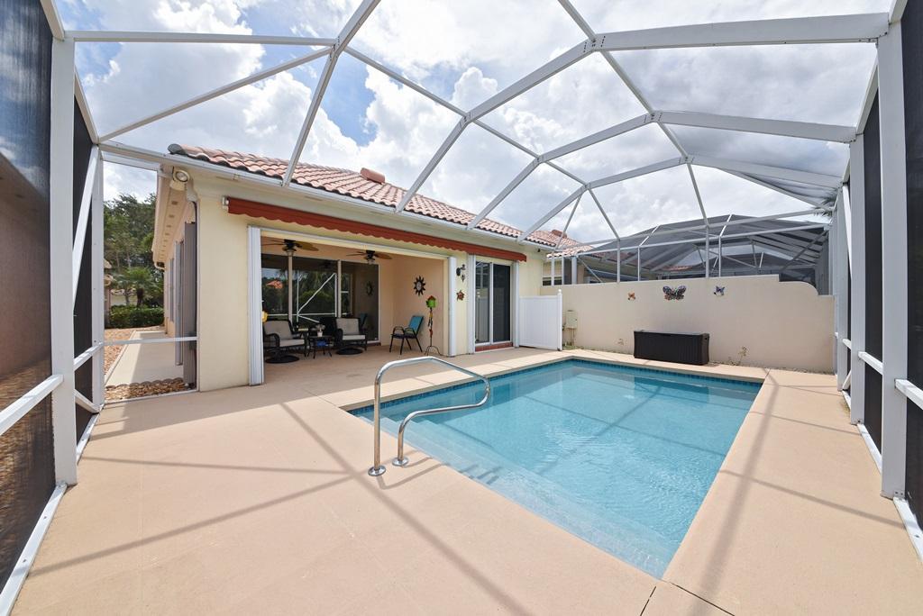 The One that You have been waiting For! Just Move In & Enjoy The Florida Lifestyle! Fantastic, Unique Lakeside Glenwood with a Gorgeous Screened Caged Swimming Pool! The Excitement begins from the Screened Entry that leads to the Gracious Foyer with a Beveled Glass Front Door & a Custom Shade that flows into the Great Room with a Full Wall Mirrored Entertainment Center that has been Modified to Accommodate a Flat Screen TV & the Dining Area with a Stunning Designer Fixture & The Breathtaking Open Kitchen, the Hub for Casual Entertaining & Everyday Living that has been Updated by the Removal of the Overhead Cabinets, Sparkling White Corian Counter Tops, Tile Backsplashes, a Designer Faucet, The LG French Door Refrigerator, KitchenAid Range, Microwave & Dishwasher are all just 1 year old!