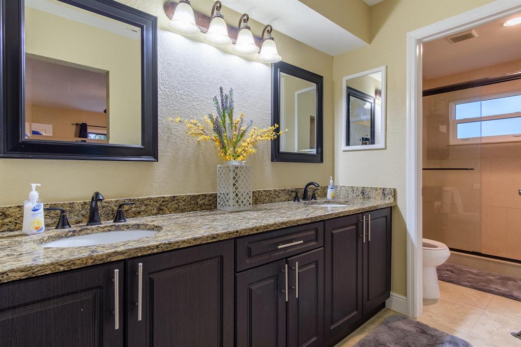 Lakefront charmer, remodeled to perfection! This cheery 3 bed/2 bath home features a superb open layout with serene lake views from nearly every angle. The open kitchen is fully equipped with a granite-topped island, stainless appliances, generous cabinet space, and a custom light fixture--all overlooking the lake from a pass-through window over the kitchen sink. Three sets of sliding doors let in plenty of light and lead to a tranquil outdoor space, which includes a screened-in porch and recently fenced-in yard with lake access for fishing. The master suite is a stunning retreat, with sliding doors that open to the backyard, a sleek ensuite bathroom equipped with dual granite sinks, and a large walk-in closet. Don't miss this one! Call to chedule a showing today!