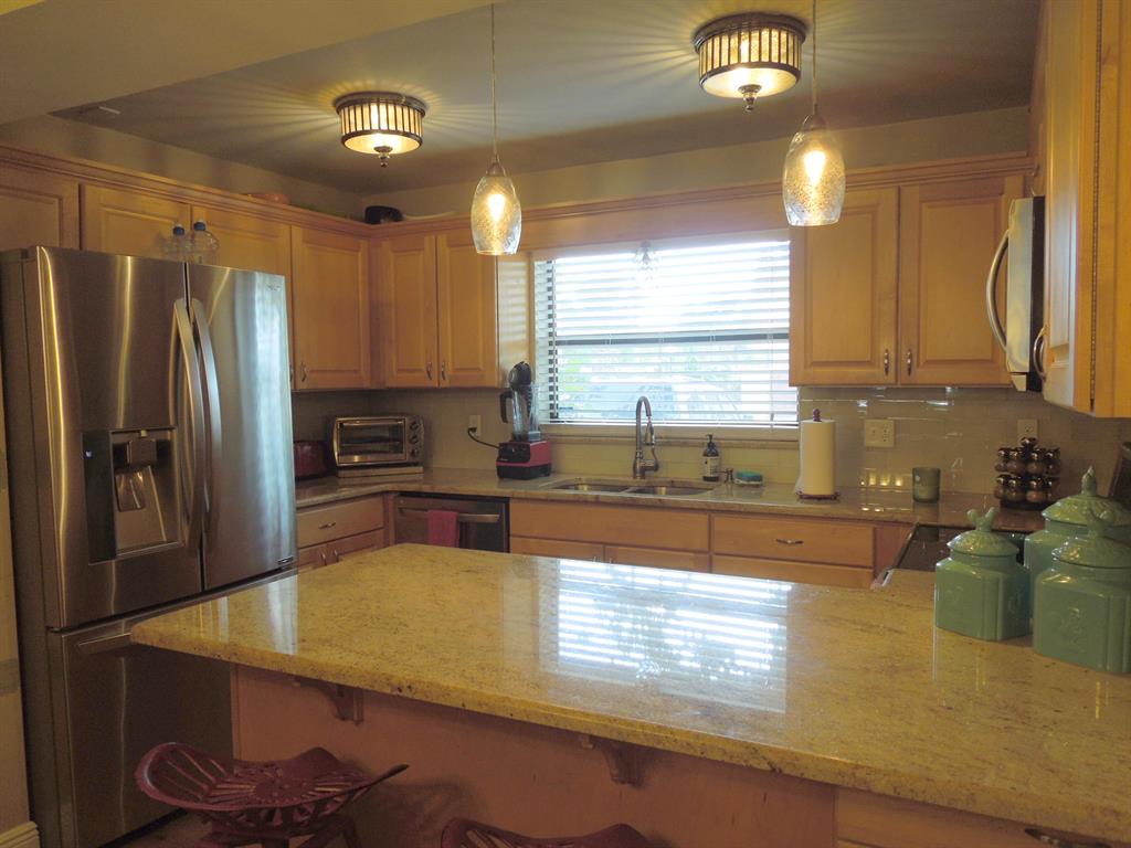 Stunning 3 bedroom 2 1/2 bath townhouse in West Palm Beach! Lots of room for the entire family!! Completely remodeled with new kitchen, baths, AC one year old, and flooring throughout. The living and dining rooms plus the kitchen are all big enough for a large gathering but still intimate. Granite countertops are in the kitchen and all baths, beautiful oak stairs lead you to the second floor and plantation blinds abound. Wood plank porcelain tile downstairs, laminate upstairs in the bedrooms and porcelain tile in the baths. The huge master bedroom has one walk in and one standard closet. Extra storage under the stairs as well as two storage closets on the expansive private fenced patio in front. Hurricane Shutters too. Come see your next home. Washer/Dryer and stairwell lamp do not convey.