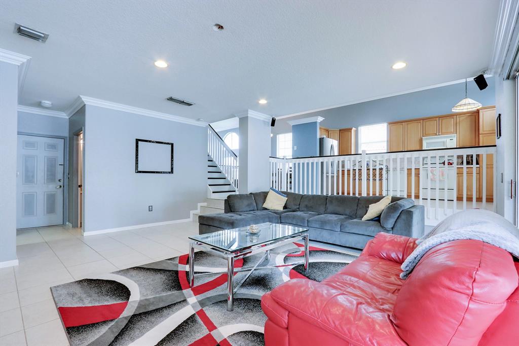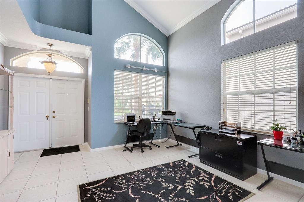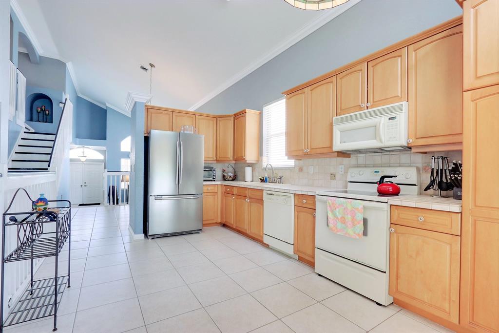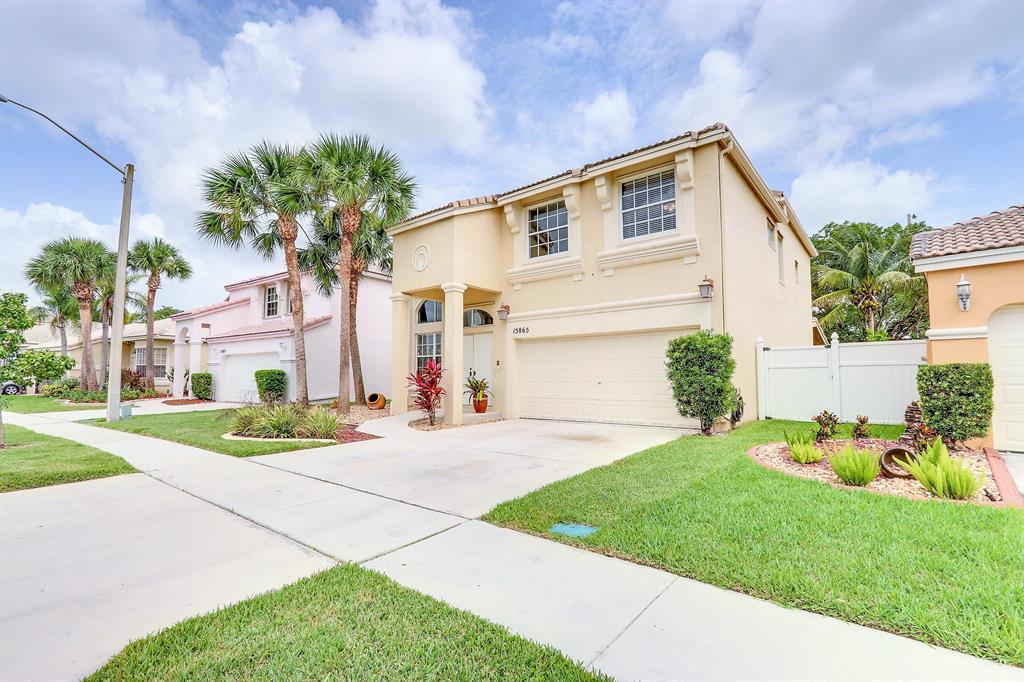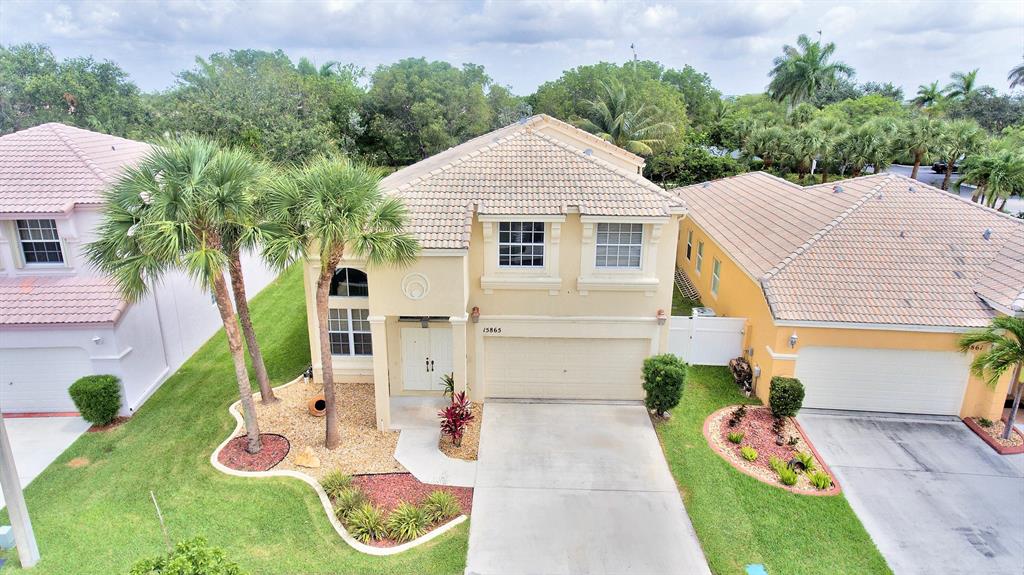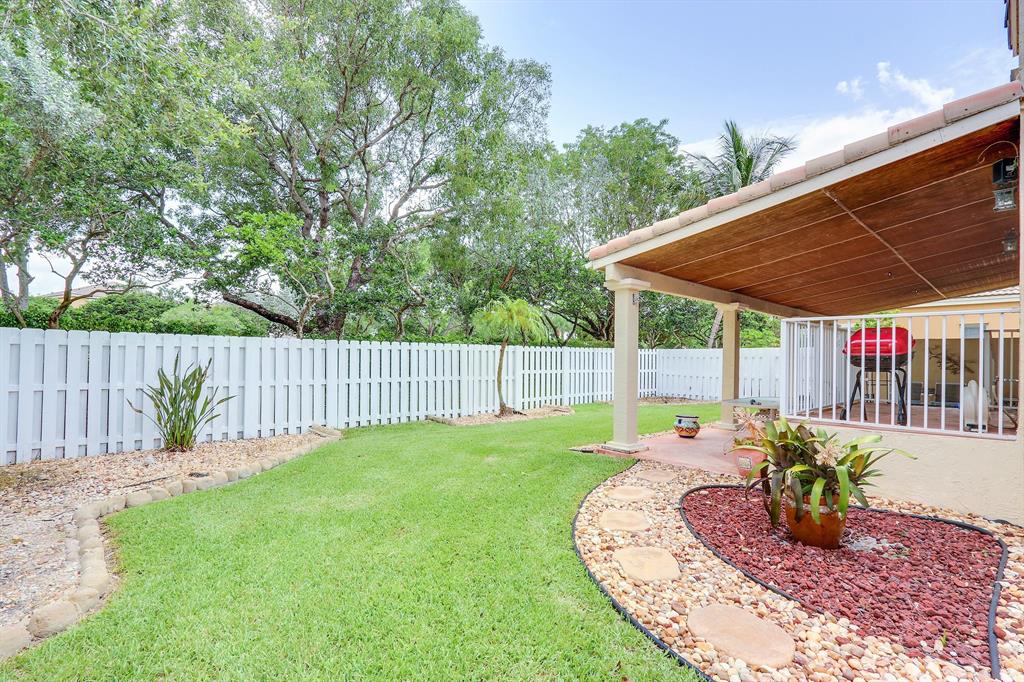 Large, 2-Story 3/3 with beautiful landscaping and large, private back yard. Cathedral ceilings, large open kitchen, enormous living room and family rooms. Lots of natural light from all sides with oversized windows. Ceramic and porcelain flooring throughout. Crown moldings throughout the entire home. The master suite is extremely large including 10' ceilings. Enjoy the comfort of your oversized, covered patio and private, nicely landscaped, back yard. There is also plenty of room if you wish to add a pool. Lots of storage space in this home, including an attached shed outside. This home is located in the heart of Pembroke and close to everything. A+ Schools and gated community for security.