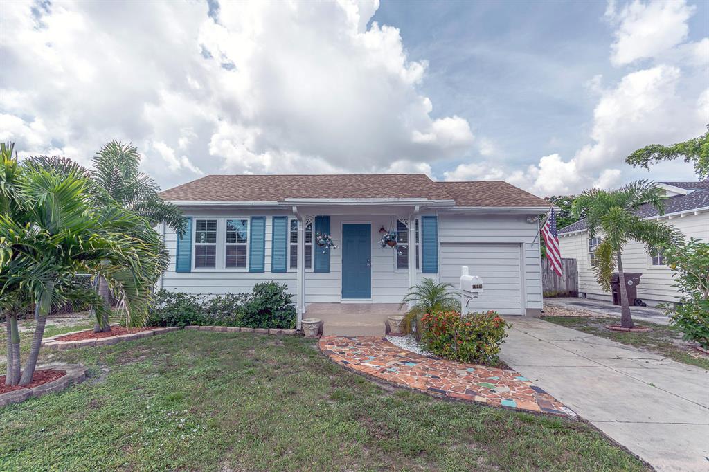 Relax in this cozy 1148 sf single family house in Mercer Park has 2 bedrooms, 1 bathroom plus 1 car garage. Wooden flooring in the living room and bedrooms, tiled floor in the open kitchen with wooden cabinets and tiled counter top and a breakfast bar. Huge bedrooms with built-in closet. Open patio and a huge wooden fenced back yard. Well maintained for 35 years. Great location, close to downtown WPB, Easy Access to Highway I95, Upcoming Warehouse District, Beach, Airport, Public Market and Schools. Make an Appointment to view this charming house today.