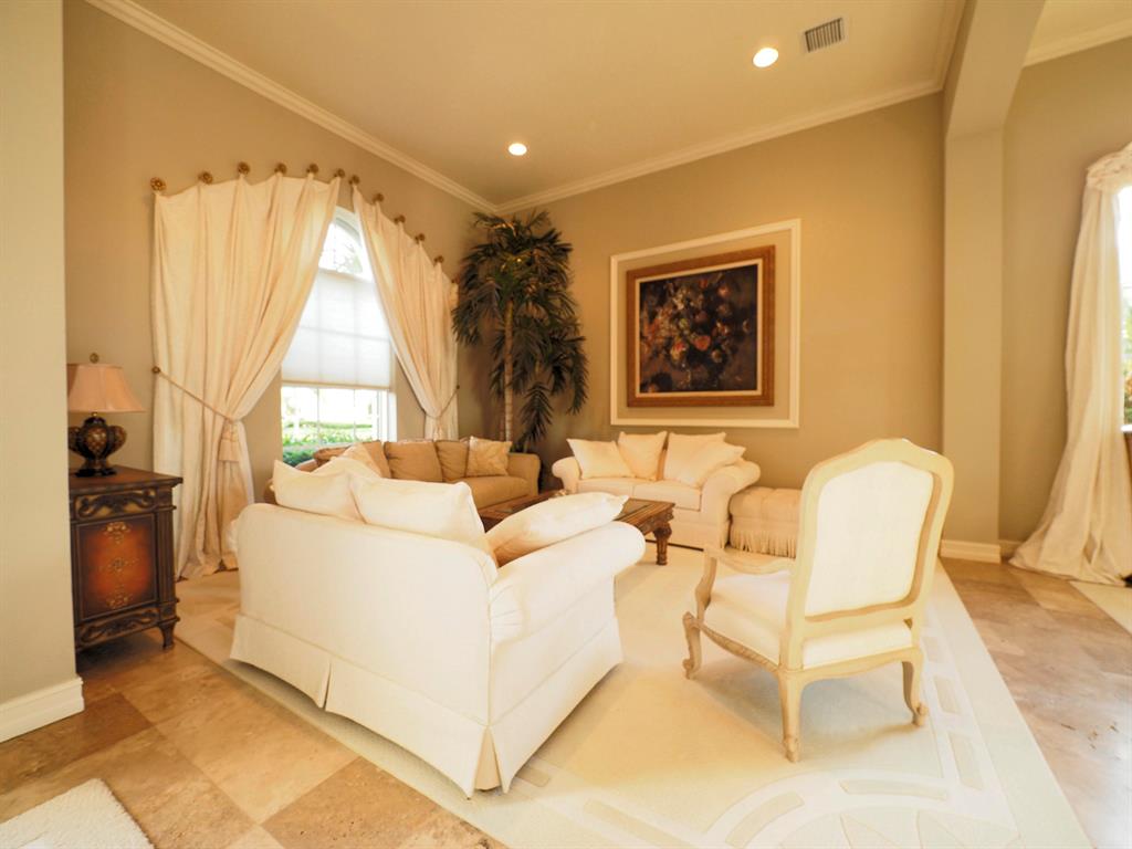 Gracious home with circular drive on a beautiful lot & location. Saturnia Marble floors with extensive crown molding. A 40 X 40 extended patio with beautiful pool/spa on a wonderful lot overlooking a lake & golf course. Oversize kitchen & 3 car garage and 2 newer air conditioning units.Wonderful home in great location! Sold furnished & turn key. (Some Exclusions)
