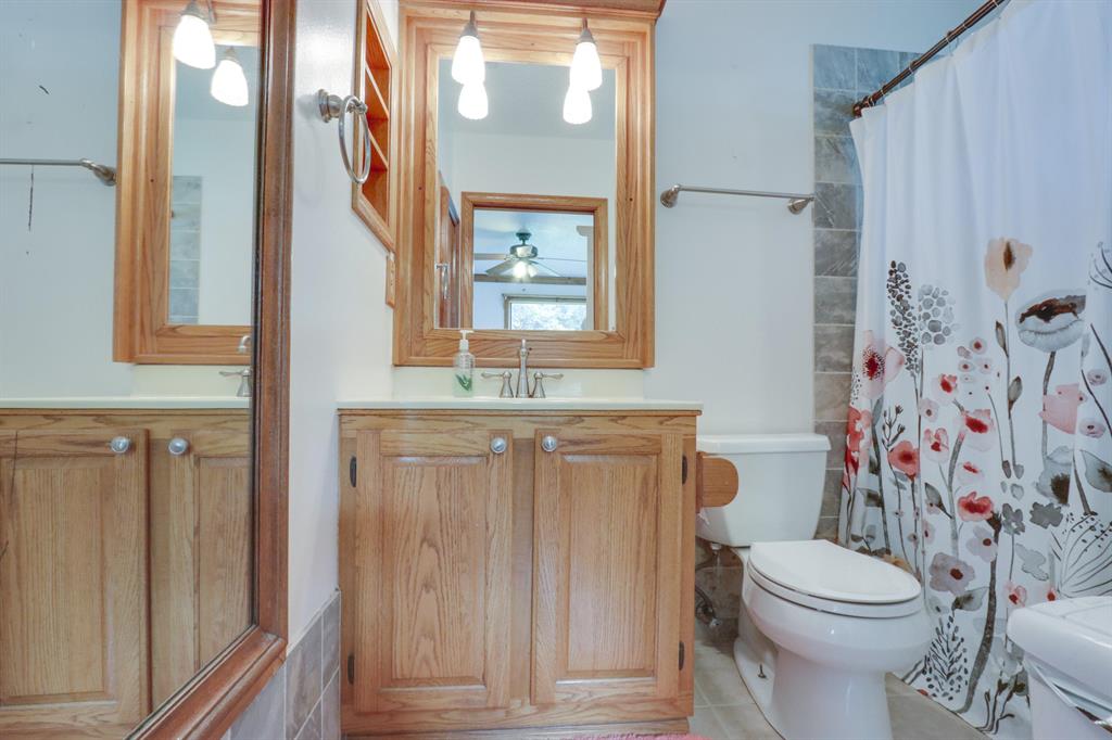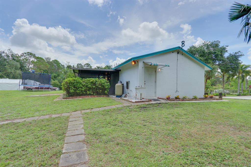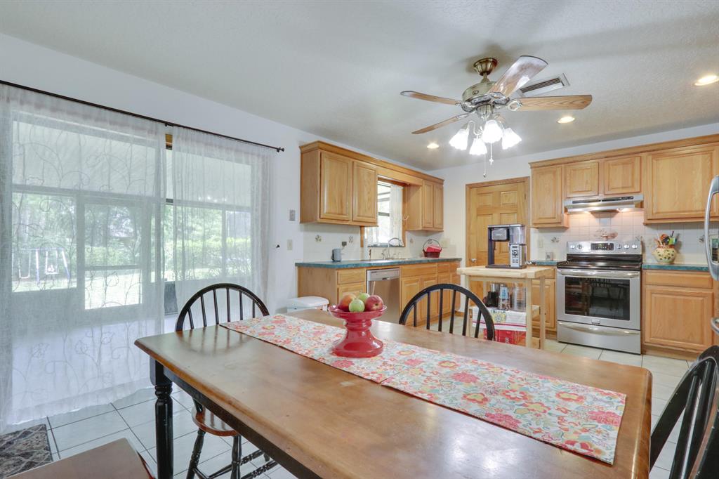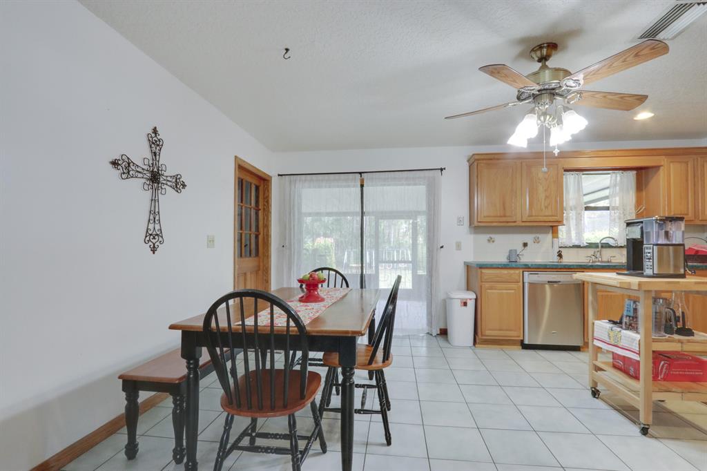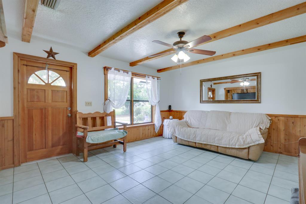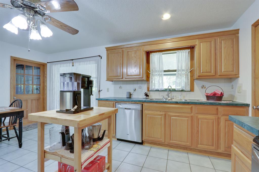 Sweet rustic ranch style home situated on a 1.33 acre with pond. Fully fenced with electric entry gate, paved double wide driveway with separate pad and eight concrete tie downs for a camper/boat. Poultry pen. Two car garage. Stainless appliances, (stove is only 2 month old) tile throughout with screened porch. Mud/laundry room. High hats, beamed ceiling in LR, knock down ceilings with crown molding in master BR. 30 amp breaker box for rear campers with water and sewer hook ups (pump does not convey) Circuit box for generator, garage also has an additional 220 volt outlet. Freezer & refrigerator in garage do not convey. Water cooler & kitchen rolling island also so not convey. There are security spot lights at all corners of the home plus security lighting in the back yard.