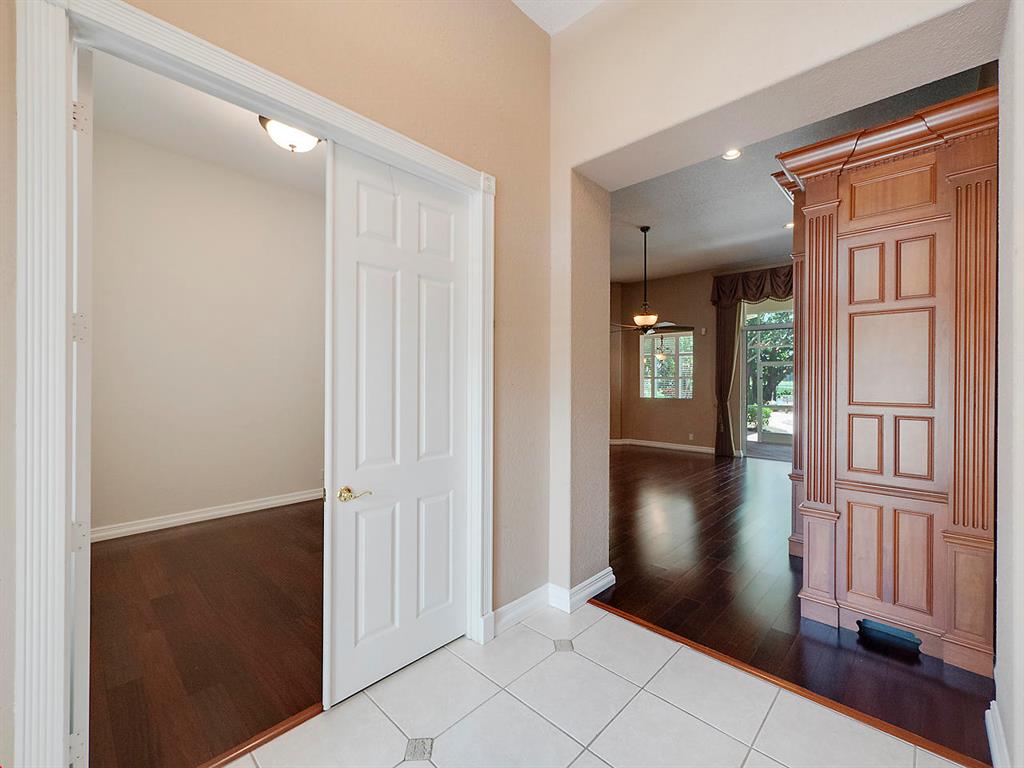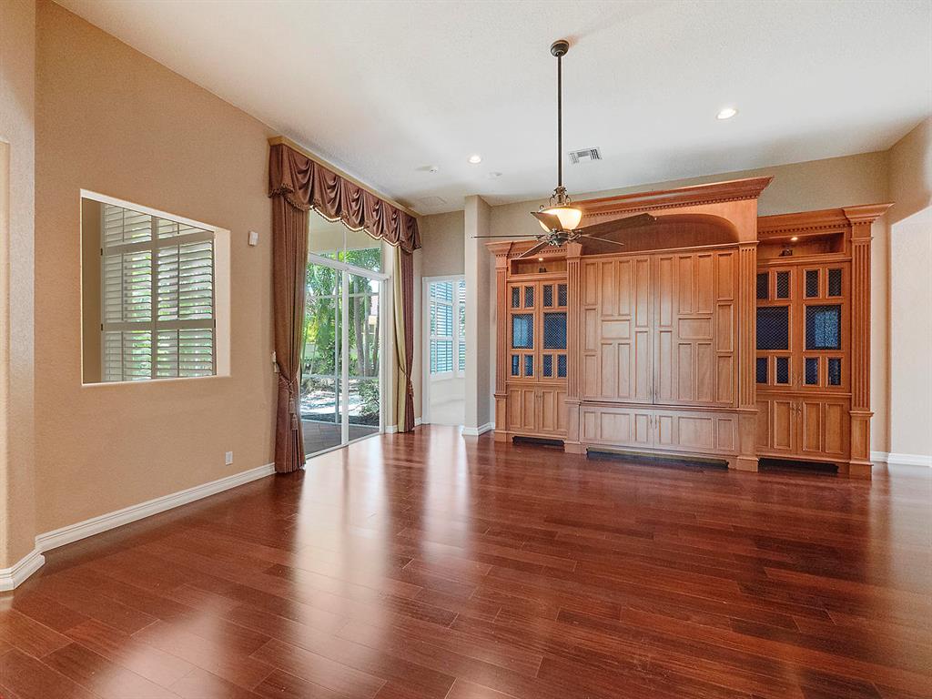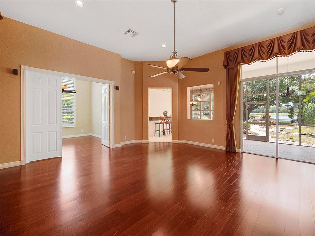 Largest lot in The Preserve! Amazing lake and golf course views! Plenty of room to add a pool and more room to spare. 2 bedroom, 2.5 bath, with office/den. Granite and stainless steel appliances in kitchen. Hardwood floors throughout main living area. Plantation shutters throughout. Windows are tinted.Kitchen/family room with views of the lake, preserves and golf course.
